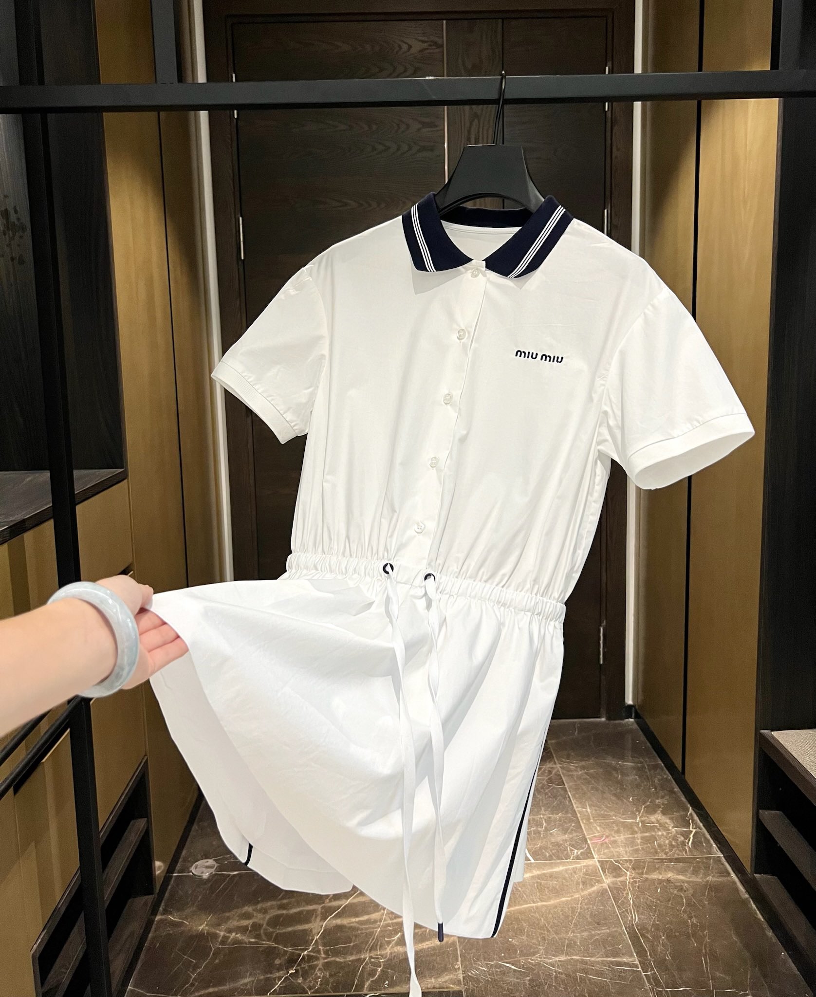 這款衣服是AAAAA 1:1 質量(非常棒). 使用了和原版一模一樣的材料. 商標部分也保持了和繆繆/Miu Miu一樣. 圖片拍攝是實物衣服拍攝, 您所收到的實物保證和我們圖片一模一樣.