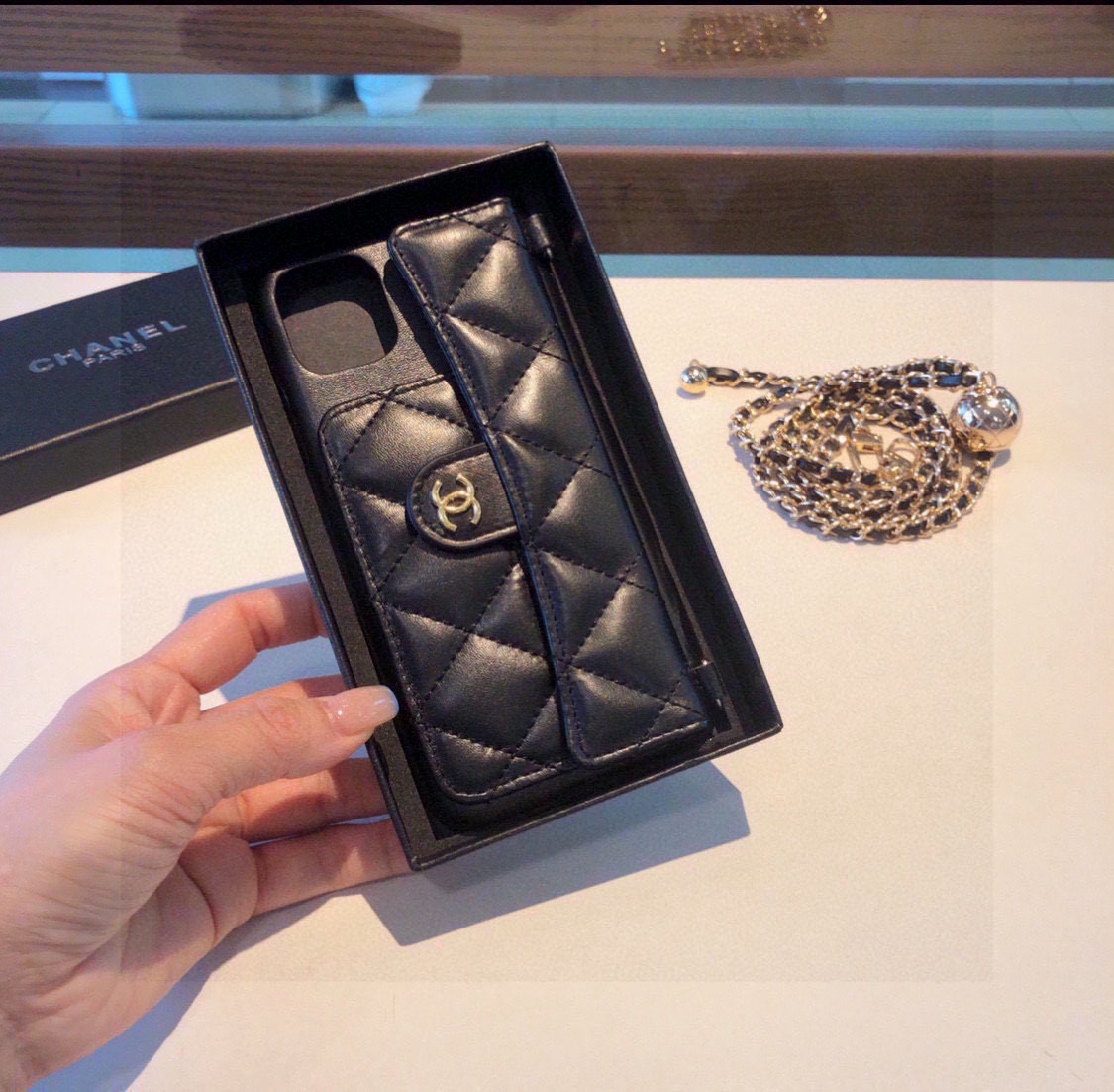 這款手機外殼是AAAAA 1:1 質量(非常棒). 使用了和原版一模一樣的材料. 商標部分也保持了和香奈兒/Chanel一樣. 圖片拍攝是實物手機外殼拍攝, 您所收到的實物保證和我們圖片一模一樣.