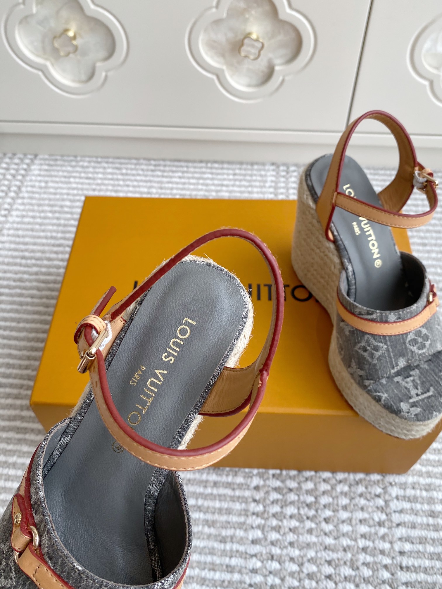 這款鞋子是AAAAA 1:1 質量(非常棒). 使用了和原版一模一樣的材料. 商標部分也保持了和路易威登/Louis Vuitton一樣. 圖片拍攝是實物鞋子拍攝, 您所收到的實物保證和我們圖片一模一樣.