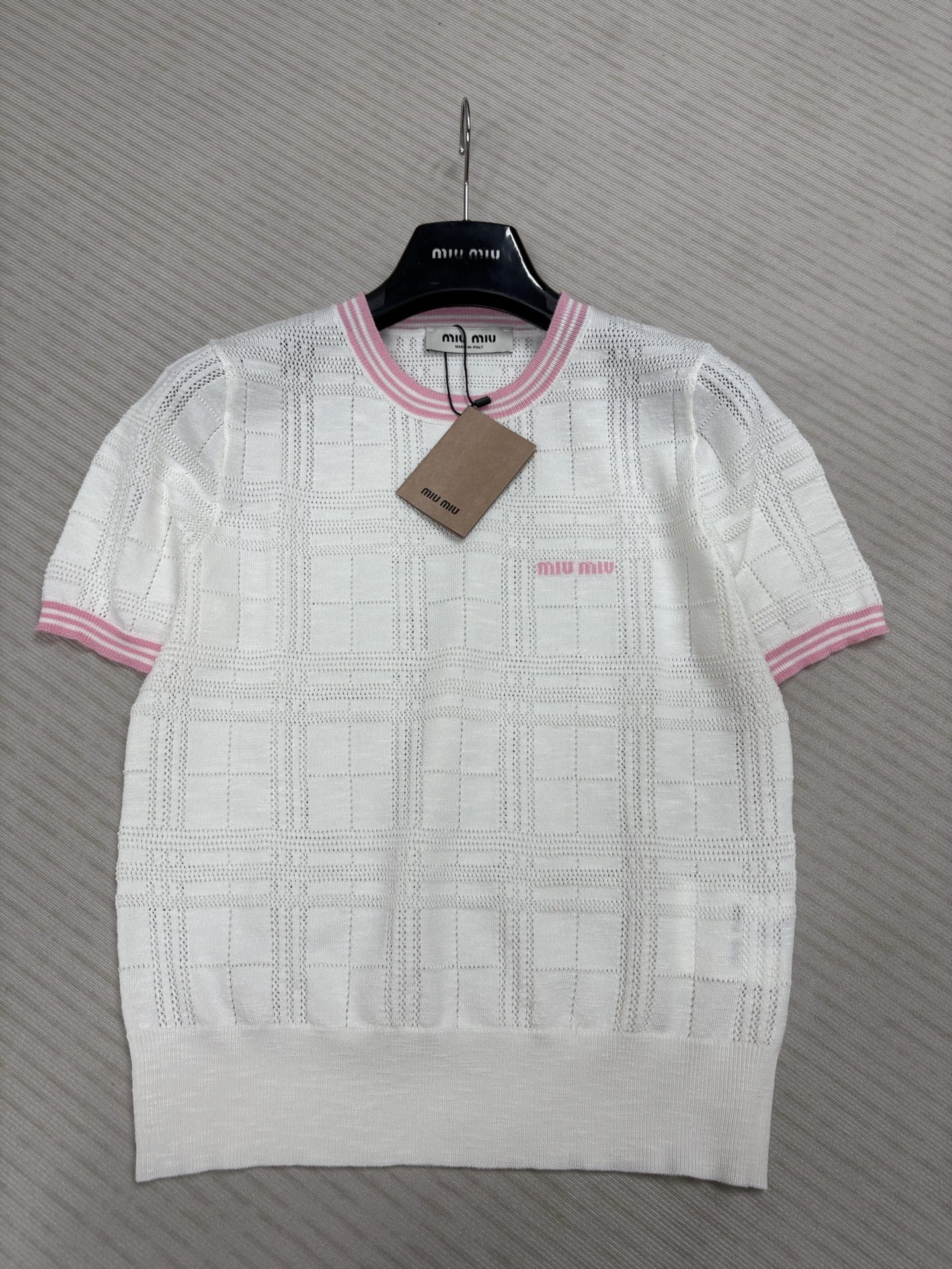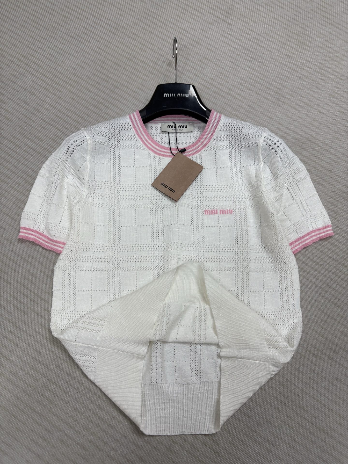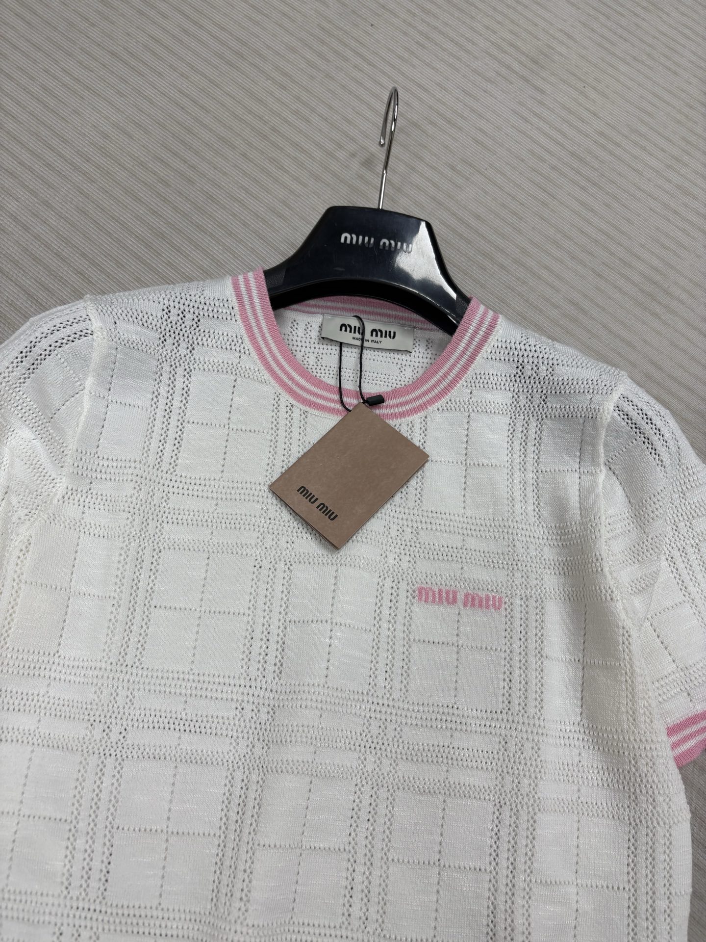 這款衣服是AAAAA 1:1 質量(非常棒). 使用了和原版一模一樣的材料. 商標部分也保持了和繆繆/Miu Miu一樣. 圖片拍攝是實物衣服拍攝, 您所收到的實物保證和我們圖片一模一樣.