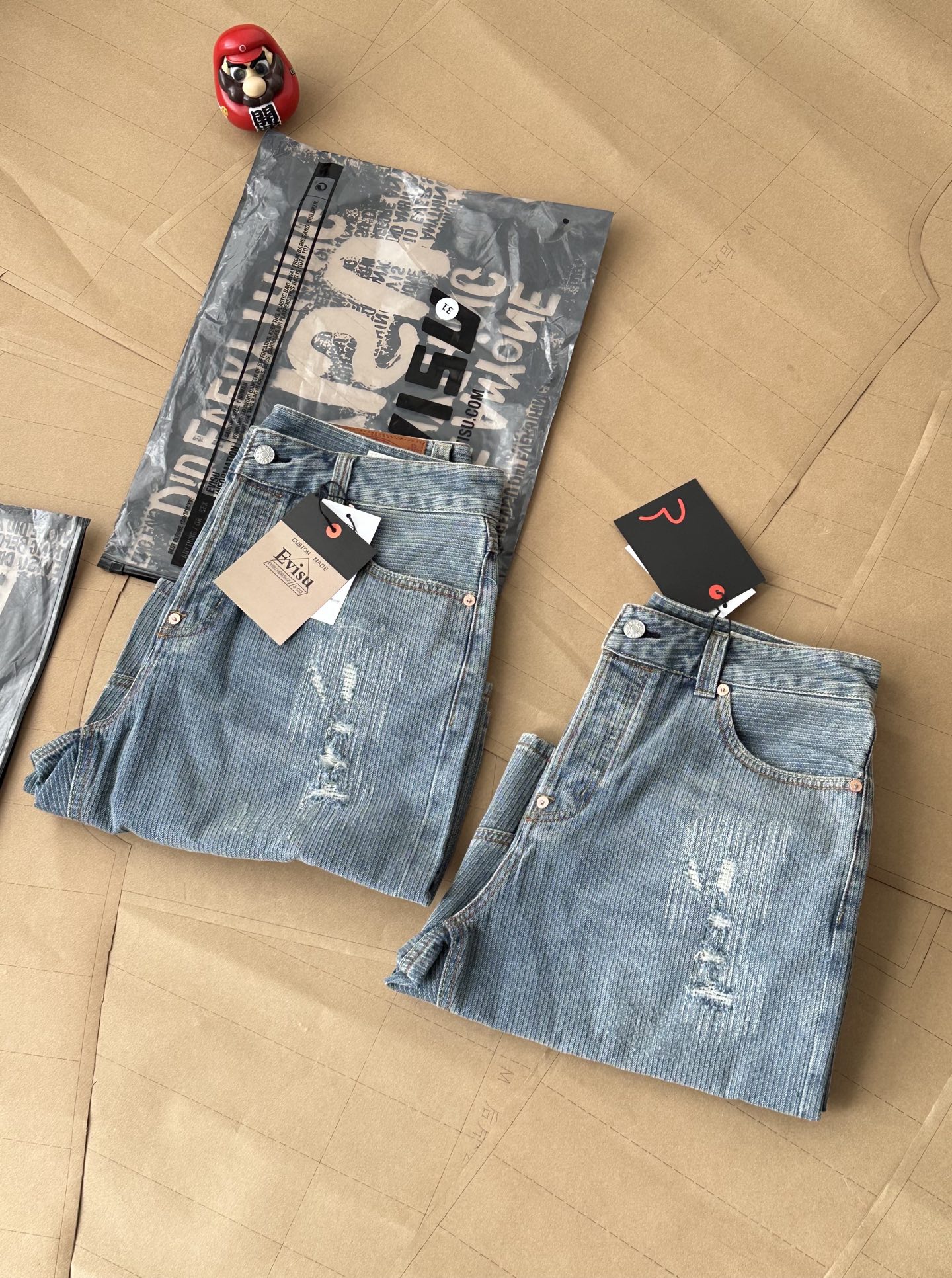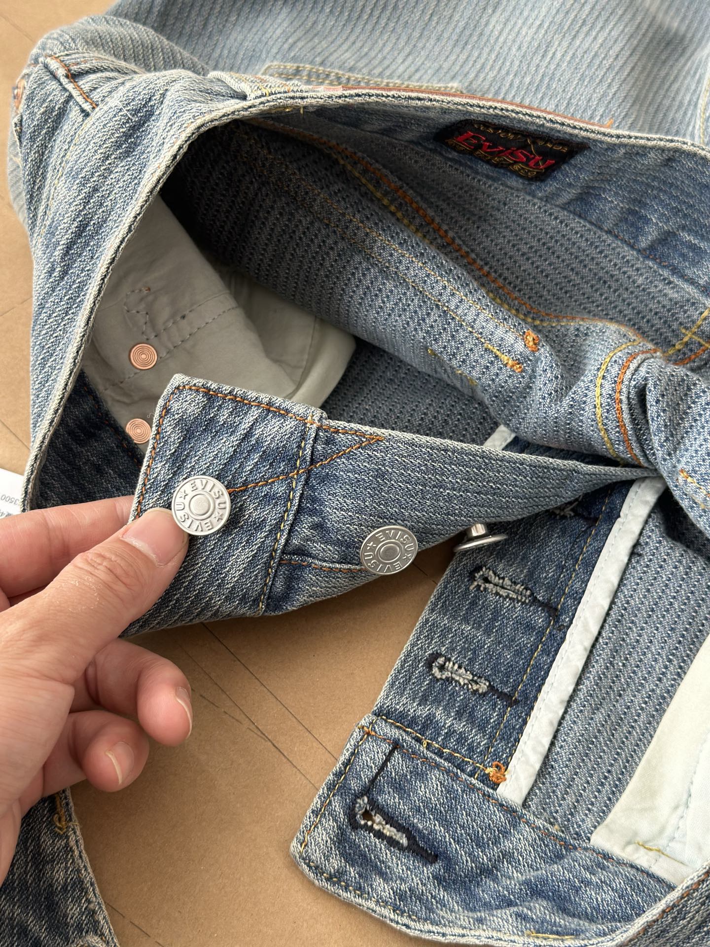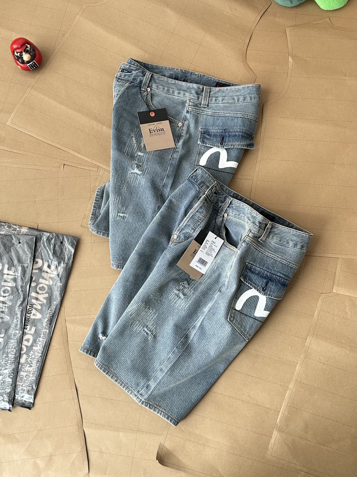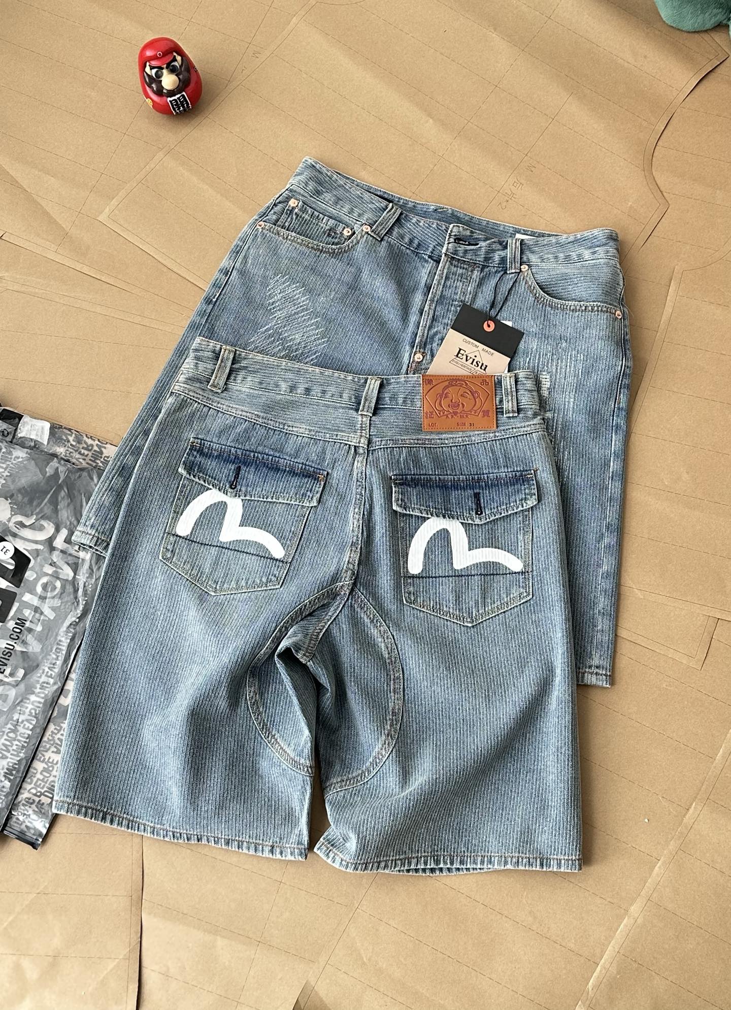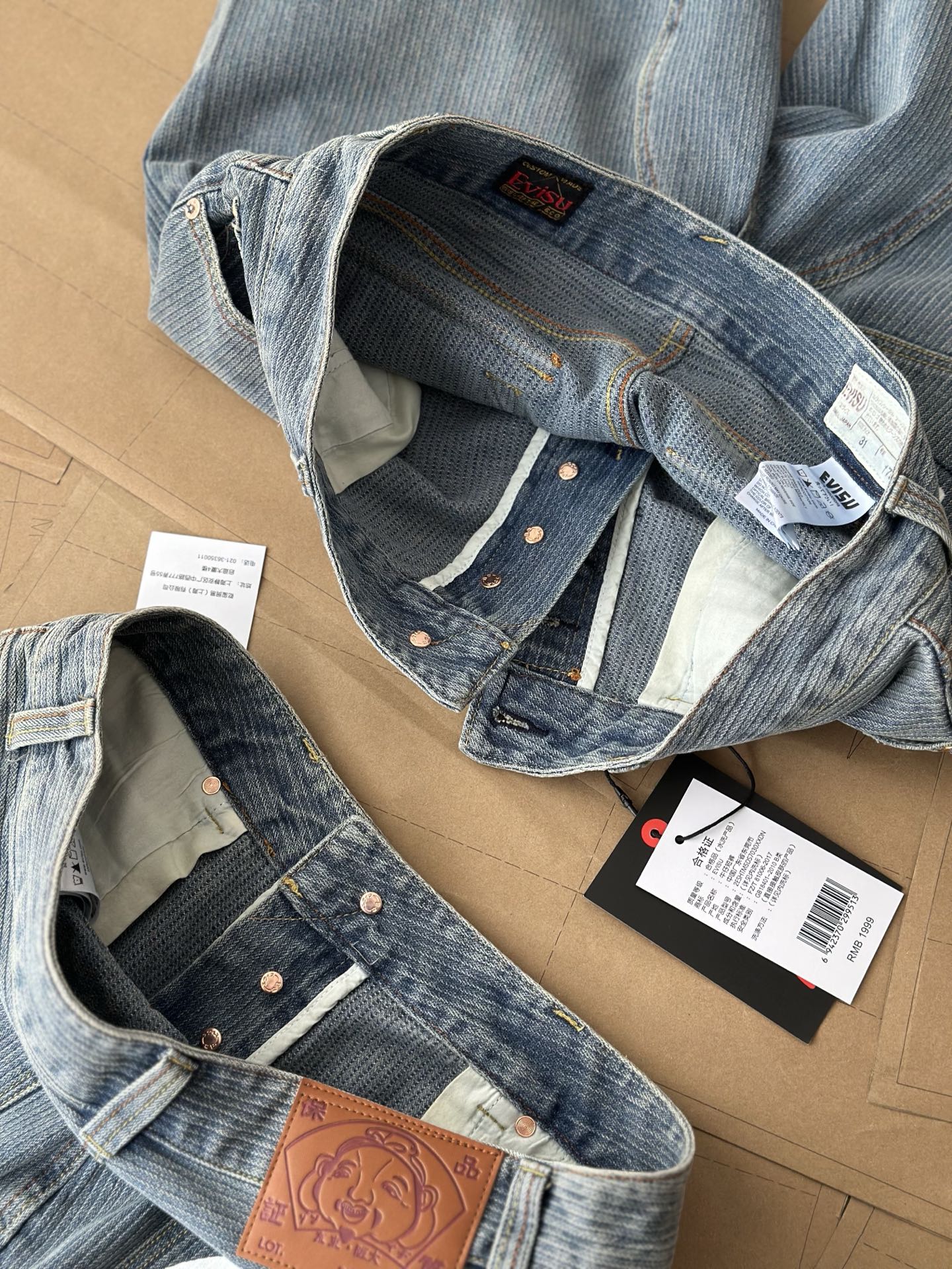這款衣服是AAAAA 1:1 質量(非常棒). 使用了和原版一模一樣的材料. 商標部分也保持了和EVISU一樣. 圖片拍攝是實物衣服拍攝, 您所收到的實物保證和我們圖片一模一樣.