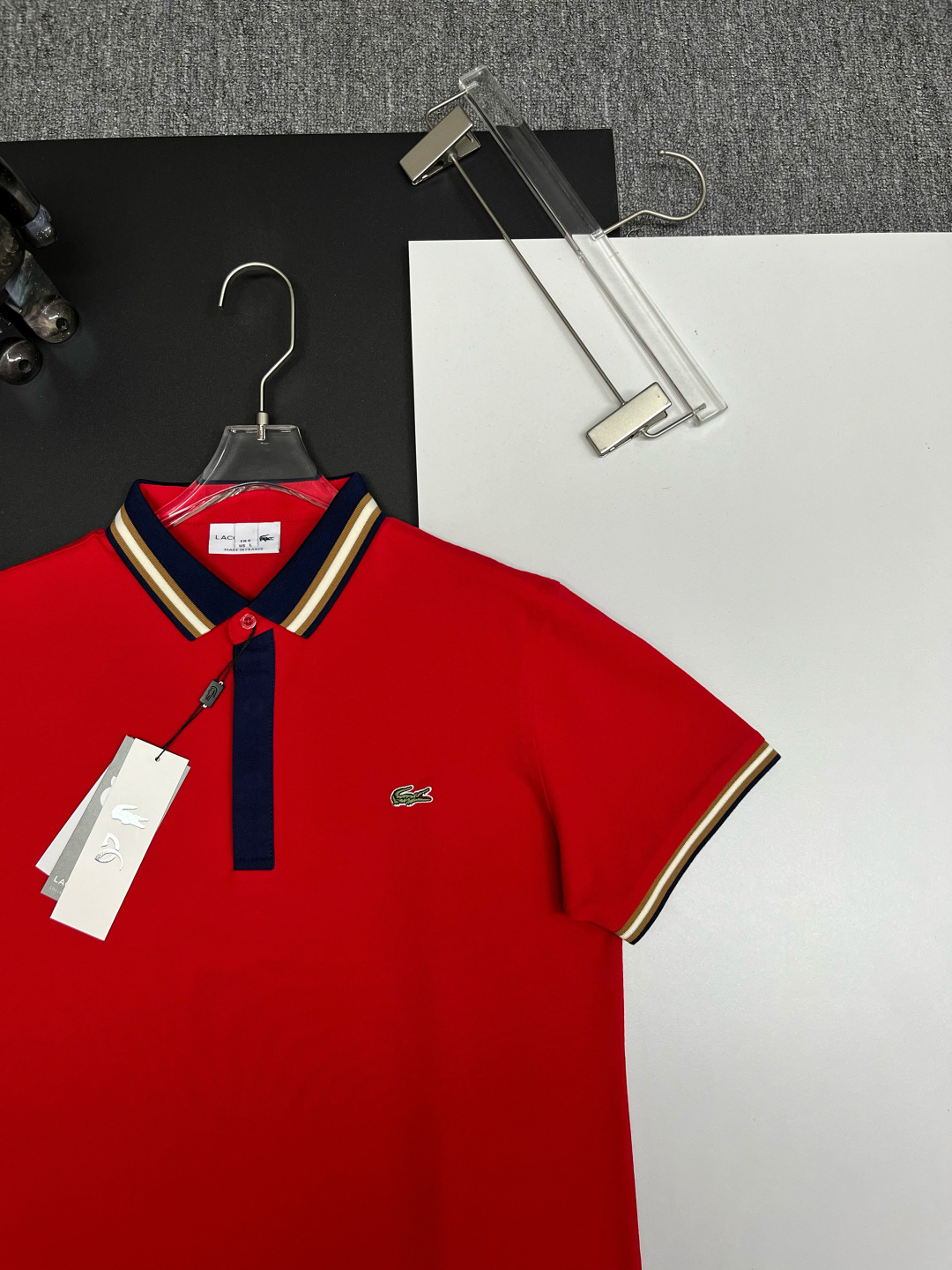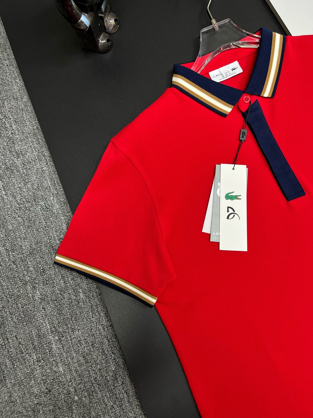 這款衣服是AAAAA 1:1 質量(非常棒). 使用了和原版一模一樣的材料. 商標部分也保持了和LACOSTE一樣. 圖片拍攝是實物衣服拍攝, 您所收到的實物保證和我們圖片一模一樣.