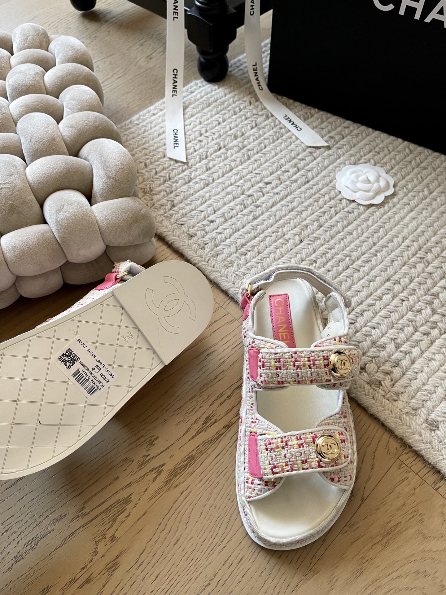 這款鞋子是AAAAA 1:1 質量(非常棒). 使用了和原版一模一樣的材料. 商標部分也保持了和香奈兒/Chanel一樣. 圖片拍攝是實物鞋子拍攝, 您所收到的實物保證和我們圖片一模一樣.