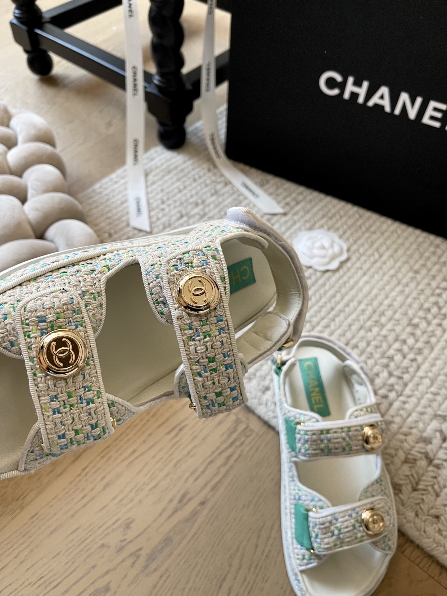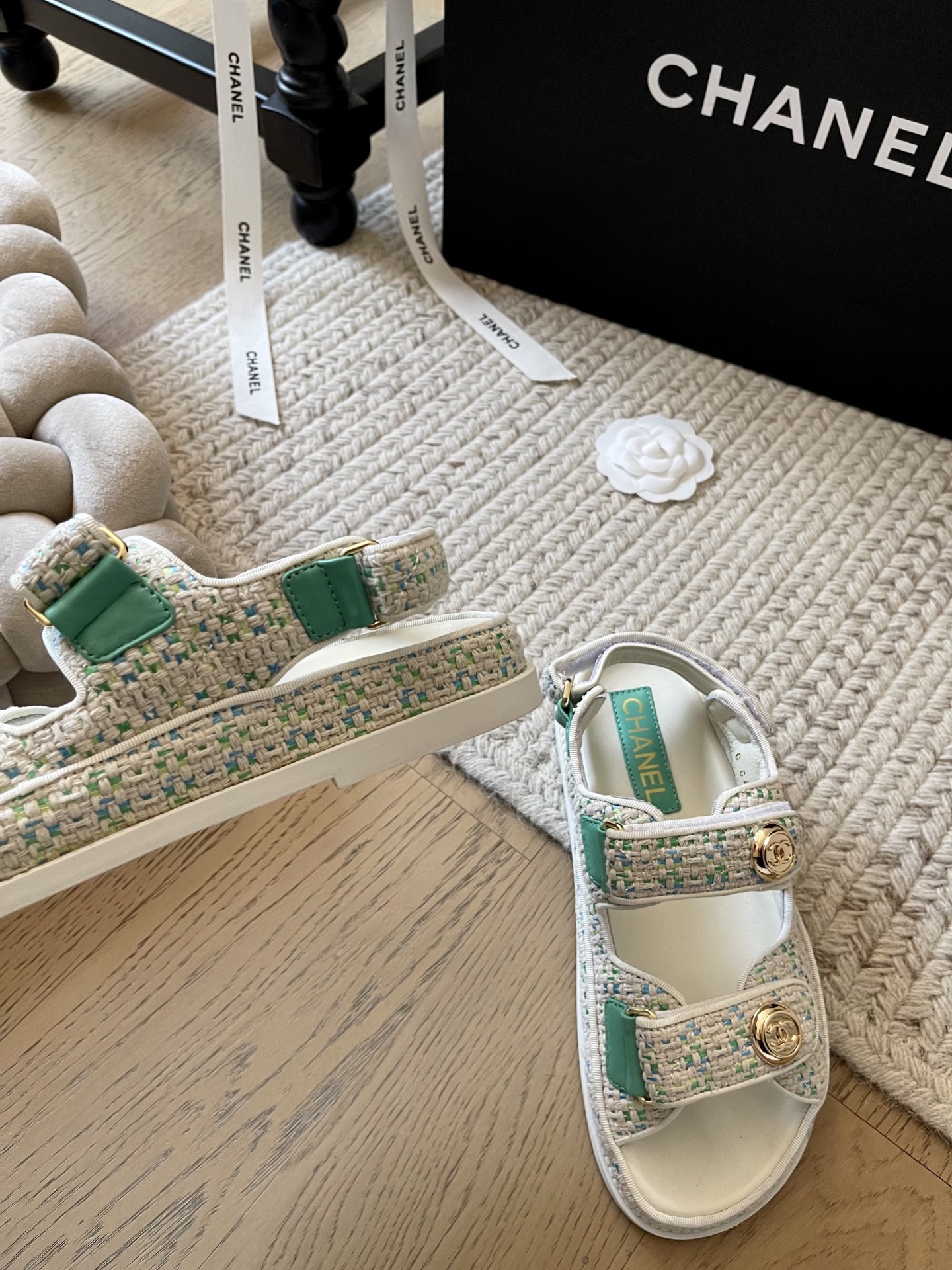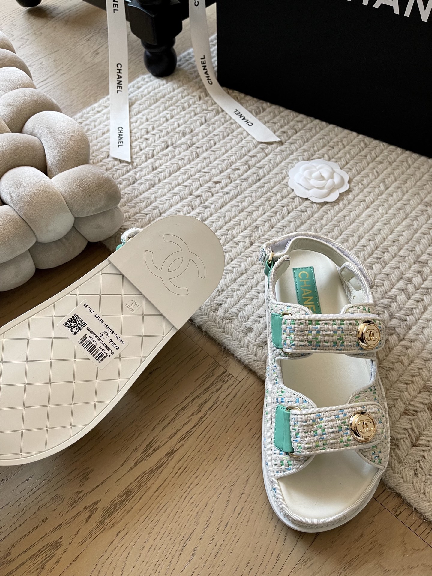 這款鞋子是AAAAA 1:1 質量(非常棒). 使用了和原版一模一樣的材料. 商標部分也保持了和香奈兒/Chanel一樣. 圖片拍攝是實物鞋子拍攝, 您所收到的實物保證和我們圖片一模一樣.
