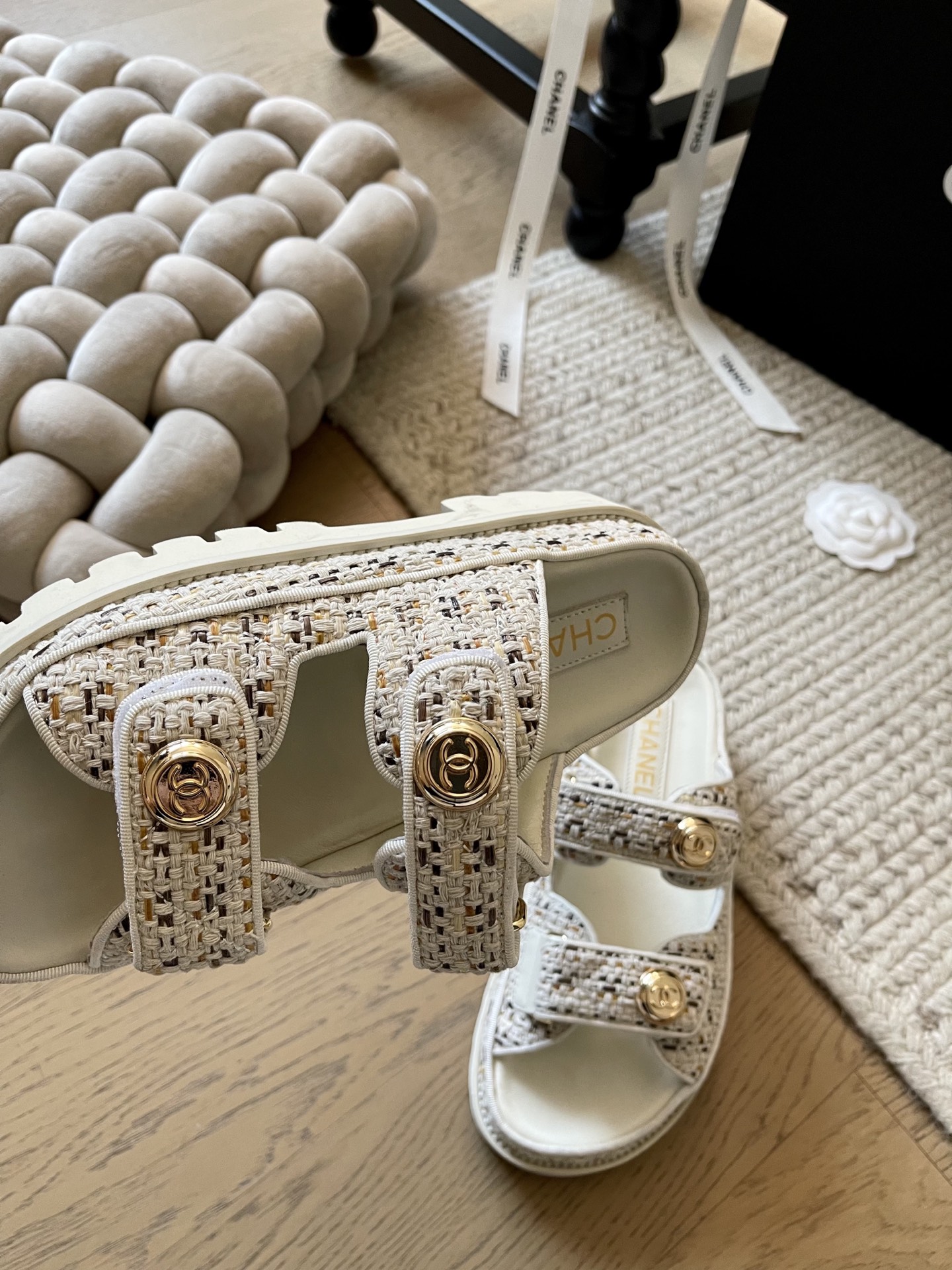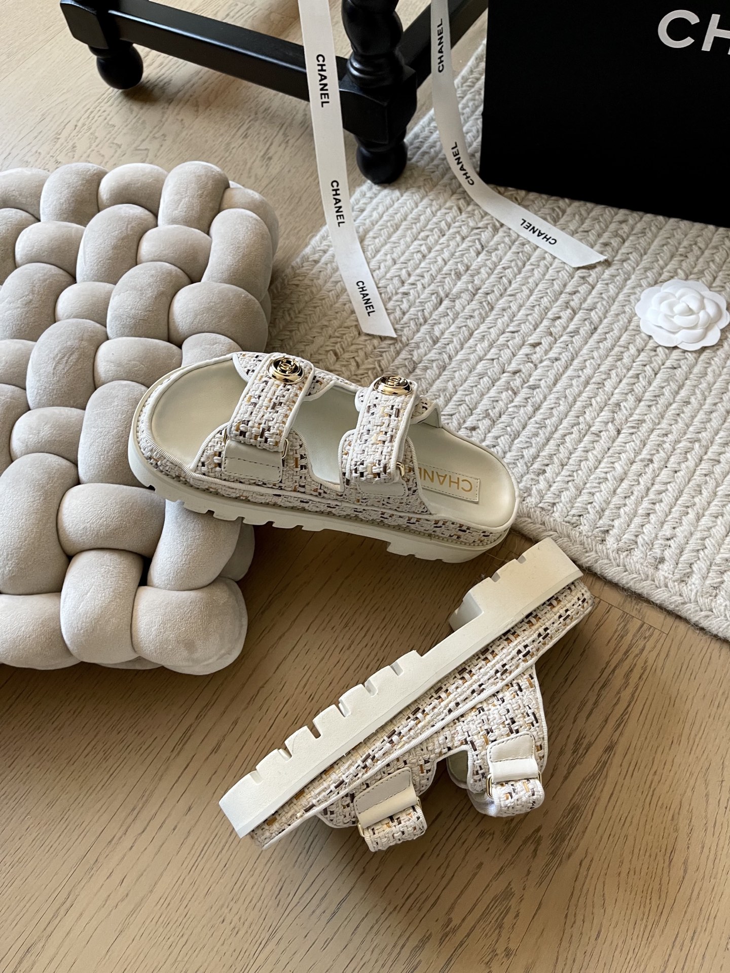 這款鞋子是AAAAA 1:1 質量(非常棒). 使用了和原版一模一樣的材料. 商標部分也保持了和香奈兒/Chanel一樣. 圖片拍攝是實物鞋子拍攝, 您所收到的實物保證和我們圖片一模一樣.