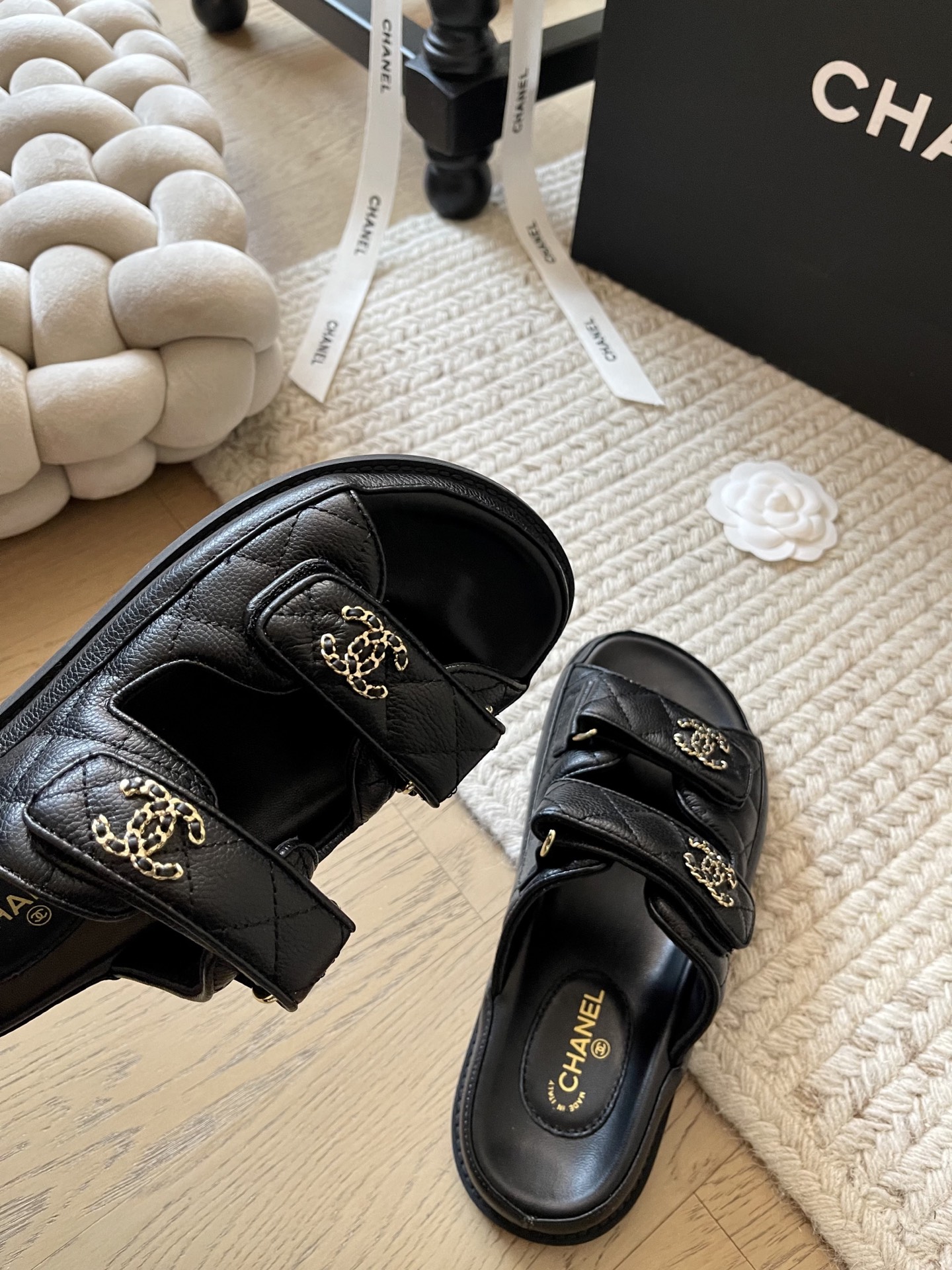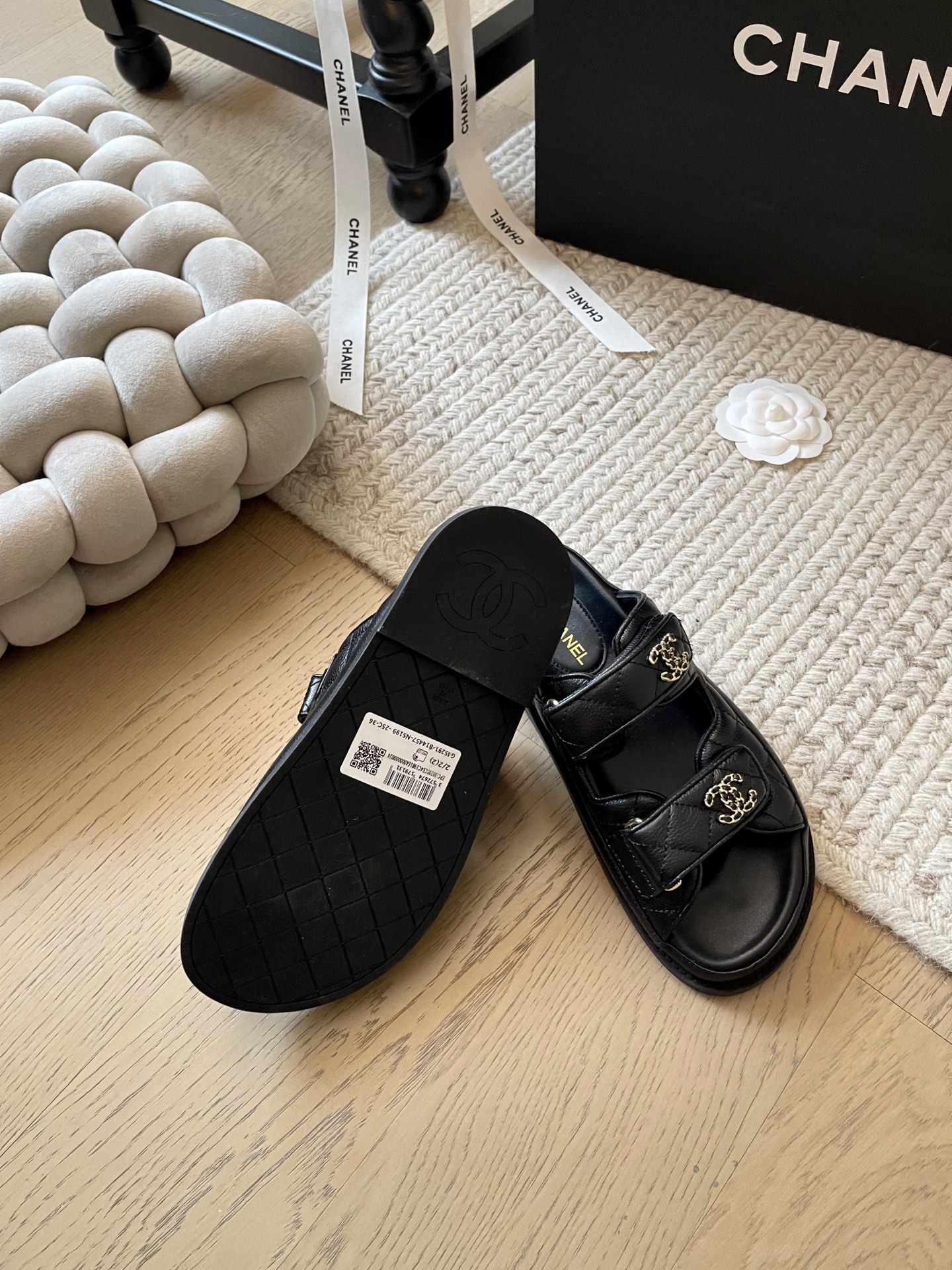 這款鞋子是AAAAA 1:1 質量(非常棒). 使用了和原版一模一樣的材料. 商標部分也保持了和香奈兒/Chanel一樣. 圖片拍攝是實物鞋子拍攝, 您所收到的實物保證和我們圖片一模一樣.
