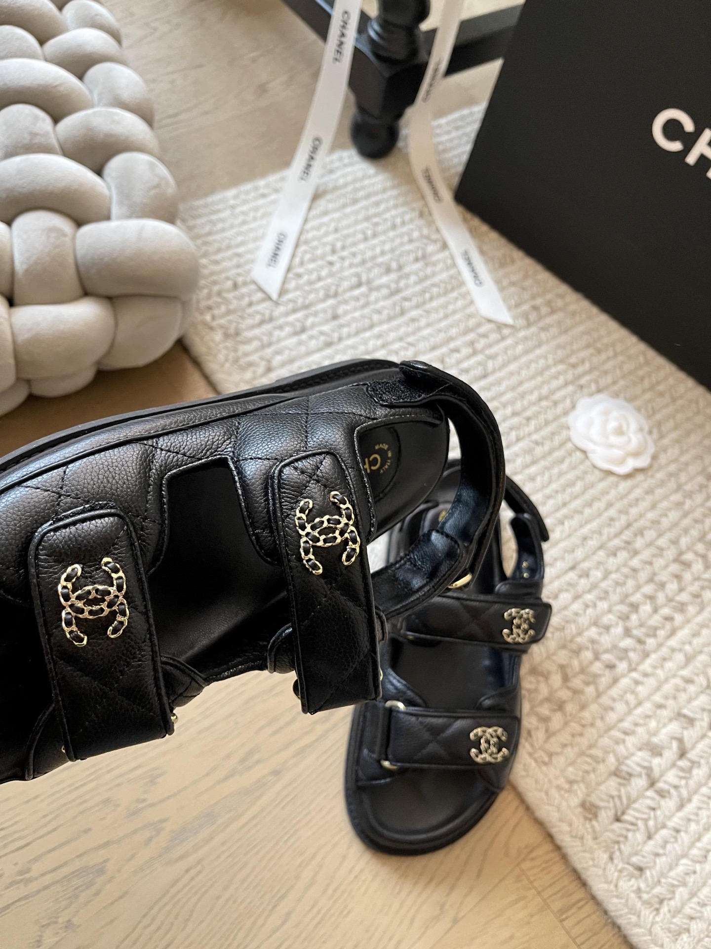 這款鞋子是AAAAA 1:1 質量(非常棒). 使用了和原版一模一樣的材料. 商標部分也保持了和香奈兒/Chanel一樣. 圖片拍攝是實物鞋子拍攝, 您所收到的實物保證和我們圖片一模一樣.
