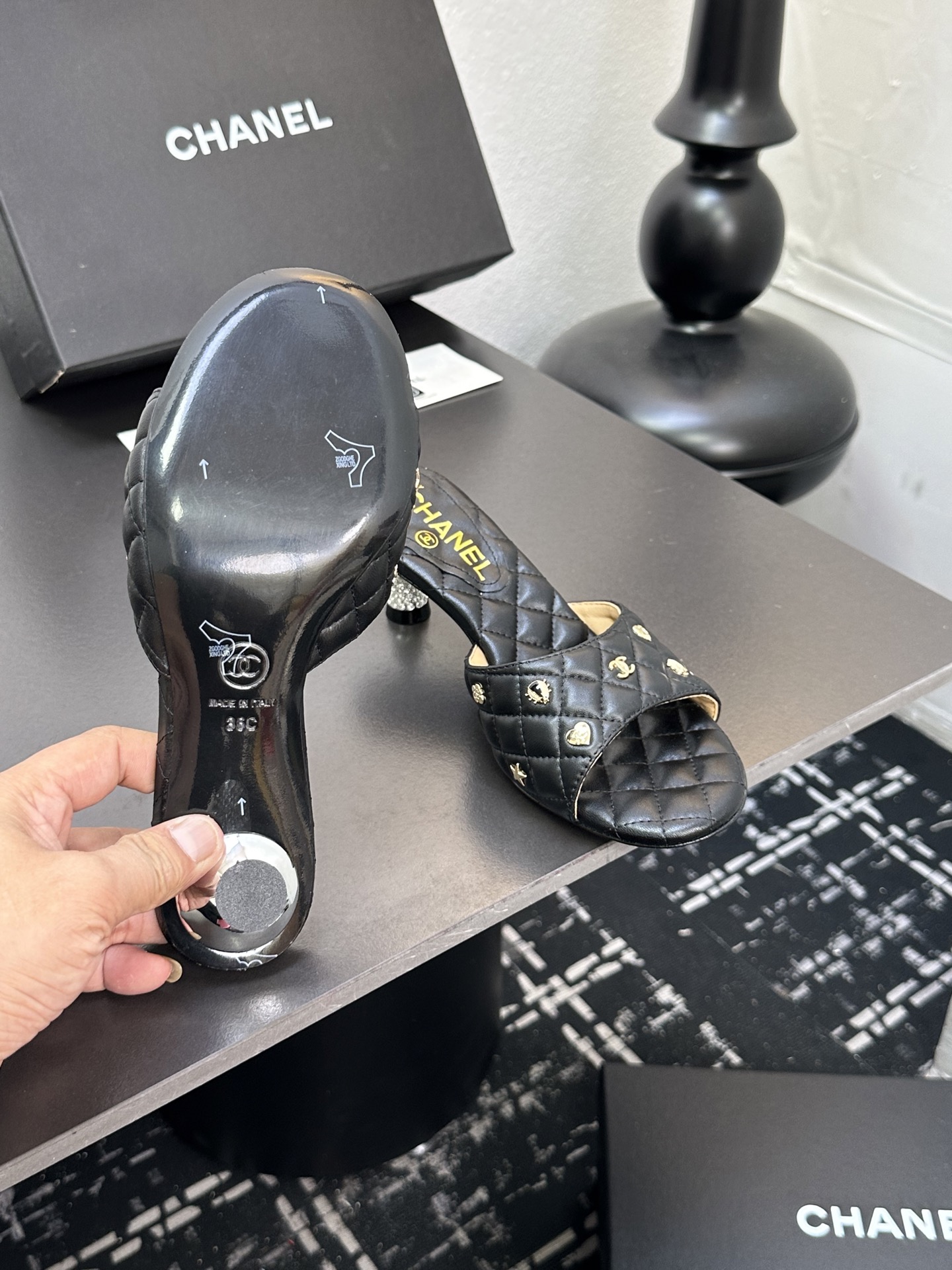 這款鞋子是AAAAA 1:1 質量(非常棒). 使用了和原版一模一樣的材料. 商標部分也保持了和香奈兒/Chanel一樣. 圖片拍攝是實物鞋子拍攝, 您所收到的實物保證和我們圖片一模一樣.