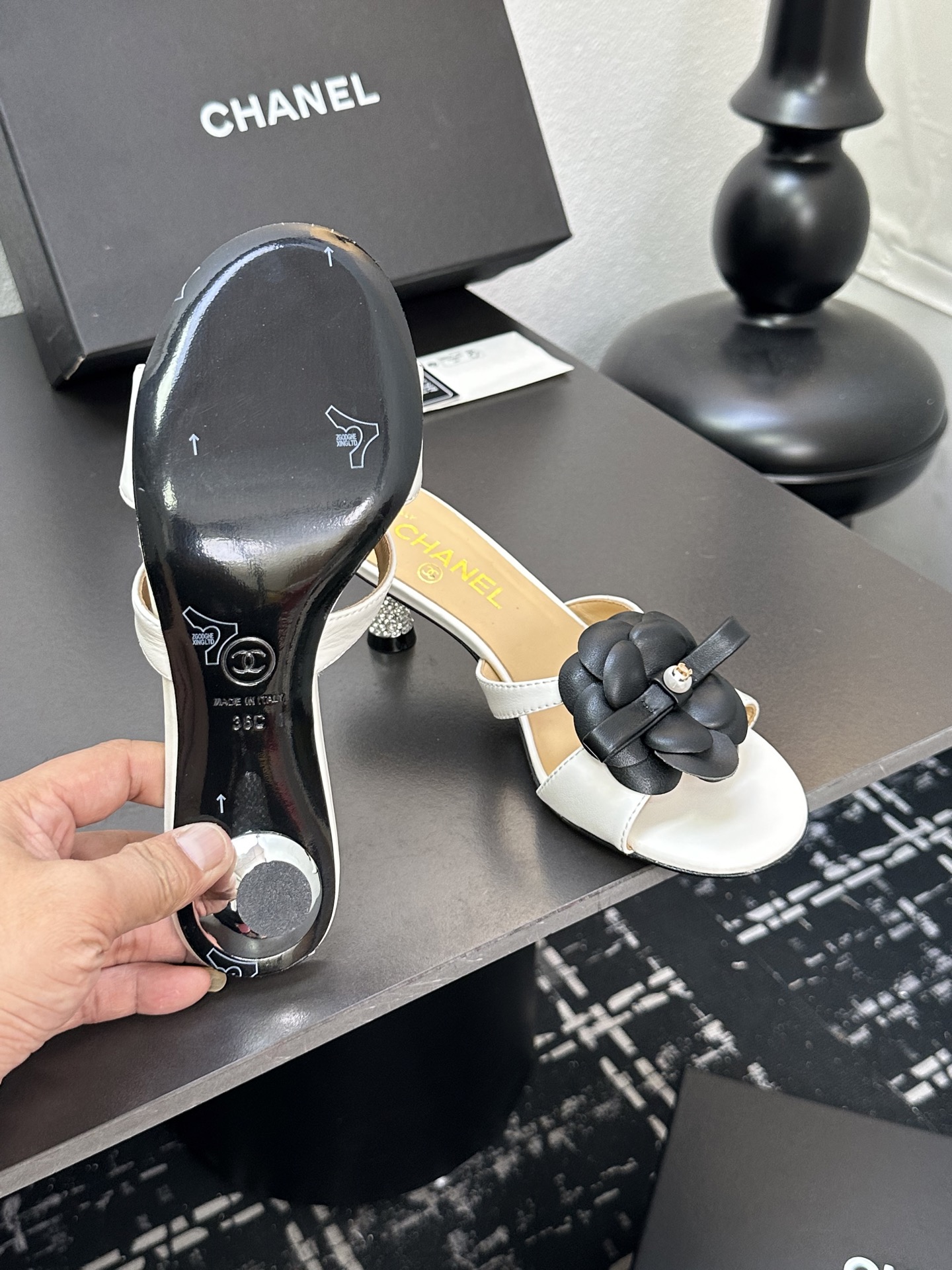 這款鞋子是AAAAA 1:1 質量(非常棒). 使用了和原版一模一樣的材料. 商標部分也保持了和香奈兒/Chanel一樣. 圖片拍攝是實物鞋子拍攝, 您所收到的實物保證和我們圖片一模一樣.