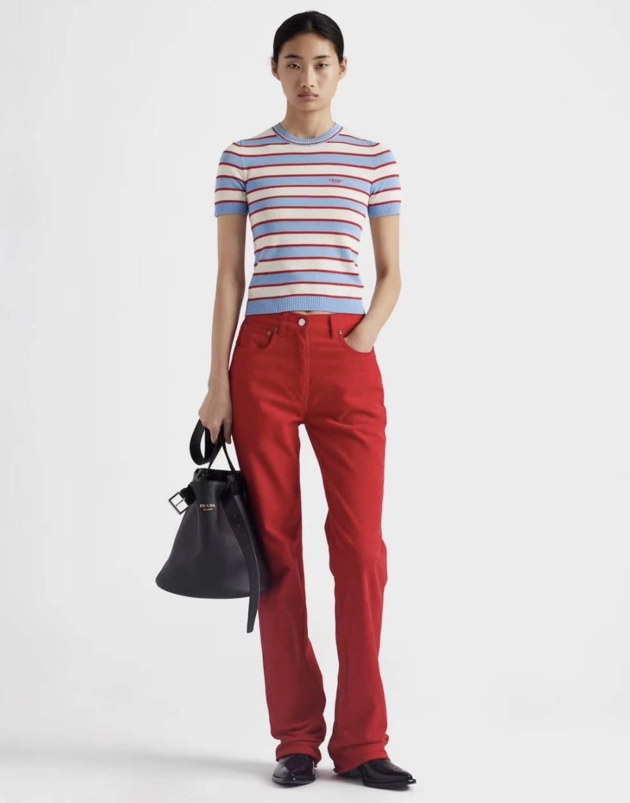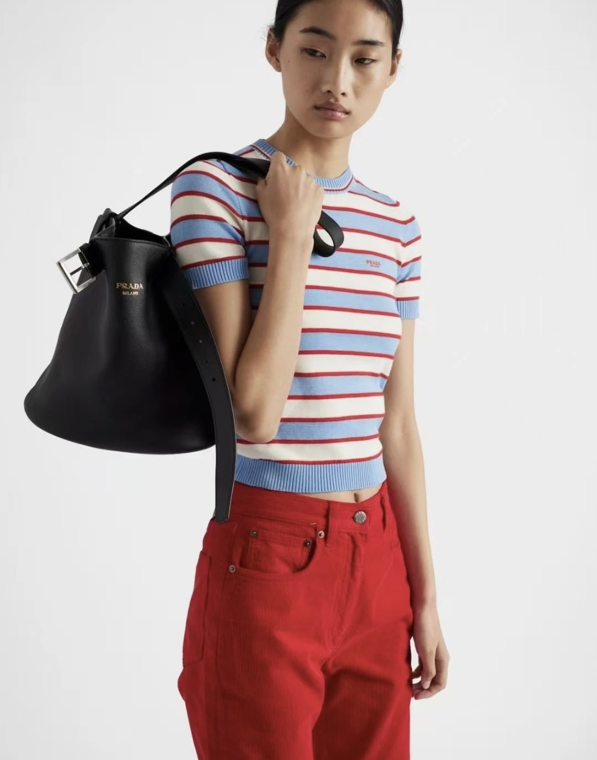 這款衣服是AAAAA 1:1 質量(非常棒). 使用了和原版一模一樣的材料. 商標部分也保持了和普拉達/Prada一樣. 圖片拍攝是實物衣服拍攝, 您所收到的實物保證和我們圖片一模一樣.
