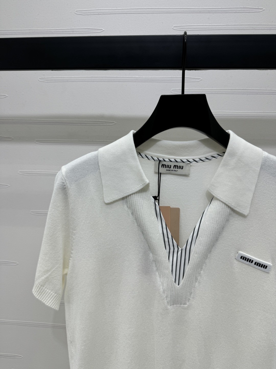 這款衣服是AAAAA 1:1 質量(非常棒). 使用了和原版一模一樣的材料. 商標部分也保持了和繆繆/Miu Miu一樣. 圖片拍攝是實物衣服拍攝, 您所收到的實物保證和我們圖片一模一樣.