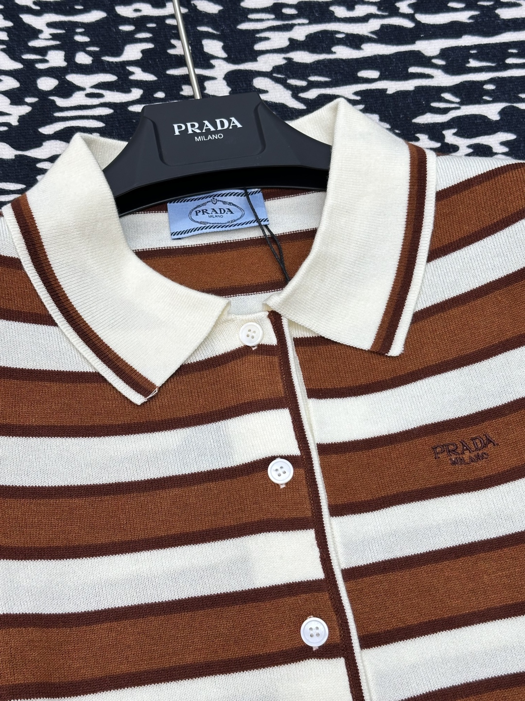 這款衣服是AAAAA 1:1 質量(非常棒). 使用了和原版一模一樣的材料. 商標部分也保持了和普拉達/Prada一樣. 圖片拍攝是實物衣服拍攝, 您所收到的實物保證和我們圖片一模一樣.