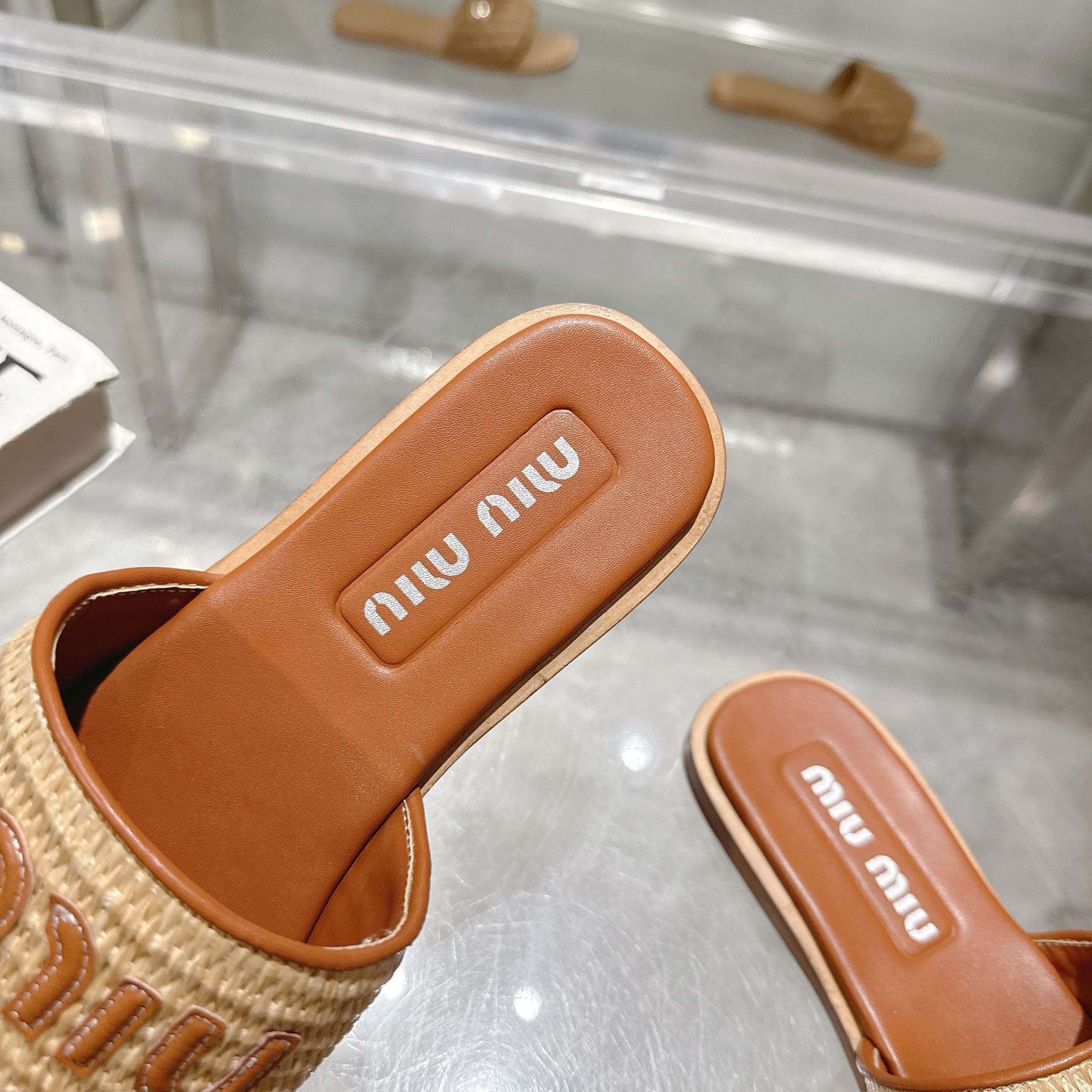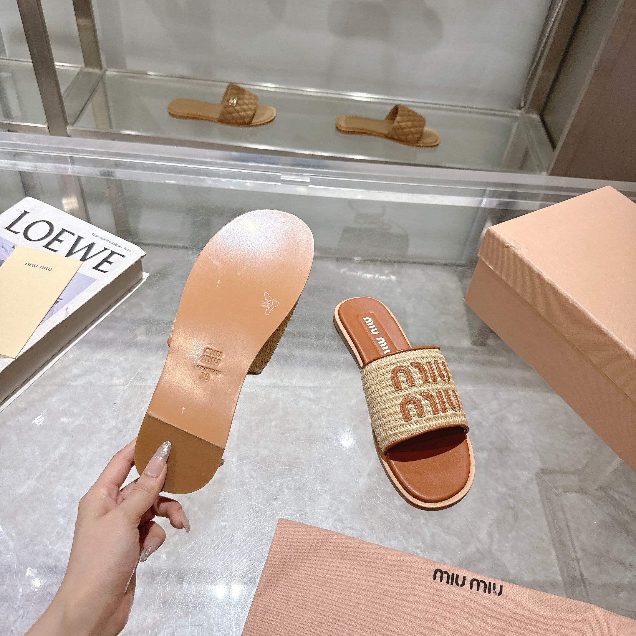 這款鞋子是AAAAA 1:1 質量(非常棒). 使用了和原版一模一樣的材料. 商標部分也保持了和繆繆/Miu Miu一樣. 圖片拍攝是實物鞋子拍攝, 您所收到的實物保證和我們圖片一模一樣.