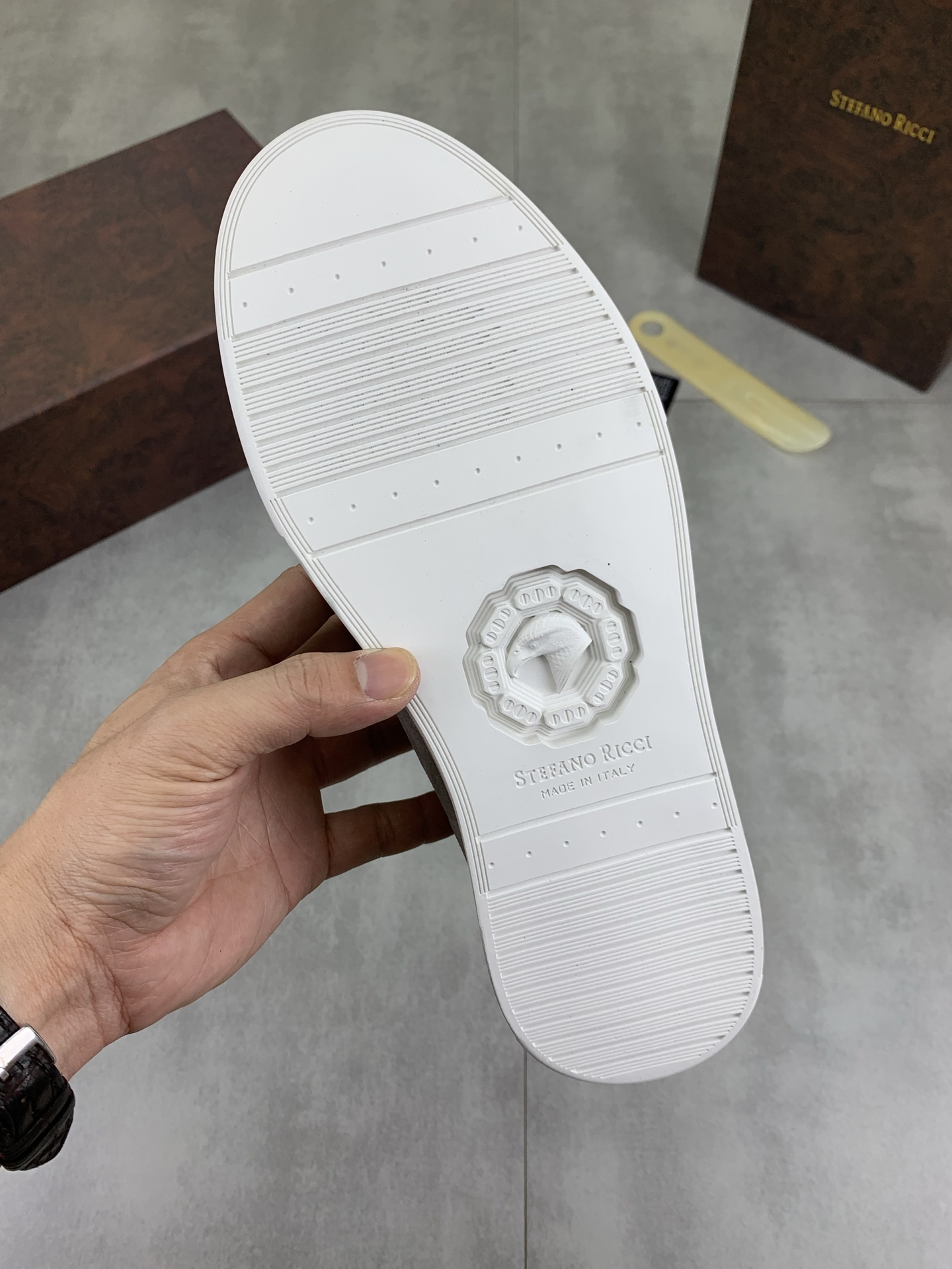 這款鞋子是AAAAA 1:1 質量(非常棒). 使用了和原版一模一樣的材料. 商標部分也保持了和Stefano Ricci一樣. 圖片拍攝是實物鞋子拍攝, 您所收到的實物保證和我們圖片一模一樣.