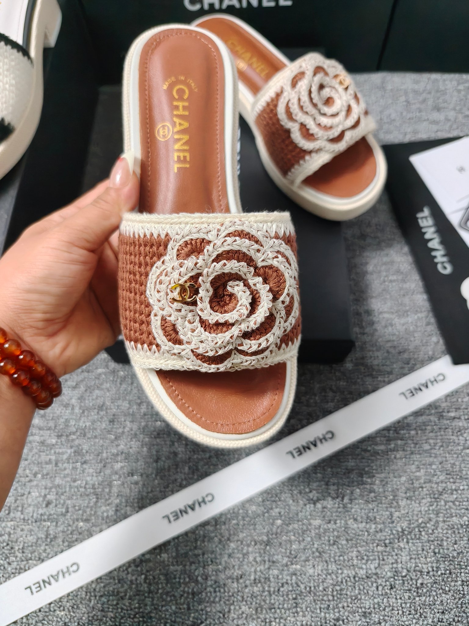 這款鞋子是AAAAA 1:1 質量(非常棒). 使用了和原版一模一樣的材料. 商標部分也保持了和香奈兒/Chanel一樣. 圖片拍攝是實物鞋子拍攝, 您所收到的實物保證和我們圖片一模一樣.