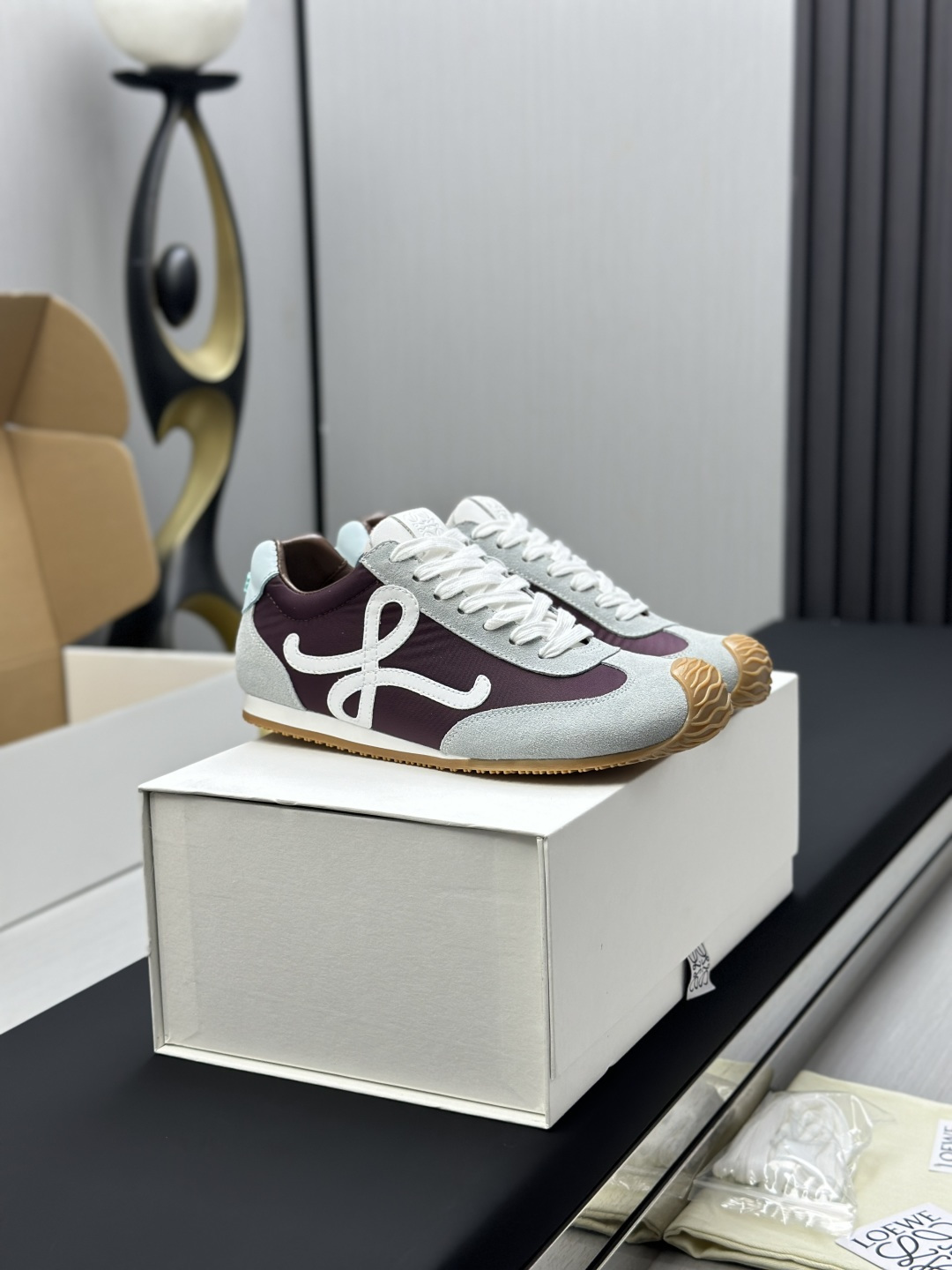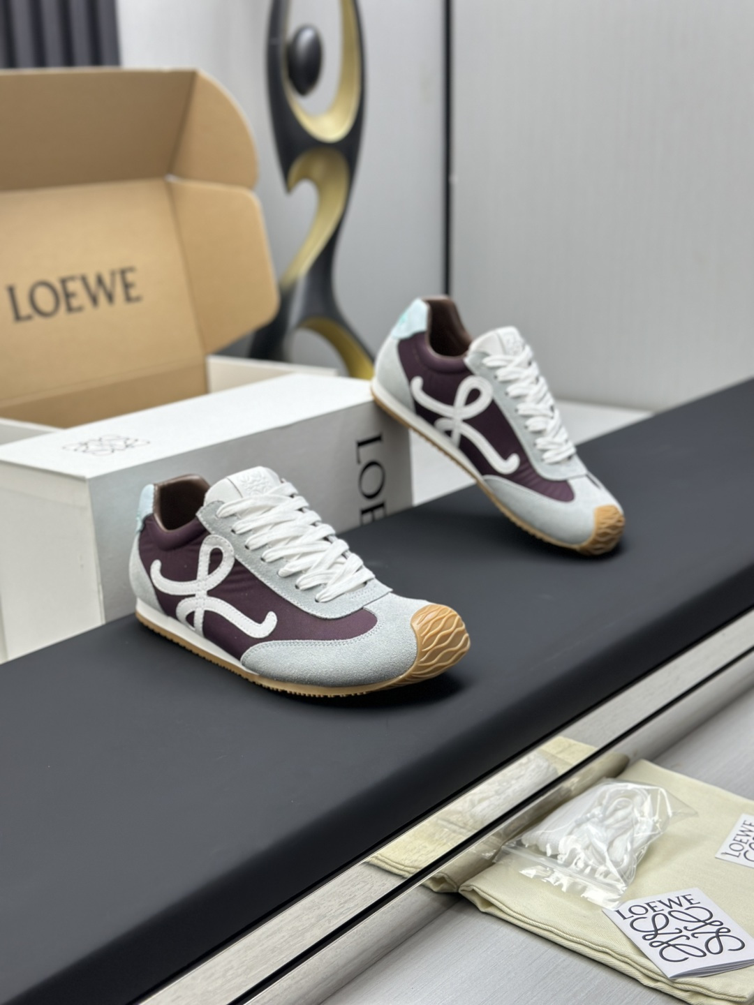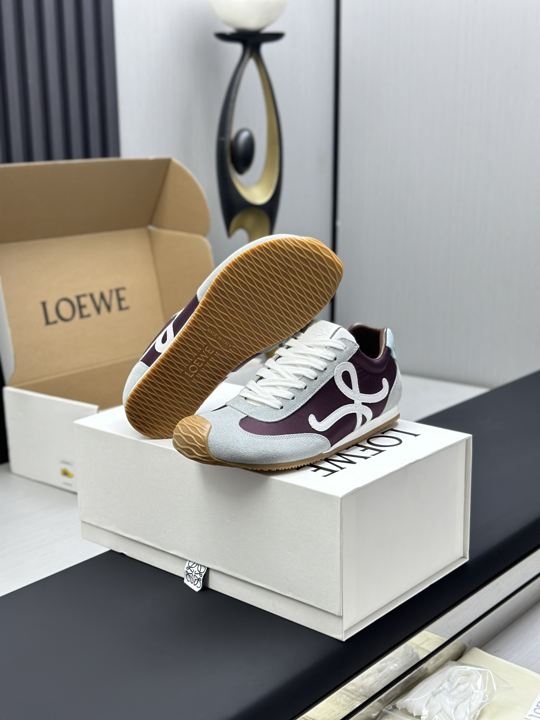 這款鞋子是AAAAA 1:1 質量(非常棒). 使用了和原版一模一樣的材料. 商標部分也保持了和Loewe一樣. 圖片拍攝是實物鞋子拍攝, 您所收到的實物保證和我們圖片一模一樣.