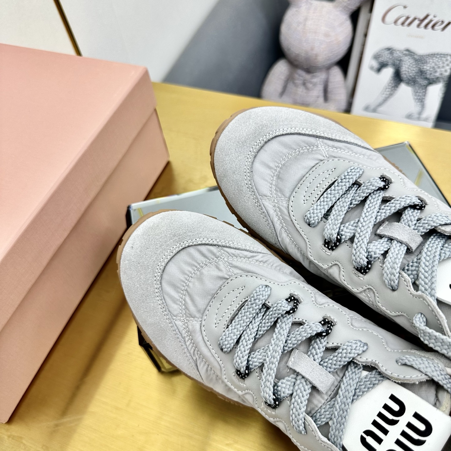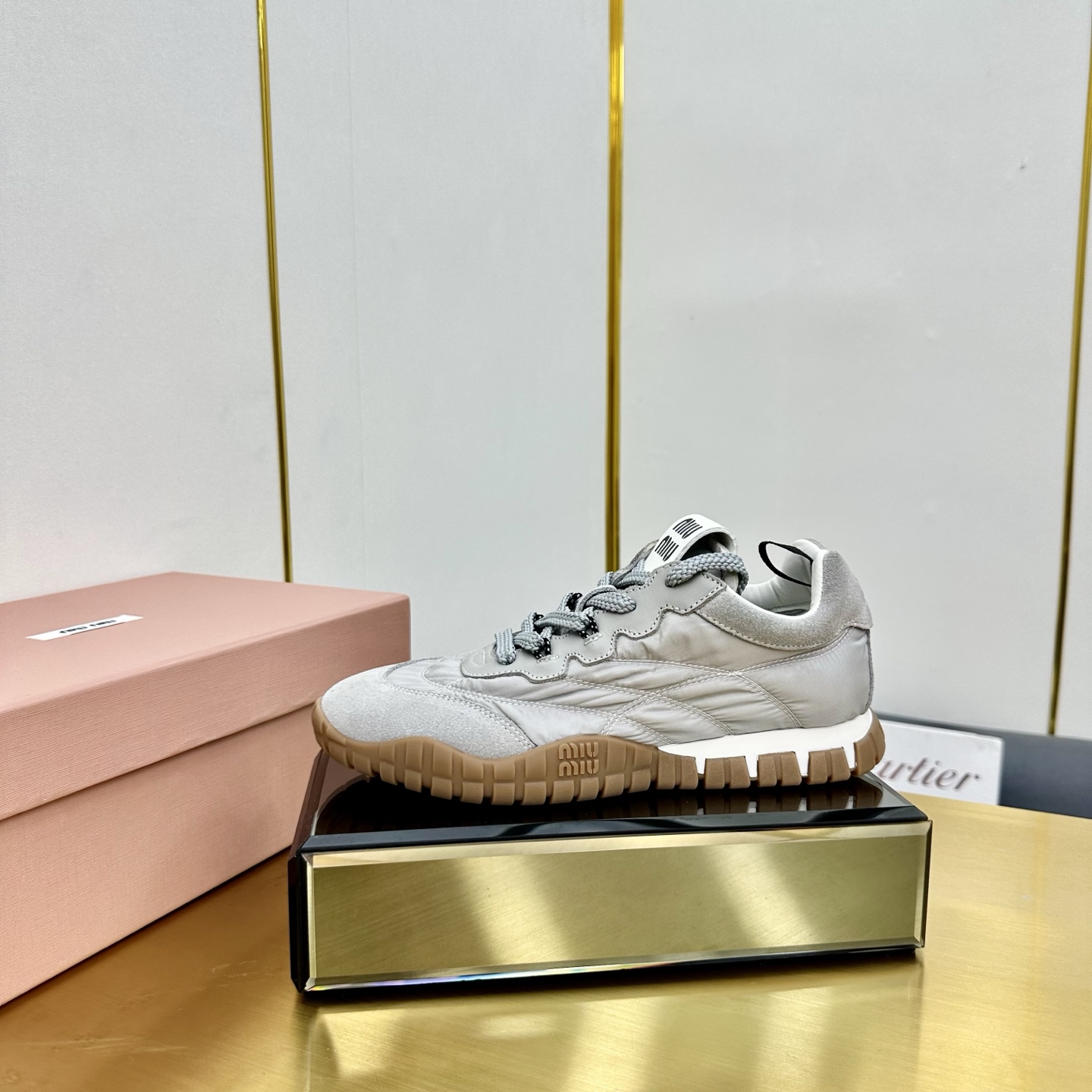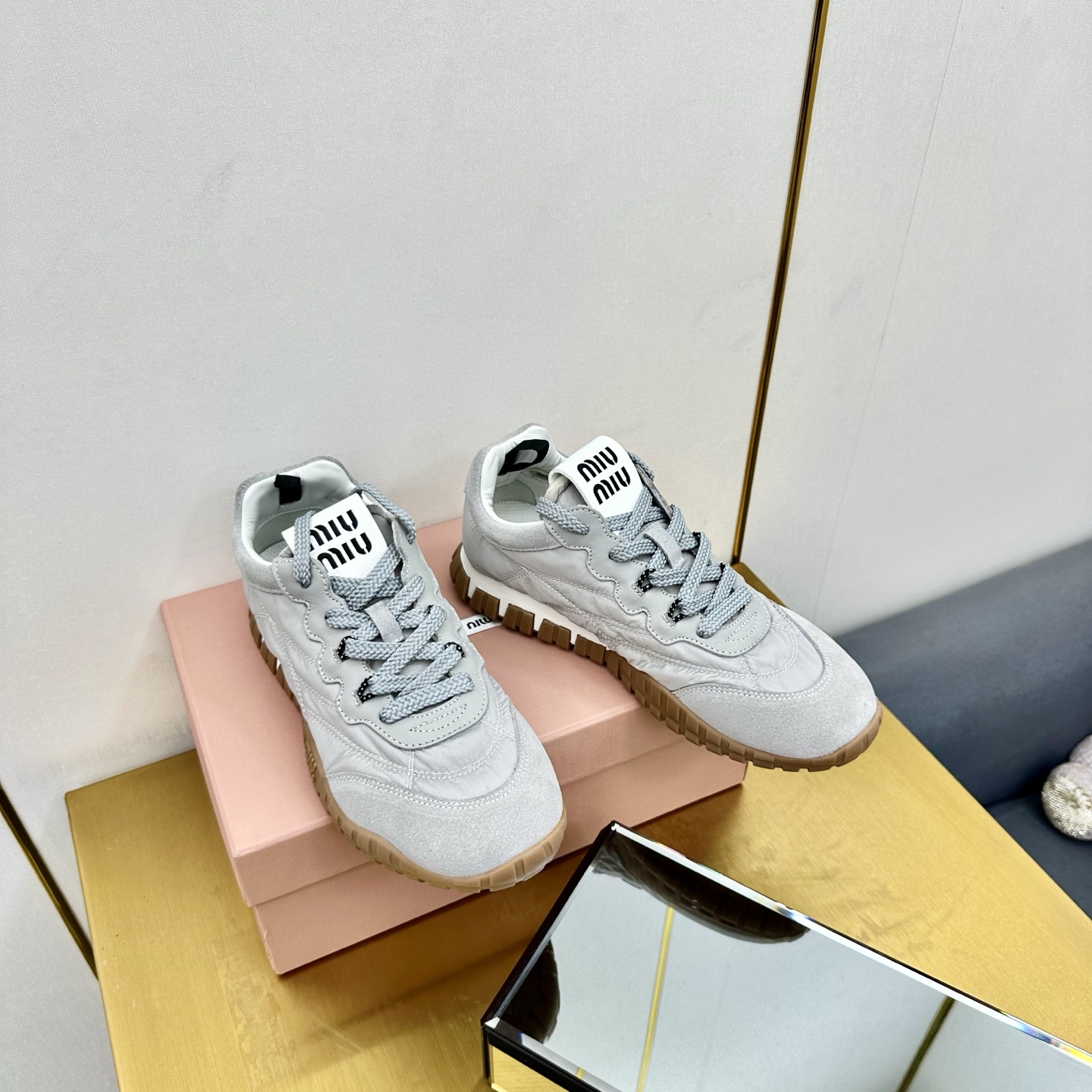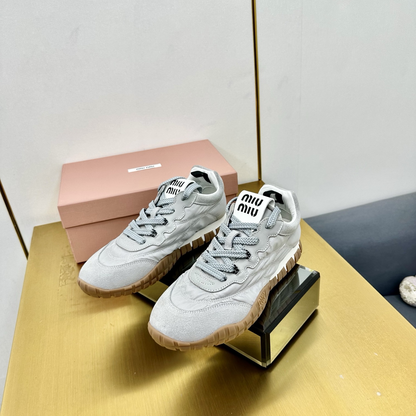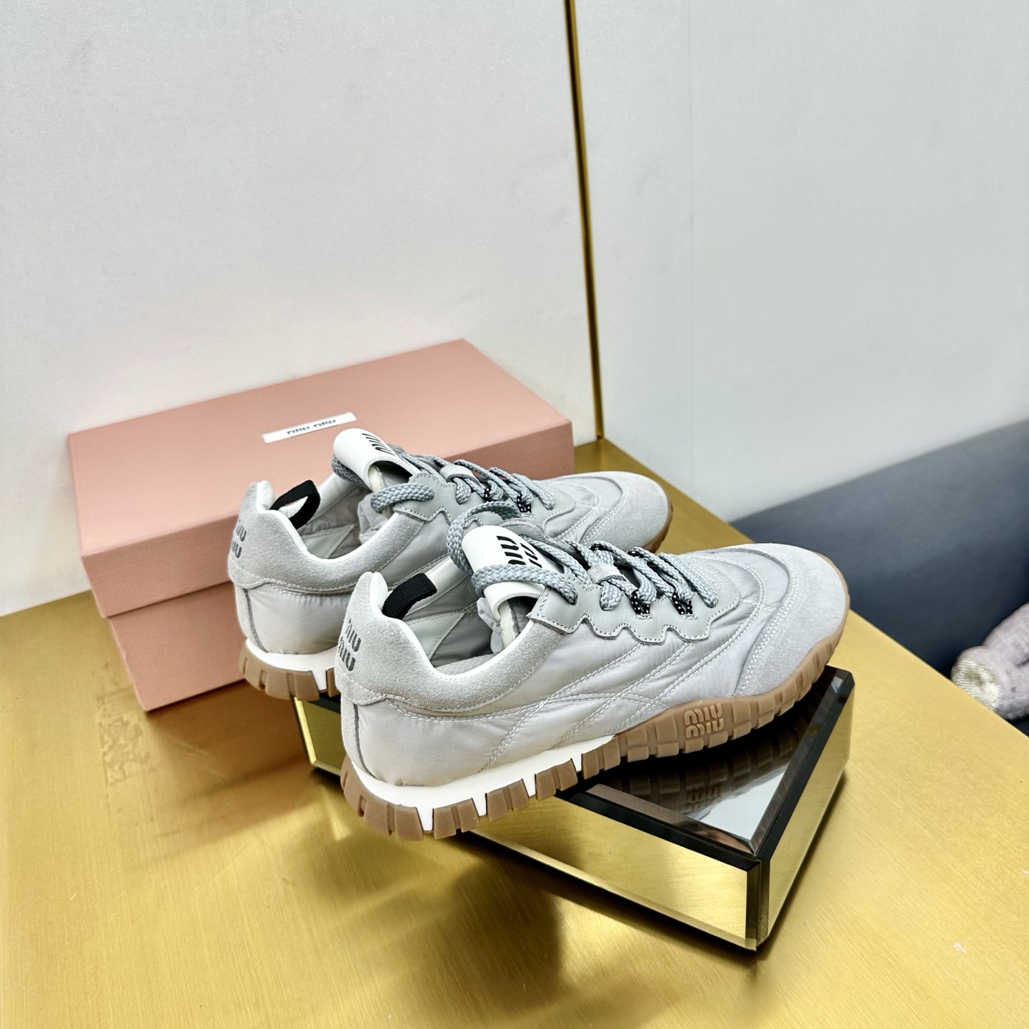 這款鞋子是AAAAA 1:1 質量(非常棒). 使用了和原版一模一樣的材料. 商標部分也保持了和繆繆/Miu Miu一樣. 圖片拍攝是實物鞋子拍攝, 您所收到的實物保證和我們圖片一模一樣.