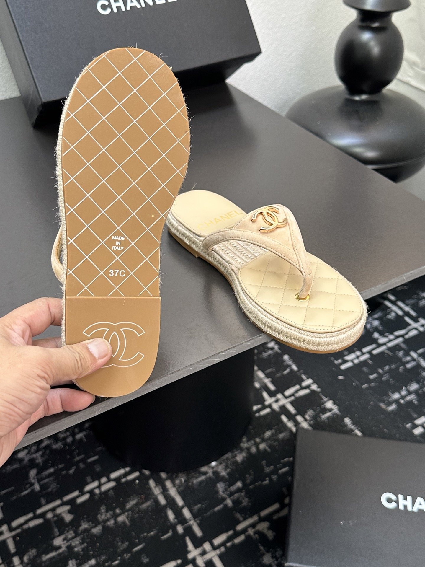 這款鞋子是AAAAA 1:1 質量(非常棒). 使用了和原版一模一樣的材料. 商標部分也保持了和香奈兒/Chanel一樣. 圖片拍攝是實物鞋子拍攝, 您所收到的實物保證和我們圖片一模一樣.