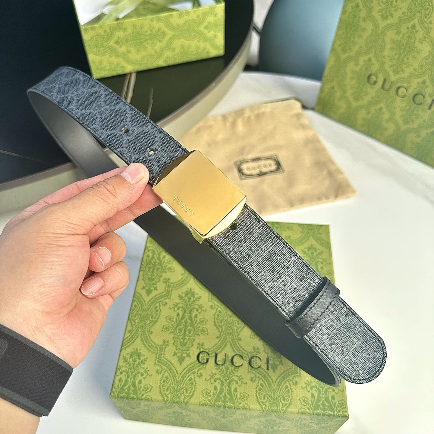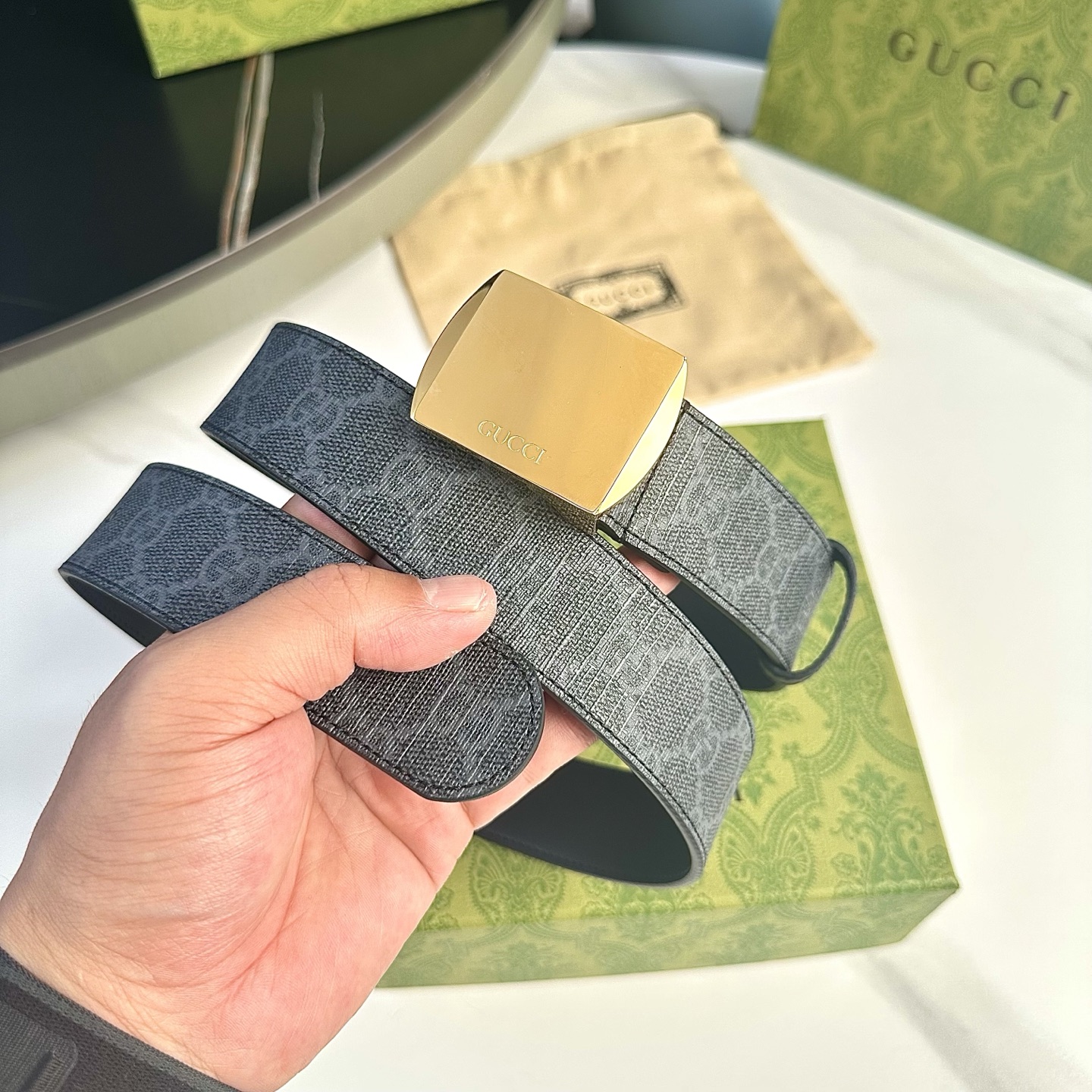 這款皮帶是AAAAA 1:1 質量(非常棒). 使用了和原版一模一樣的材料. 商標部分也保持了和古奇/Gucci一樣. 圖片拍攝是實物皮帶拍攝, 您所收到的實物保證和我們圖片一模一樣.