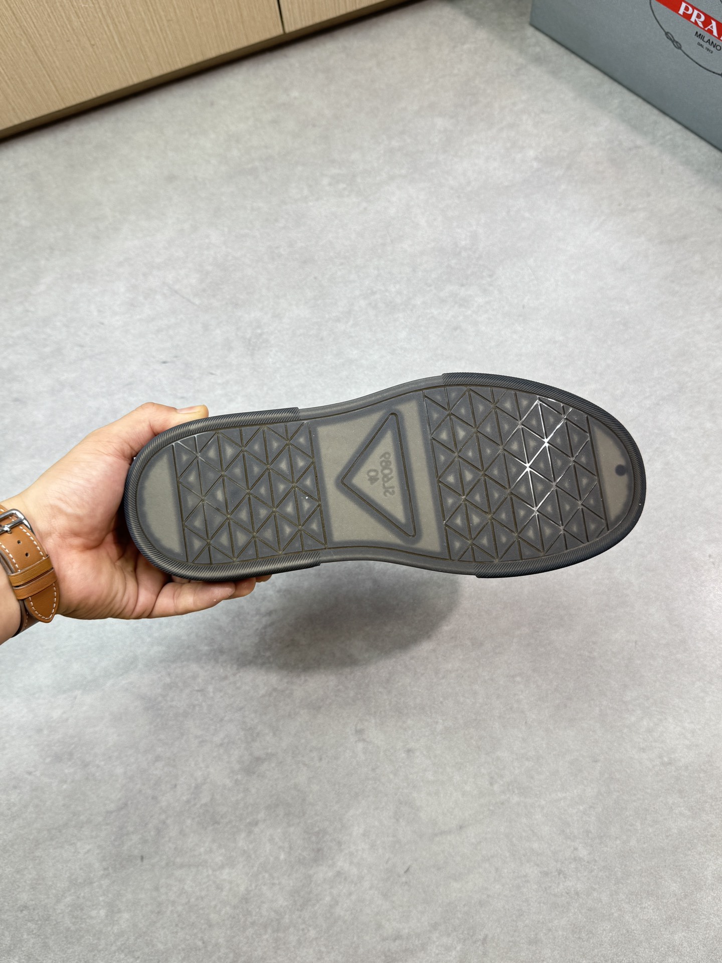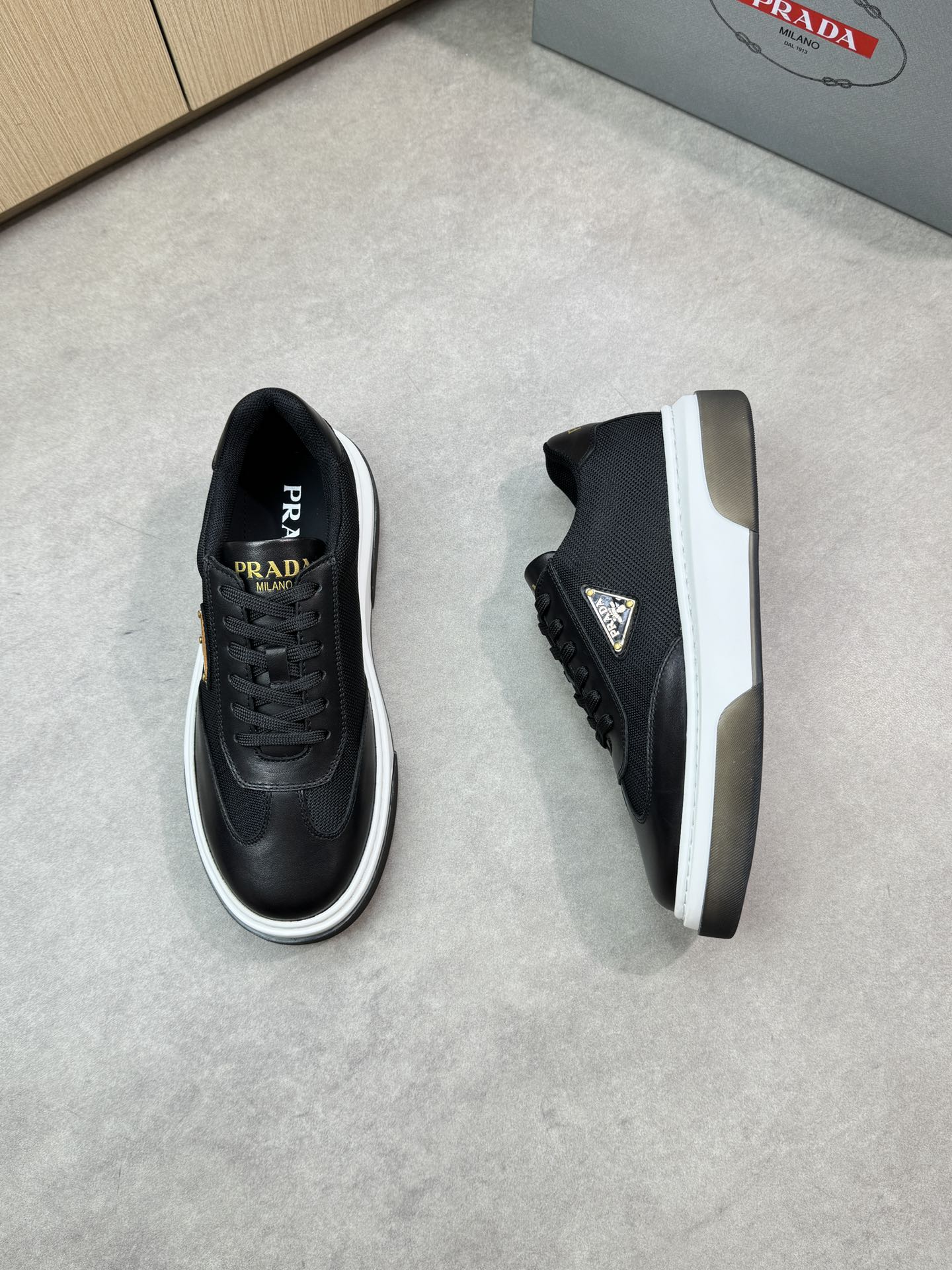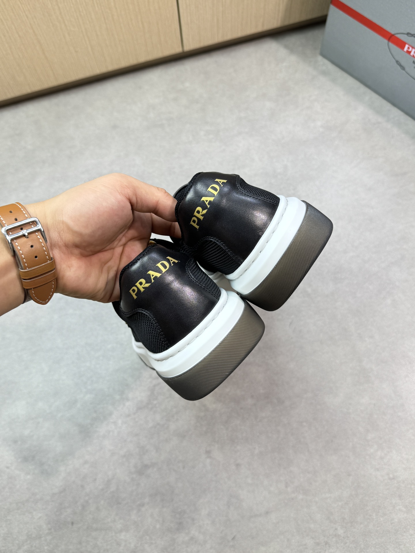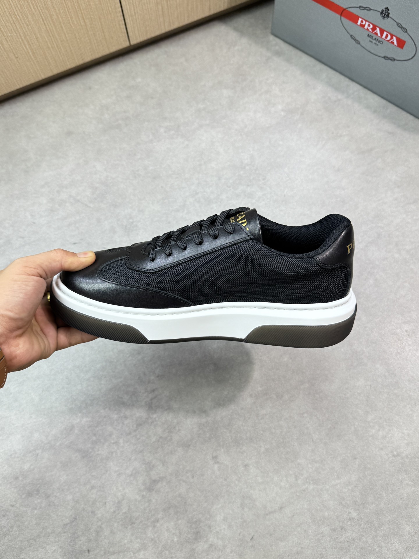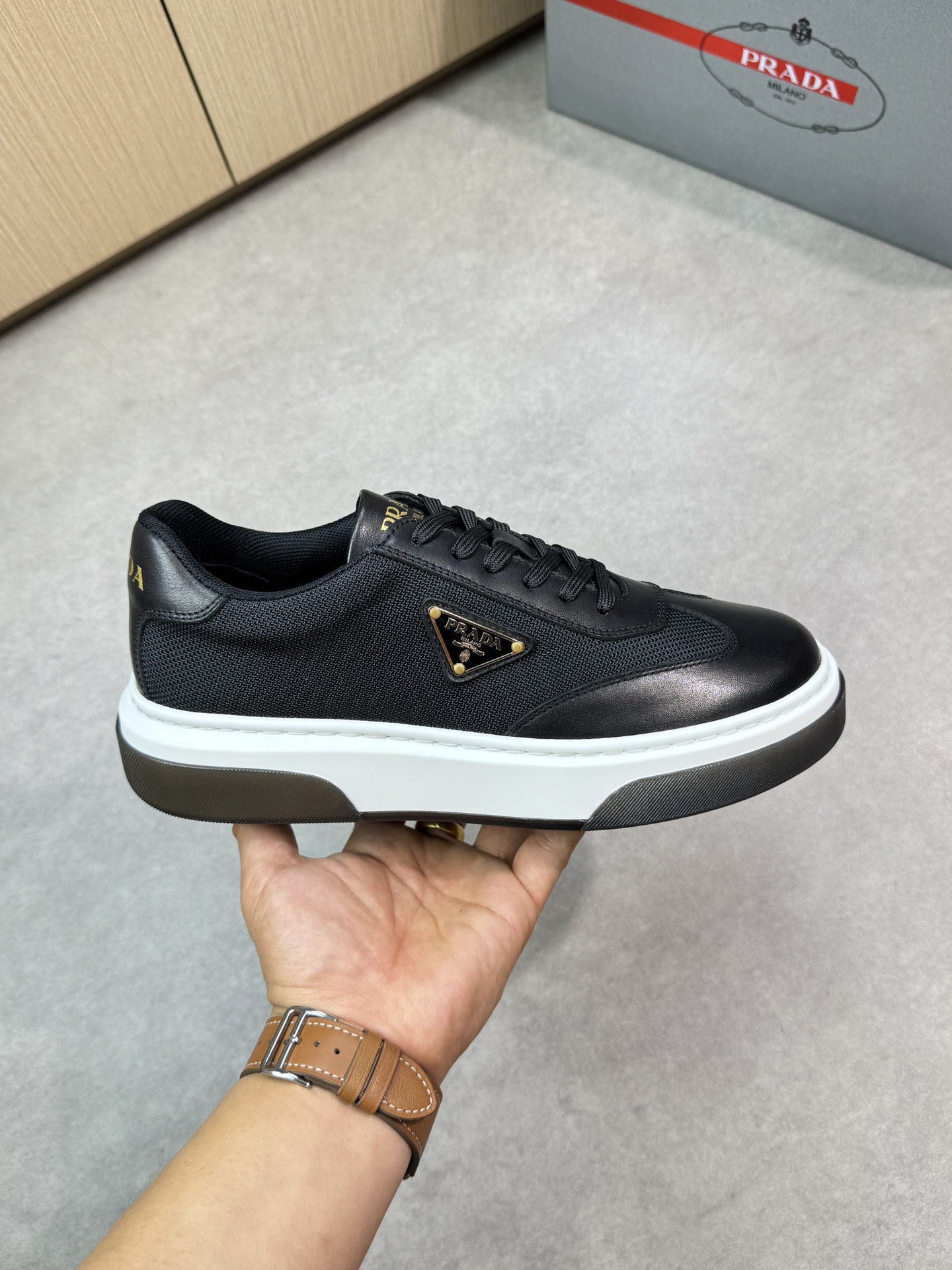 這款鞋子是AAAAA 1:1 質量(非常棒). 使用了和原版一模一樣的材料. 商標部分也保持了和普拉達/Prada一樣. 圖片拍攝是實物鞋子拍攝, 您所收到的實物保證和我們圖片一模一樣.