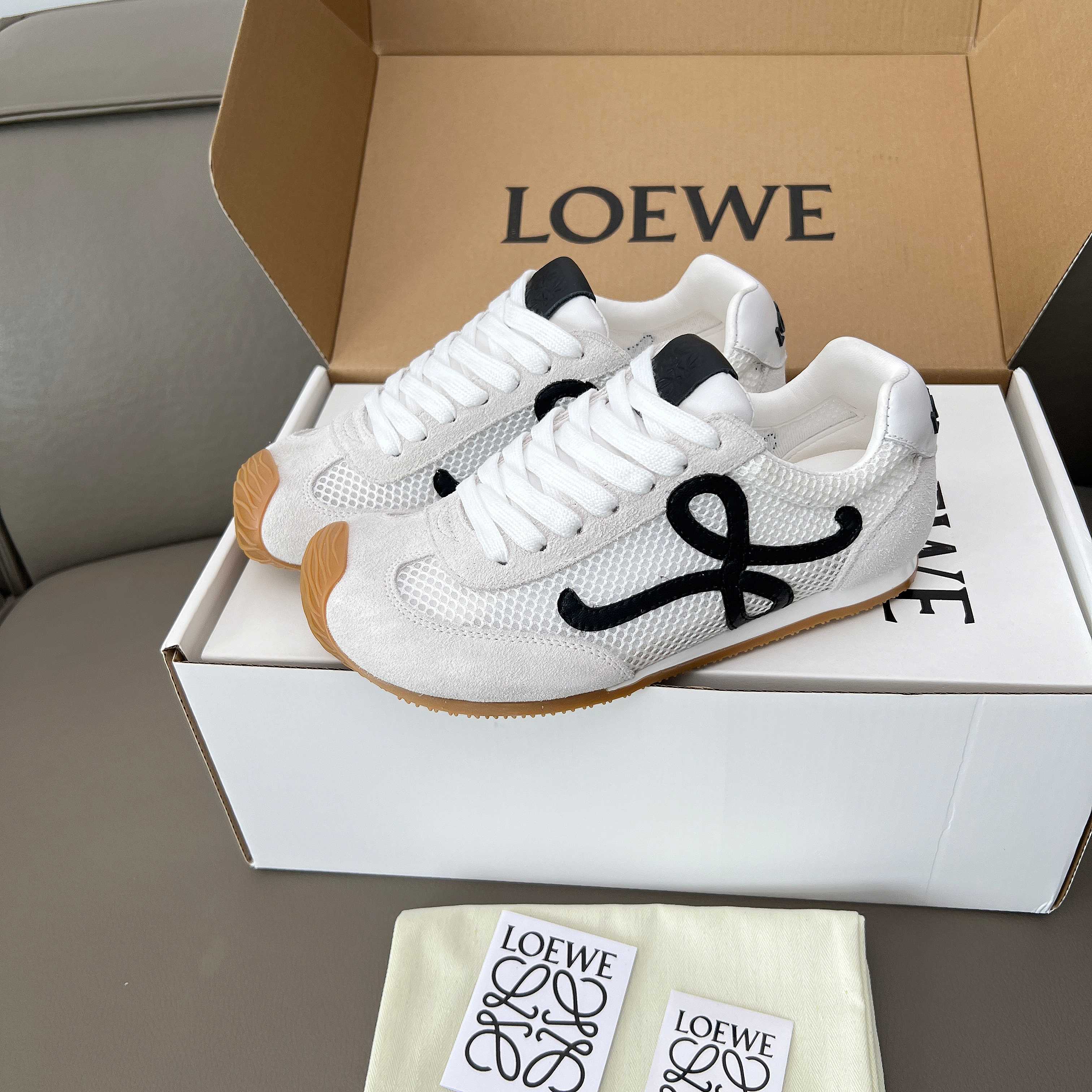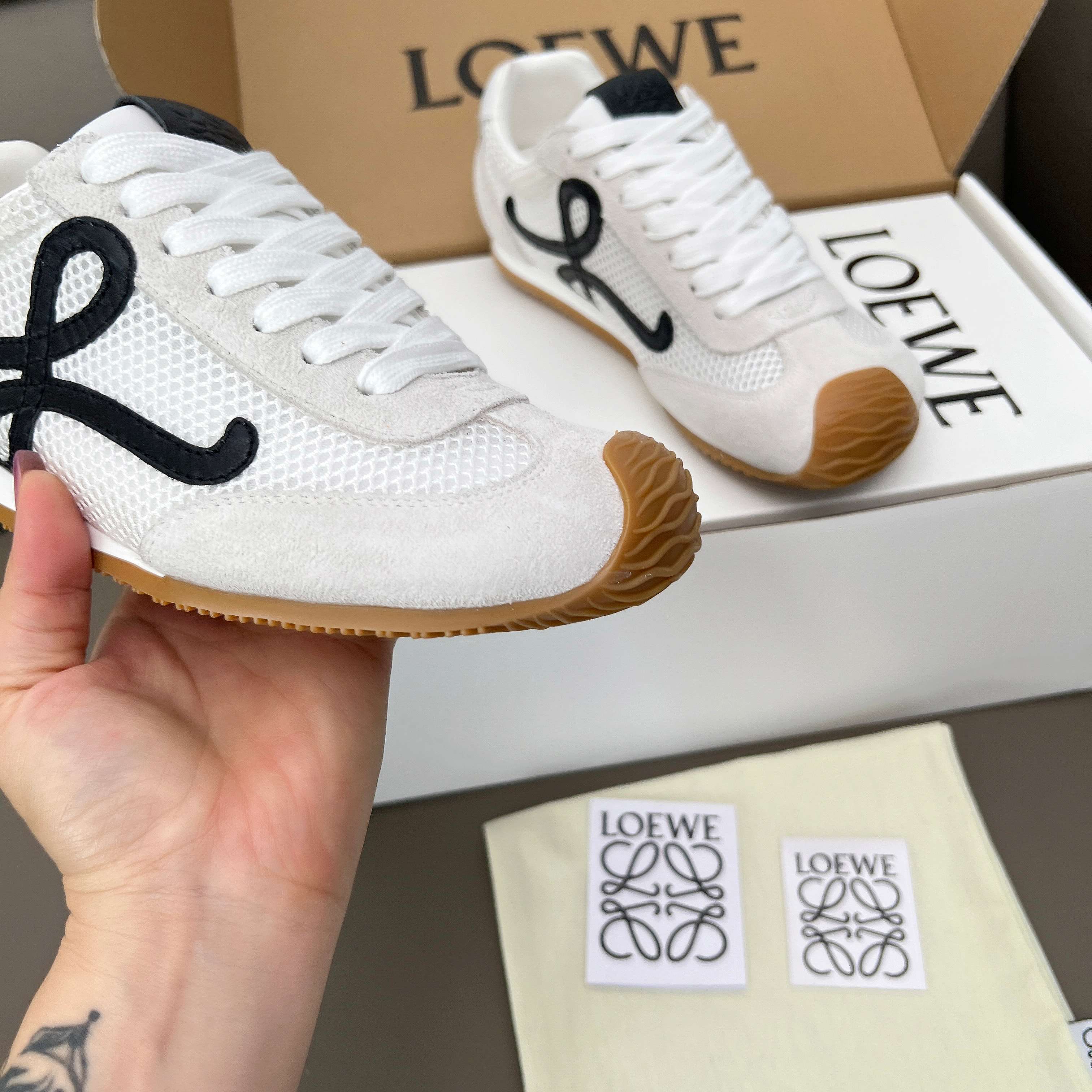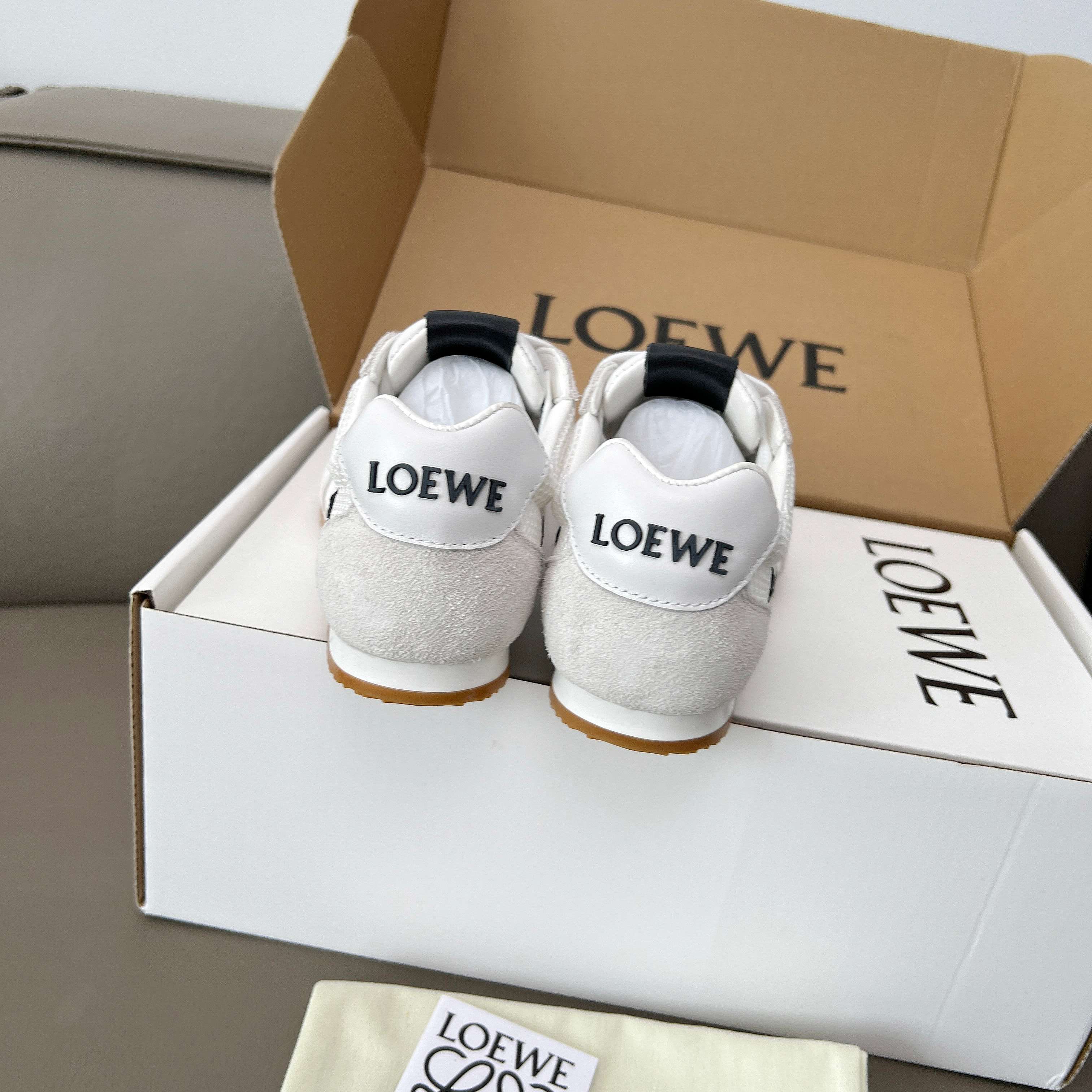 這款鞋子是AAAAA 1:1 質量(非常棒). 使用了和原版一模一樣的材料. 商標部分也保持了和Loewe一樣. 圖片拍攝是實物鞋子拍攝, 您所收到的實物保證和我們圖片一模一樣.