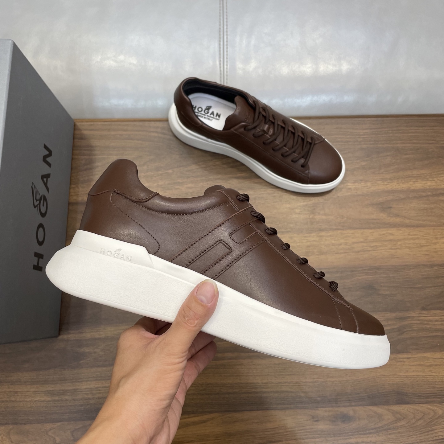 這款鞋子是AAAAA 1:1 質量(非常棒). 使用了和原版一模一樣的材料. 商標部分也保持了和Hogan一樣. 圖片拍攝是實物鞋子拍攝, 您所收到的實物保證和我們圖片一模一樣.