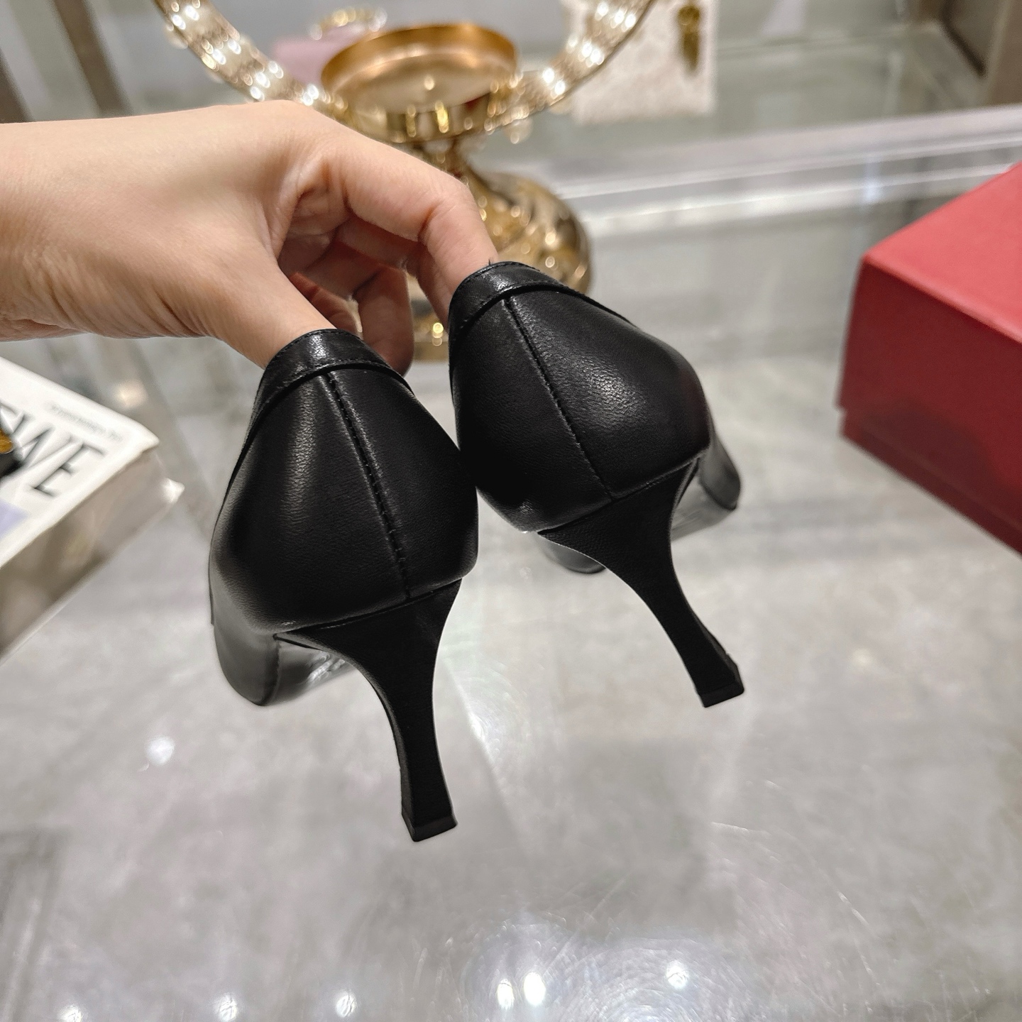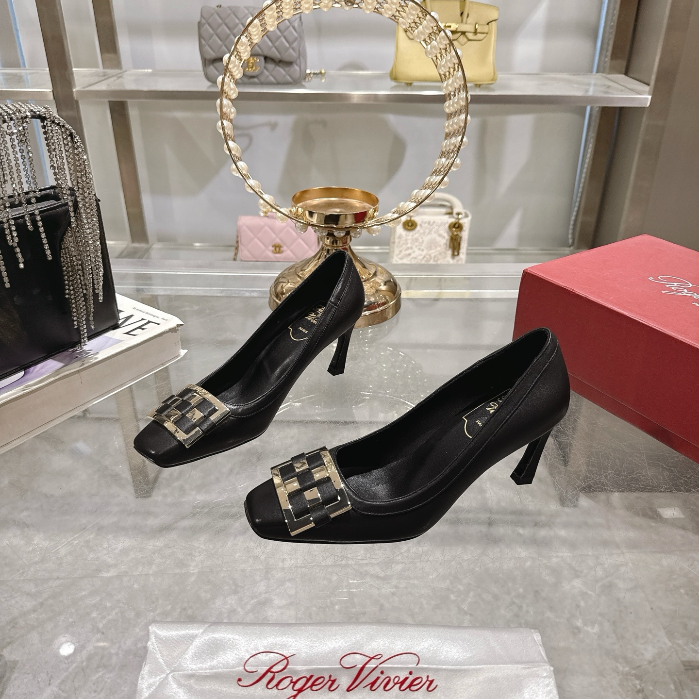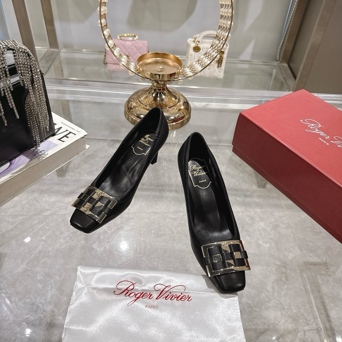 這款鞋子是AAAAA 1:1 質量(非常棒). 使用了和原版一模一樣的材料. 商標部分也保持了和羅傑維維耶/Roger Vivier一樣. 圖片拍攝是實物鞋子拍攝, 您所收到的實物保證和我們圖片一模一樣.