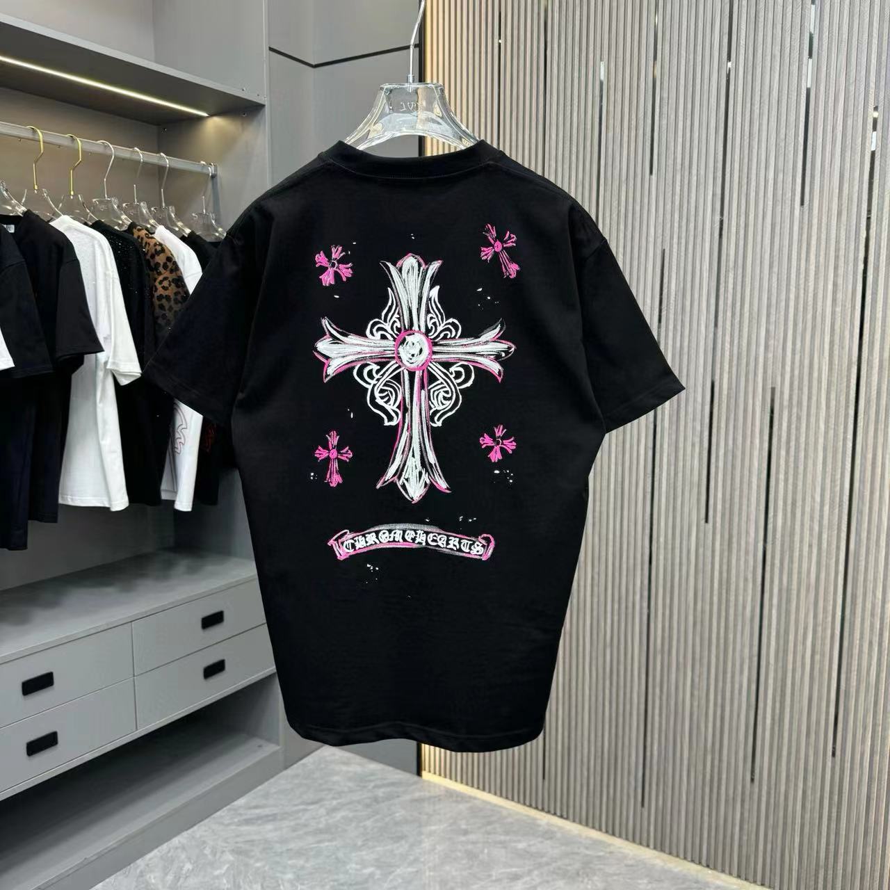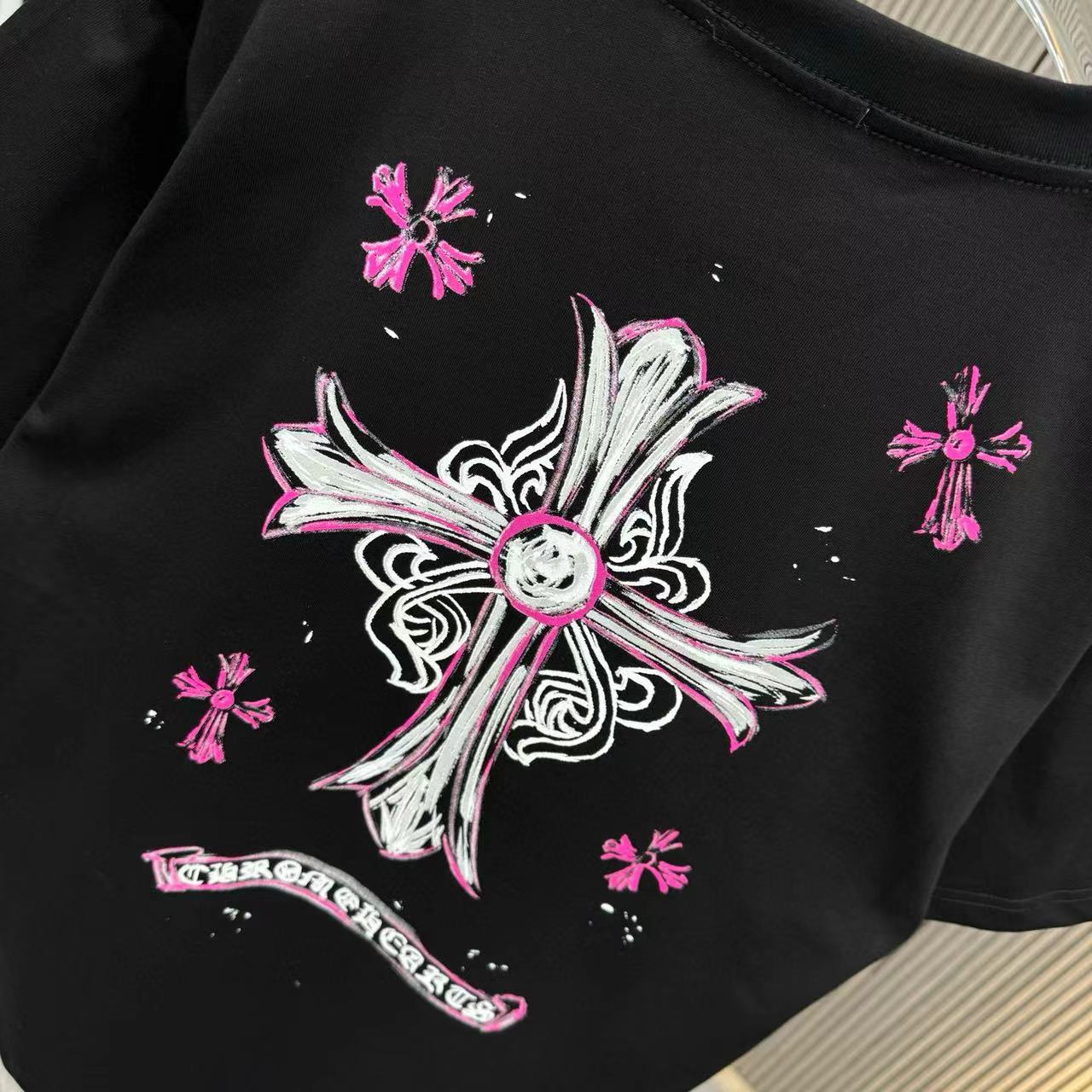 這款衣服是AAAAA 1:1 質量(非常棒). 使用了和原版一模一樣的材料. 商標部分也保持了和鉻心/Chrome Hearts一樣. 圖片拍攝是實物衣服拍攝, 您所收到的實物保證和我們圖片一模一樣.