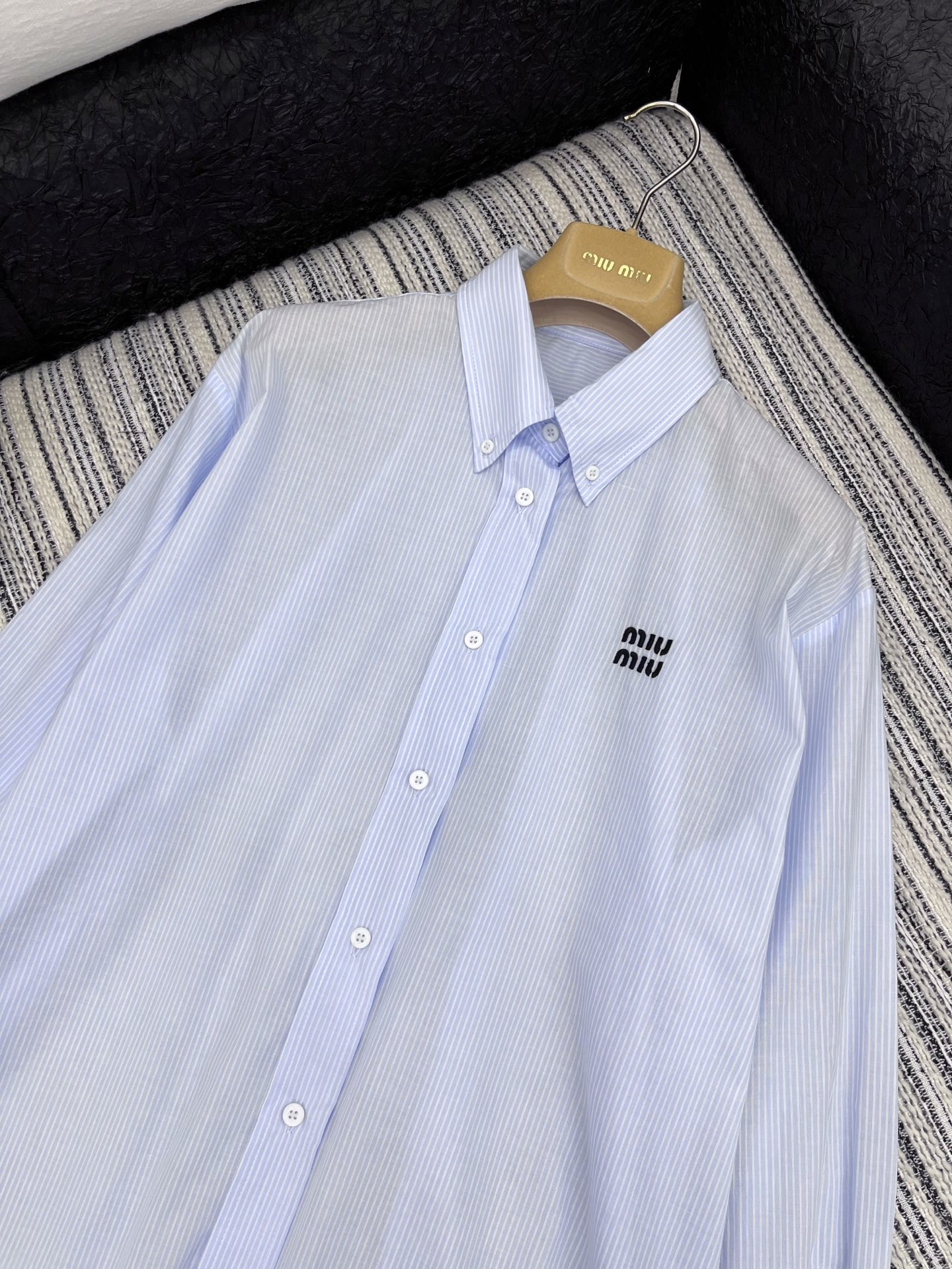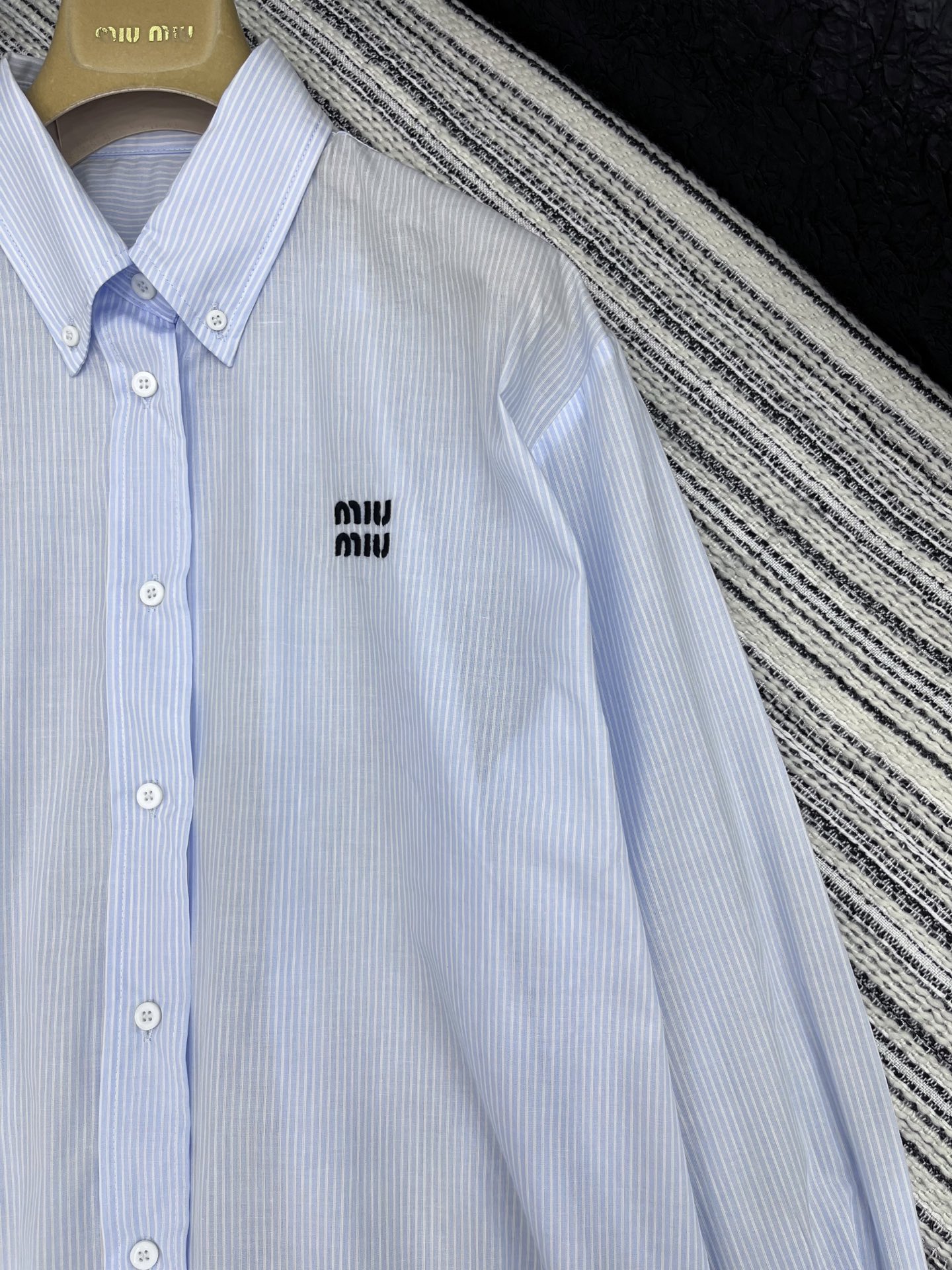 這款衣服是AAAAA 1:1 質量(非常棒). 使用了和原版一模一樣的材料. 商標部分也保持了和繆繆/Miu Miu一樣. 圖片拍攝是實物衣服拍攝, 您所收到的實物保證和我們圖片一模一樣.