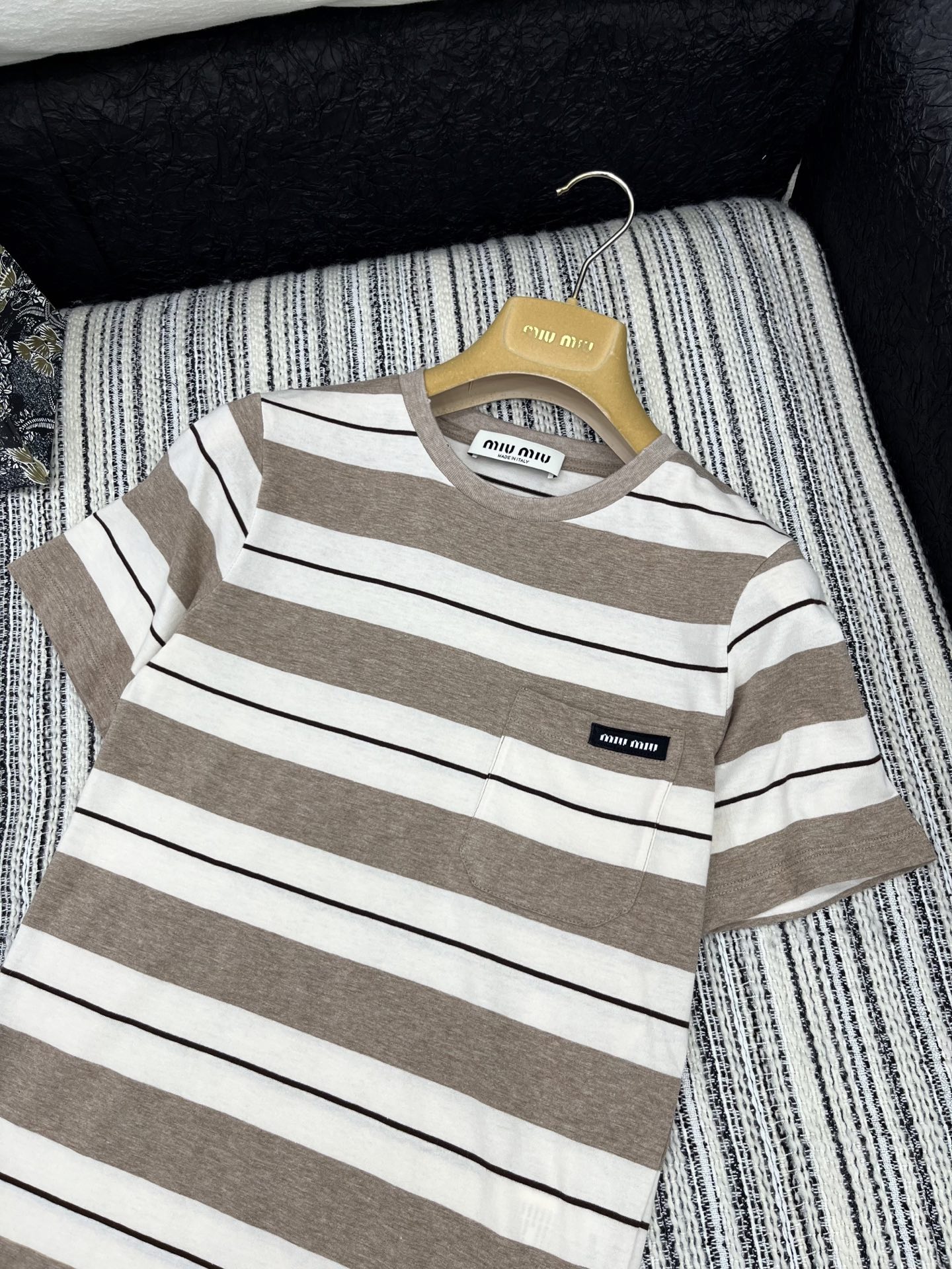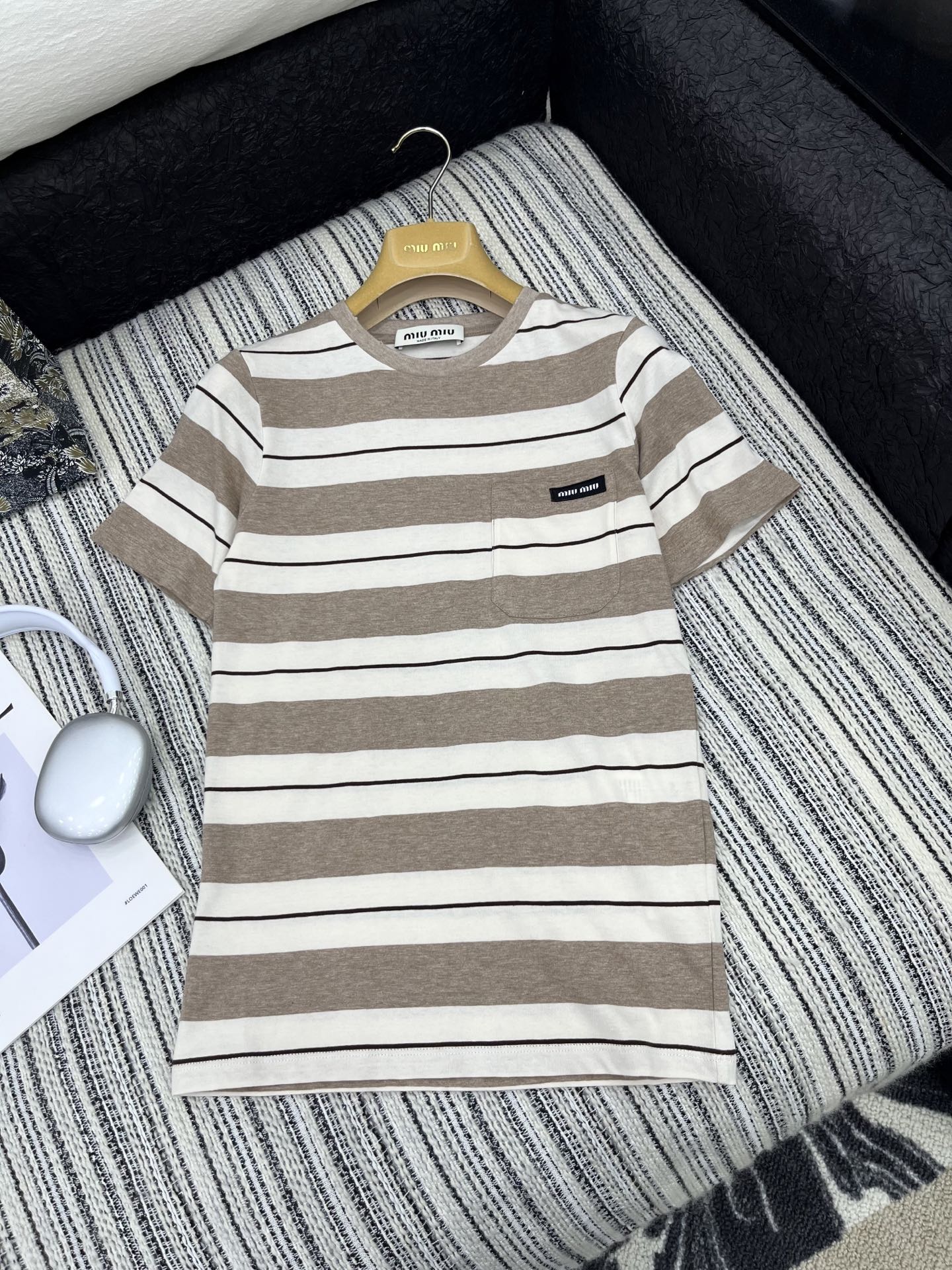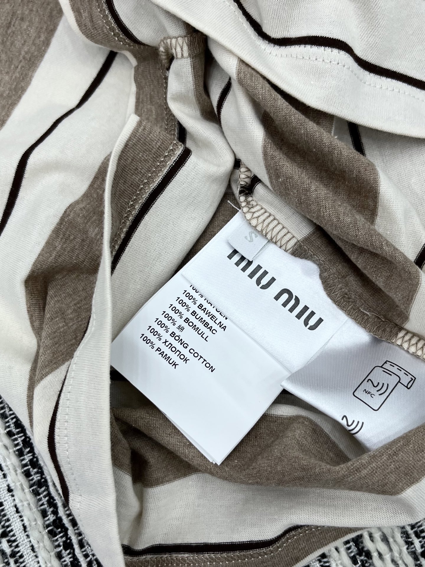 這款衣服是AAAAA 1:1 質量(非常棒). 使用了和原版一模一樣的材料. 商標部分也保持了和繆繆/Miu Miu一樣. 圖片拍攝是實物衣服拍攝, 您所收到的實物保證和我們圖片一模一樣.