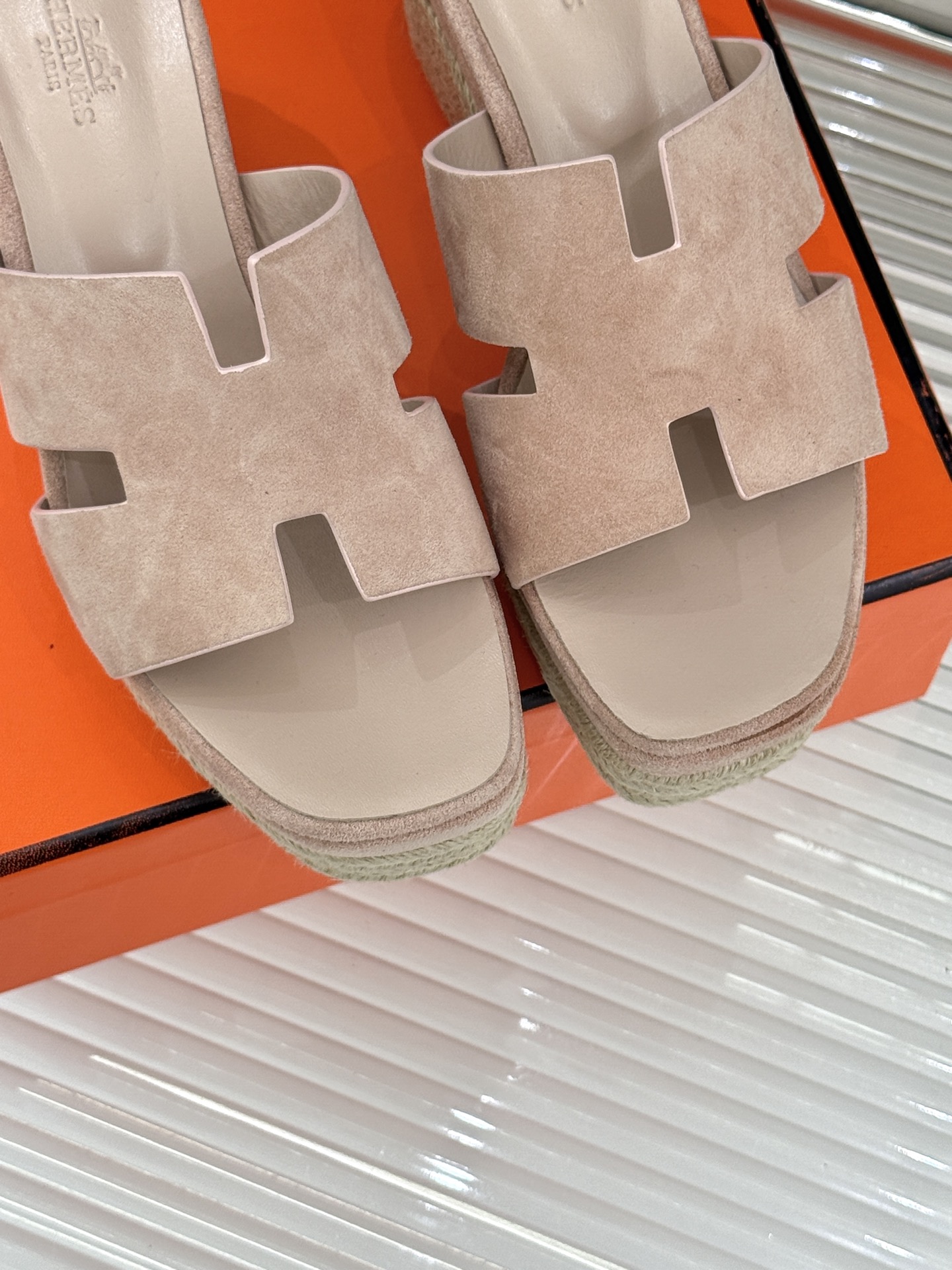 這款鞋子是AAAAA 1:1 質量(非常棒). 使用了和原版一模一樣的材料. 商標部分也保持了和愛馬仕/Hermes一樣. 圖片拍攝是實物鞋子拍攝, 您所收到的實物保證和我們圖片一模一樣.