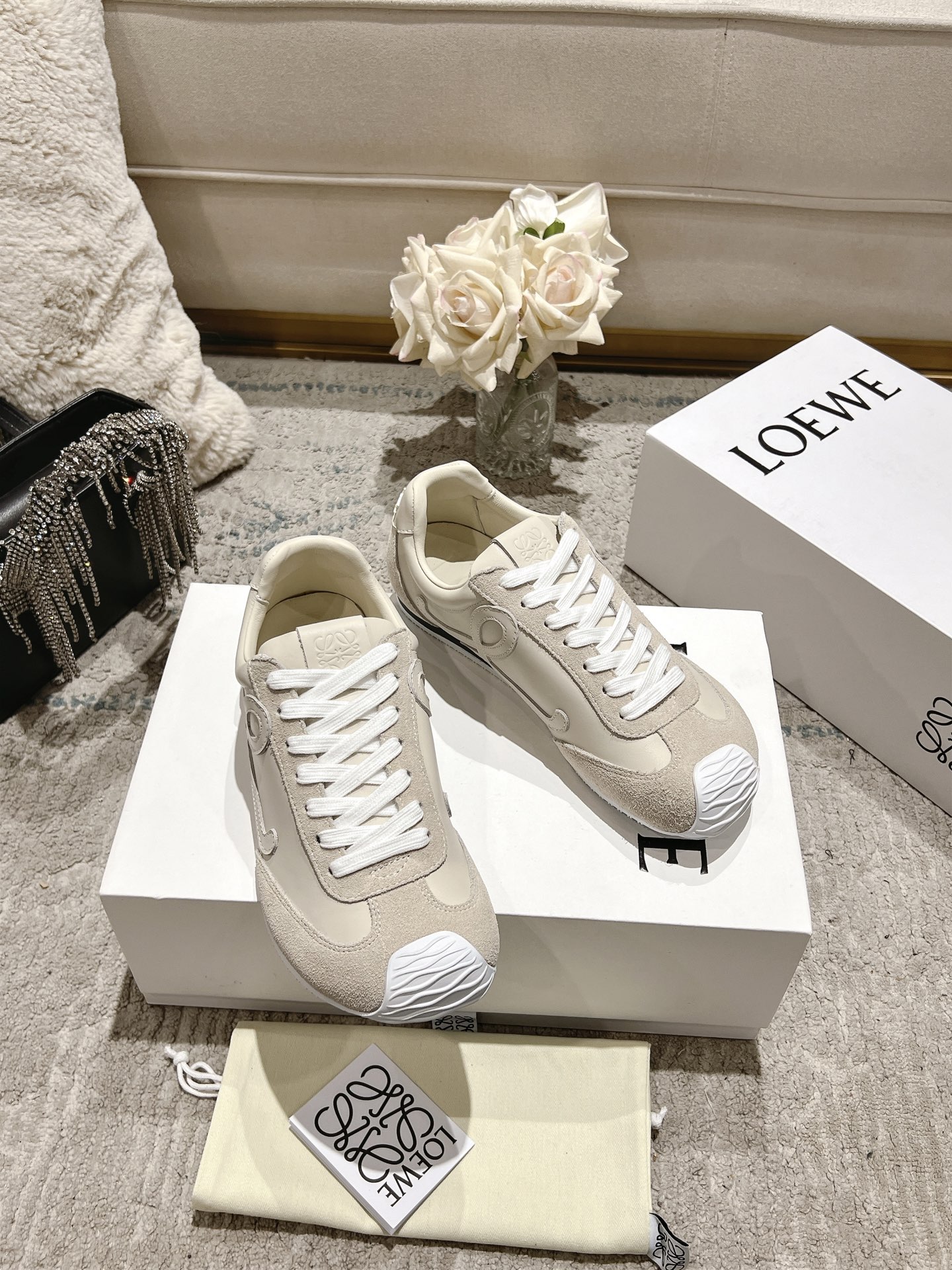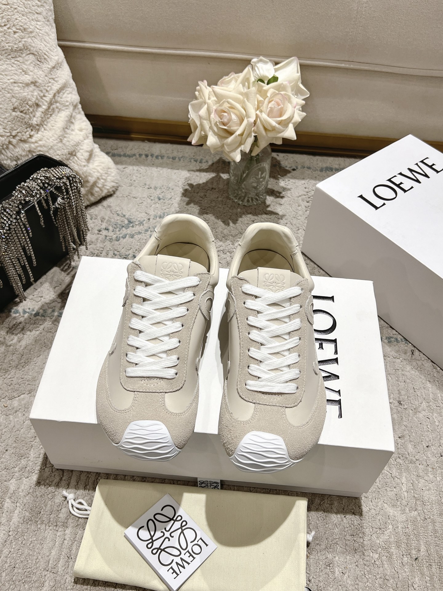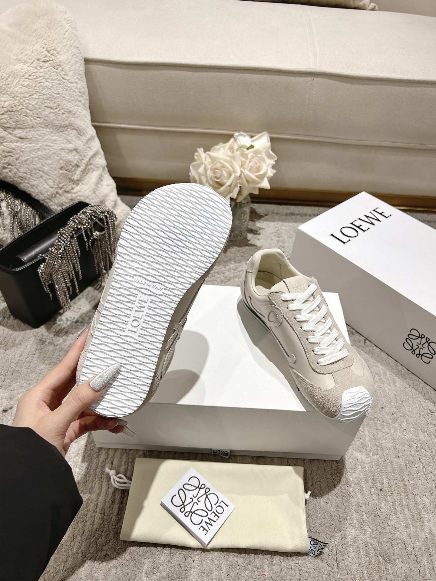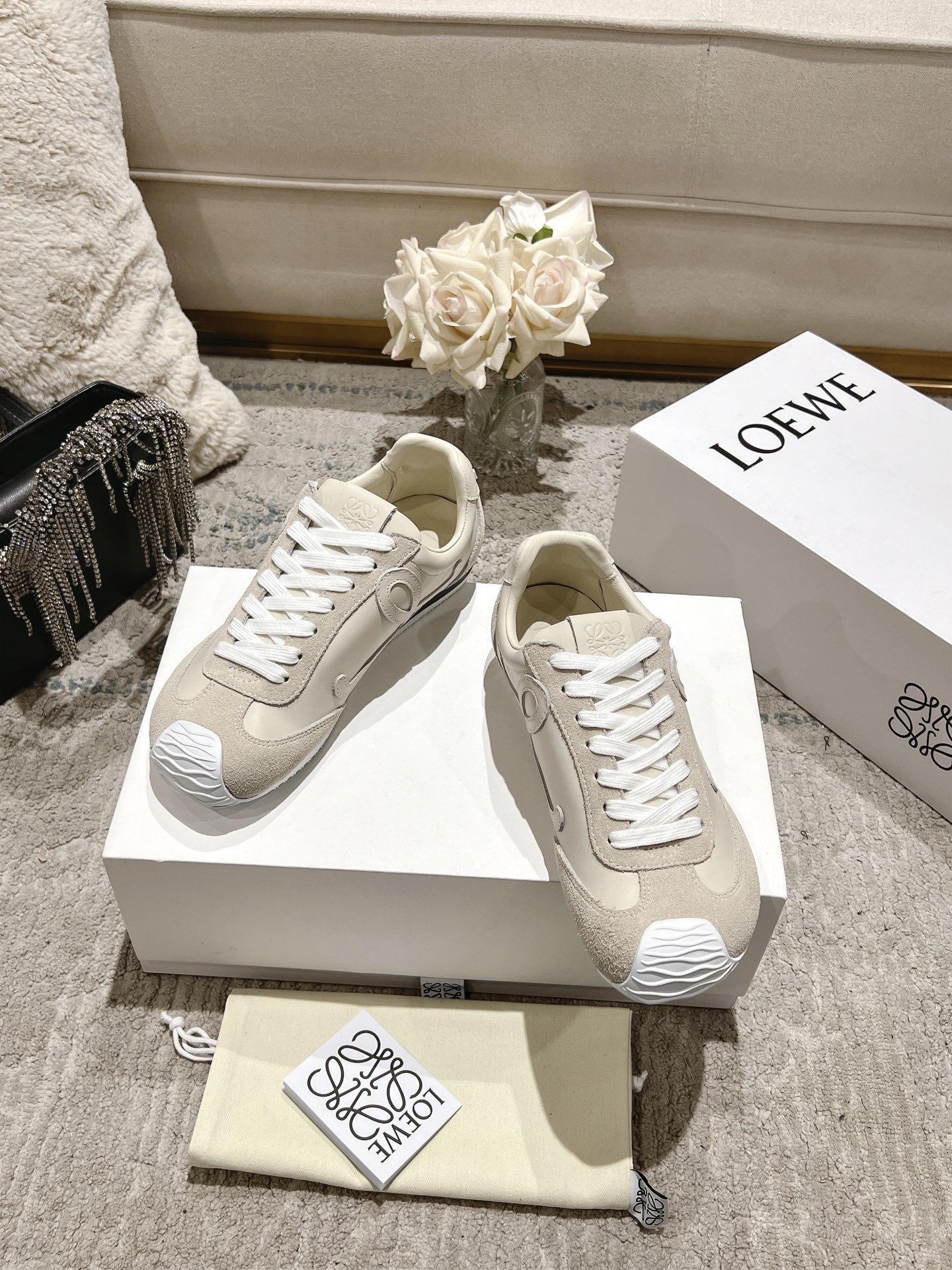 這款鞋子是AAAAA 1:1 質量(非常棒). 使用了和原版一模一樣的材料. 商標部分也保持了和Loewe一樣. 圖片拍攝是實物鞋子拍攝, 您所收到的實物保證和我們圖片一模一樣.