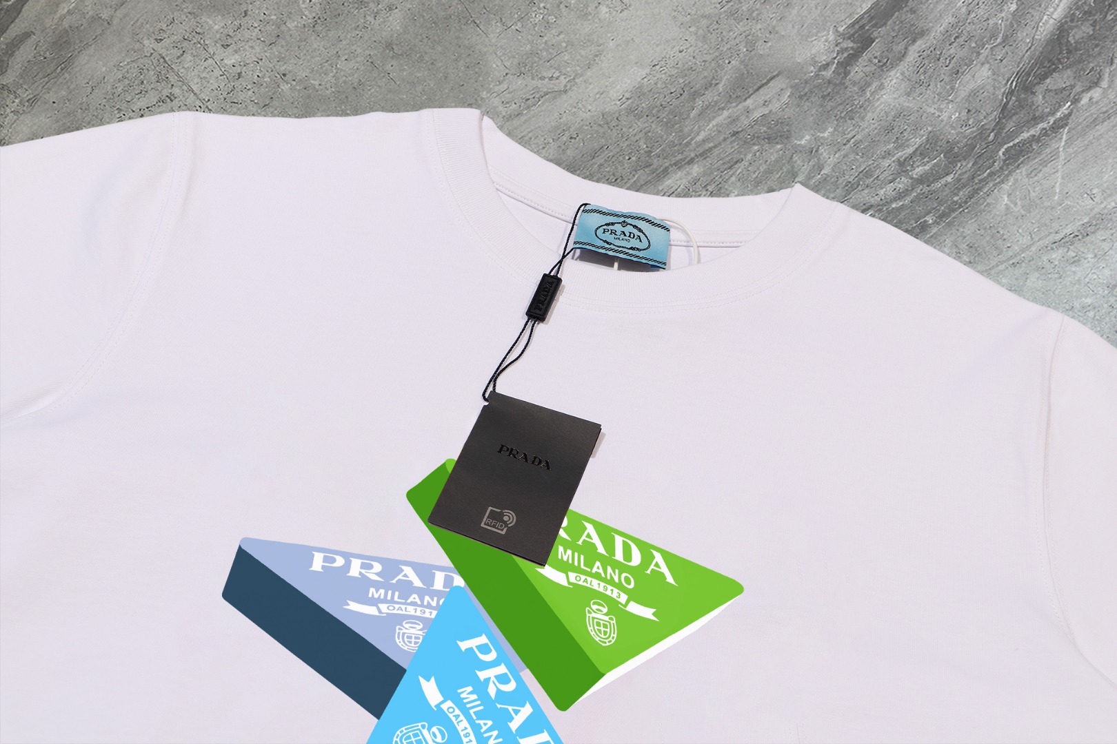 這款衣服是AAAAA 1:1 質量(非常棒). 使用了和原版一模一樣的材料. 商標部分也保持了和普拉達/Prada一樣. 圖片拍攝是實物衣服拍攝, 您所收到的實物保證和我們圖片一模一樣.