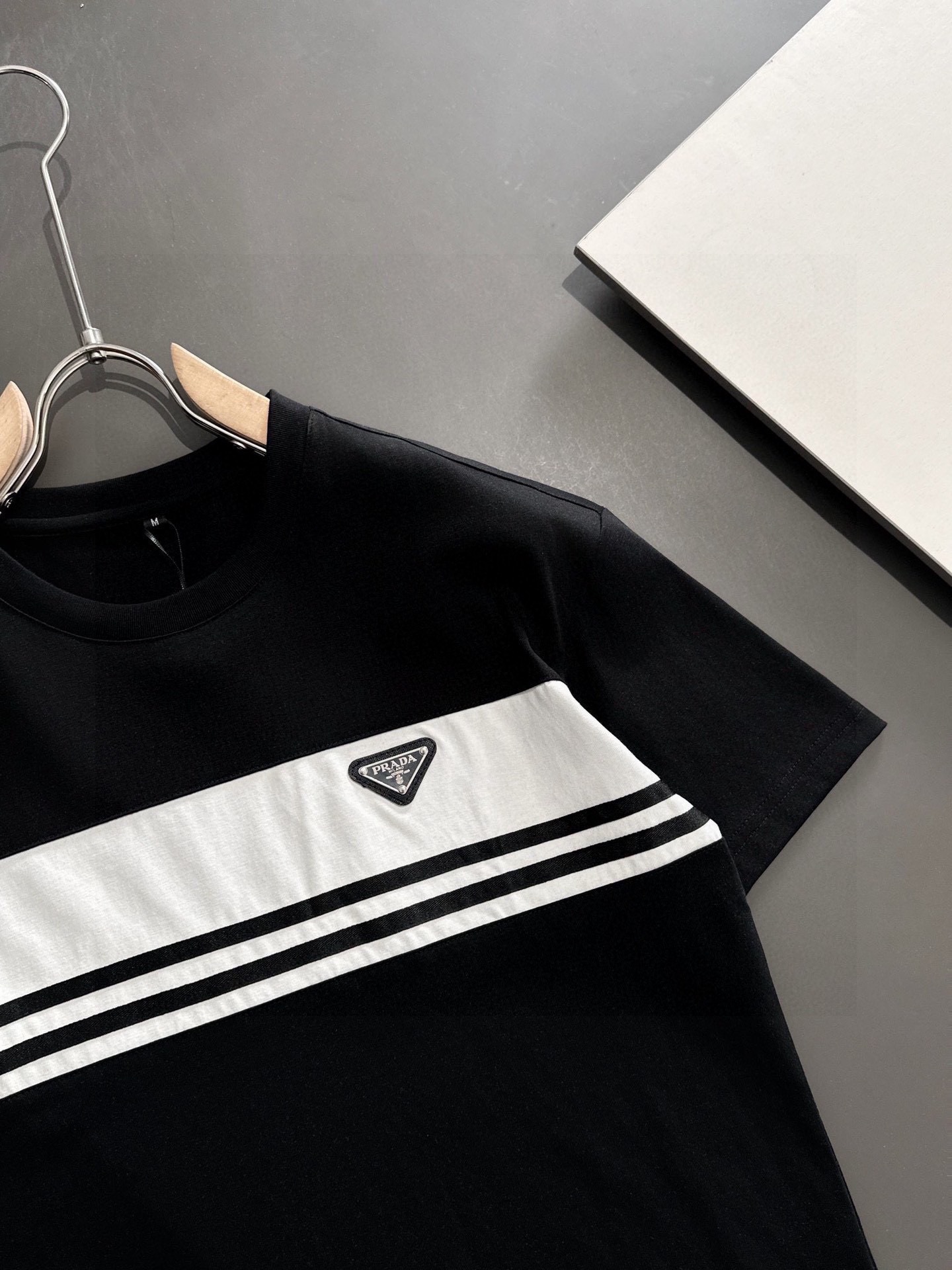 這款衣服是AAAAA 1:1 質量(非常棒). 使用了和原版一模一樣的材料. 商標部分也保持了和普拉達/Prada一樣. 圖片拍攝是實物衣服拍攝, 您所收到的實物保證和我們圖片一模一樣.