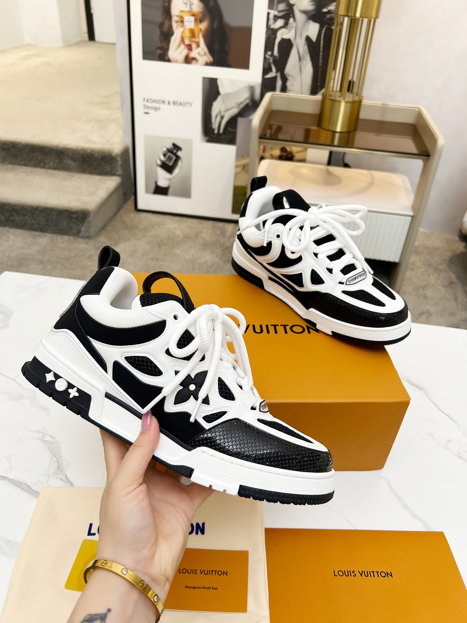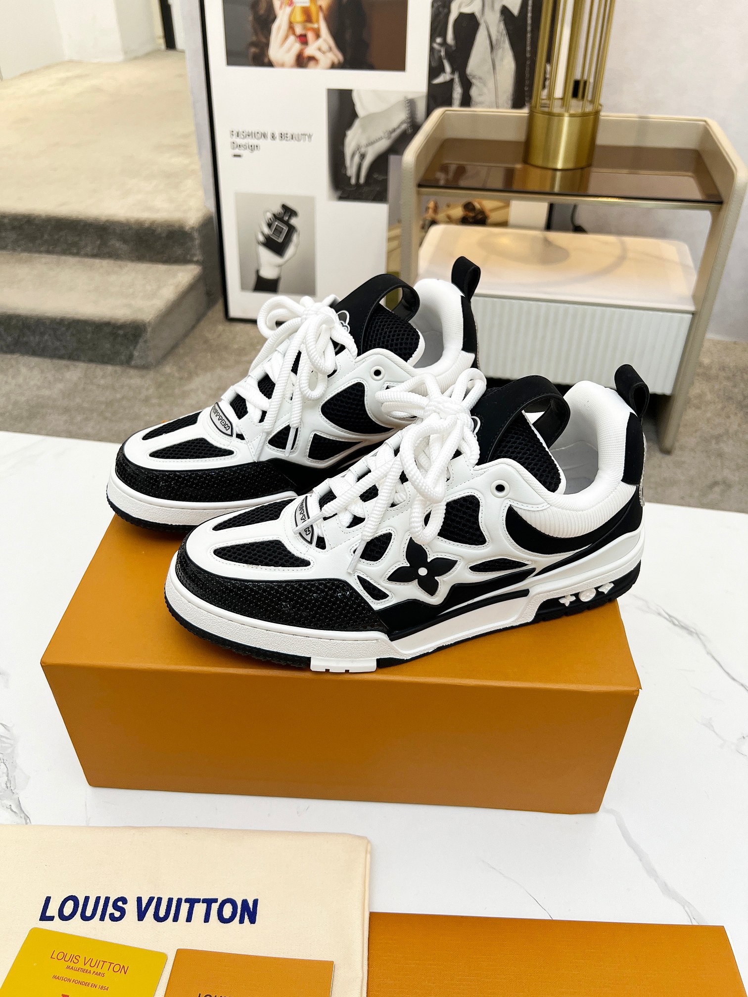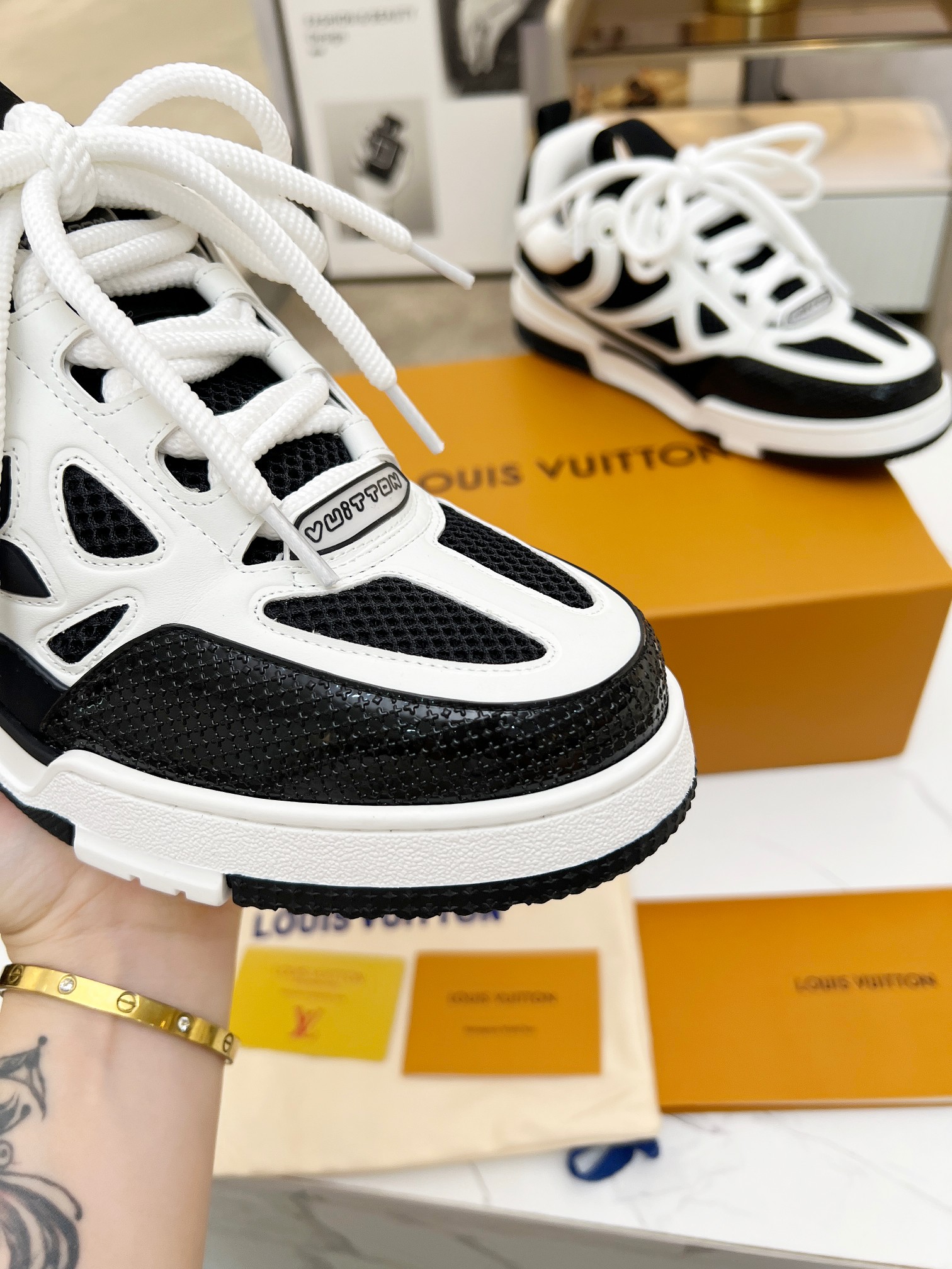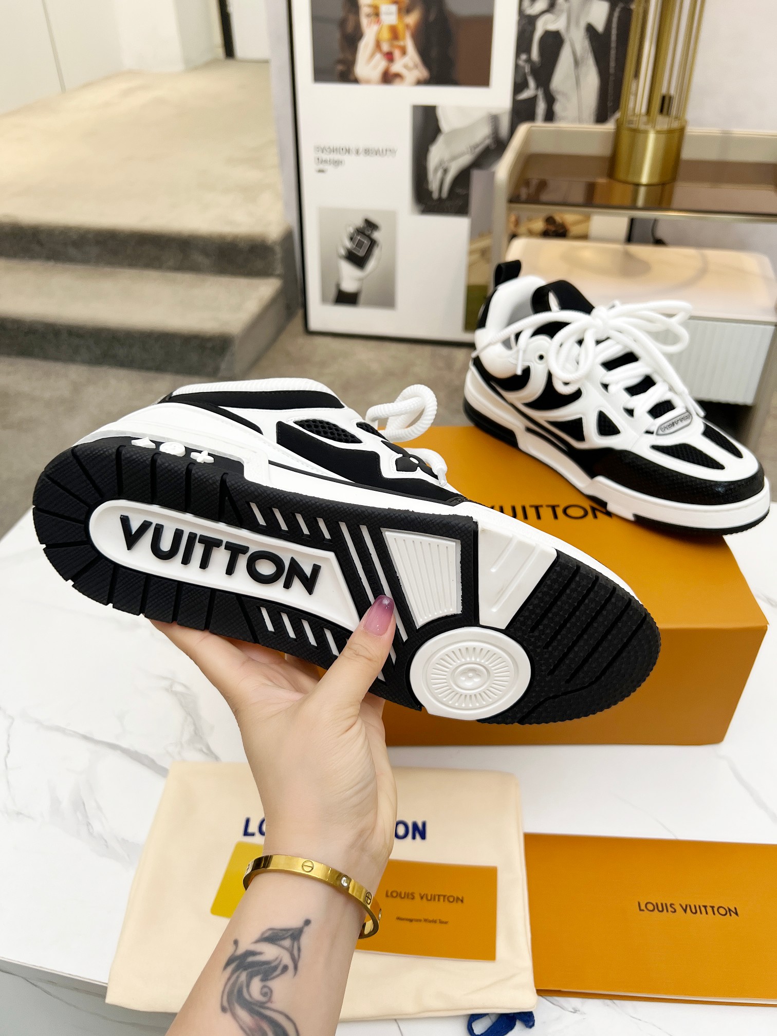 這款鞋子是AAAAA 1:1 質量(非常棒). 使用了和原版一模一樣的材料. 商標部分也保持了和路易威登/Louis Vuitton一樣. 圖片拍攝是實物鞋子拍攝, 您所收到的實物保證和我們圖片一模一樣.