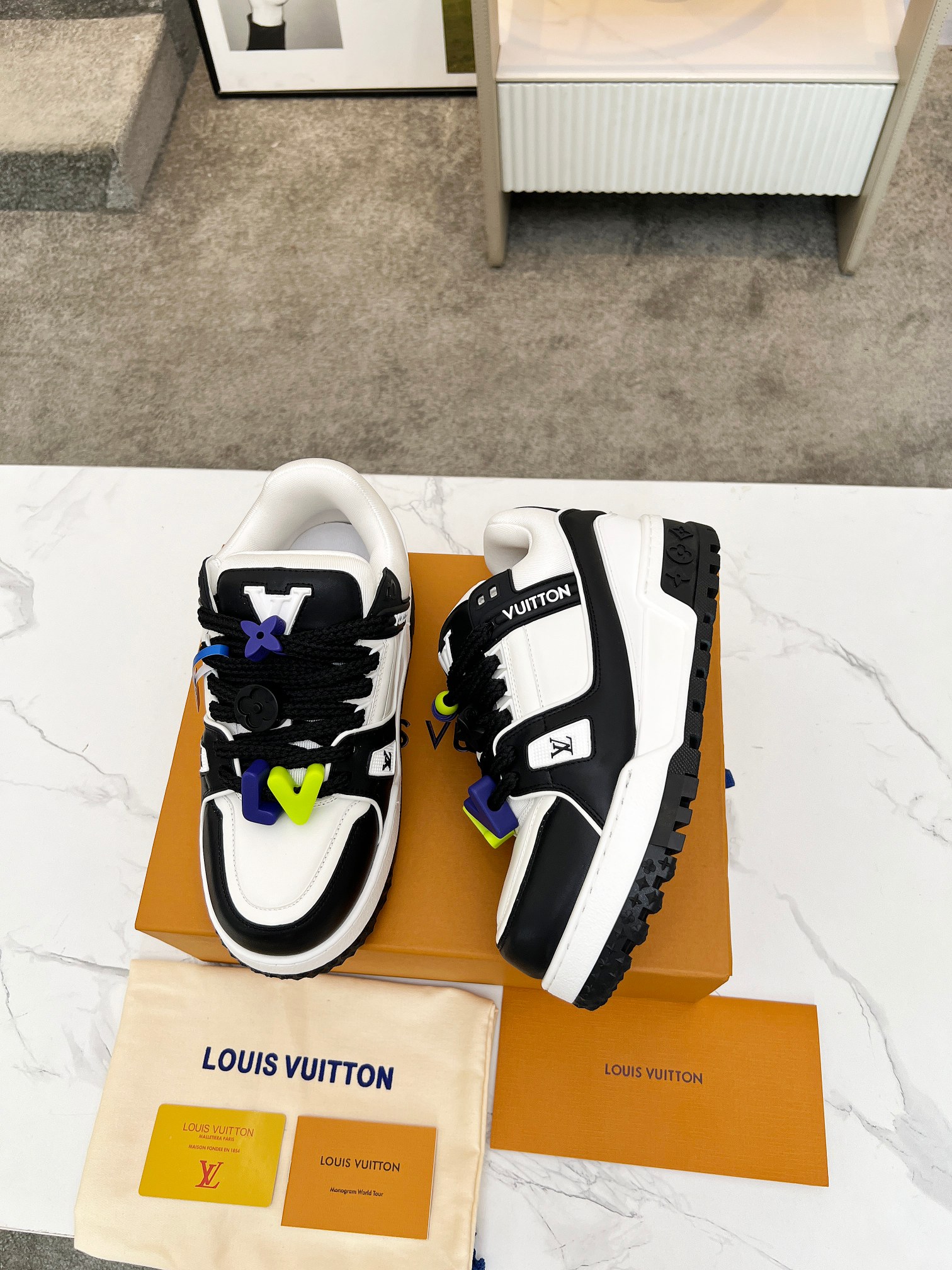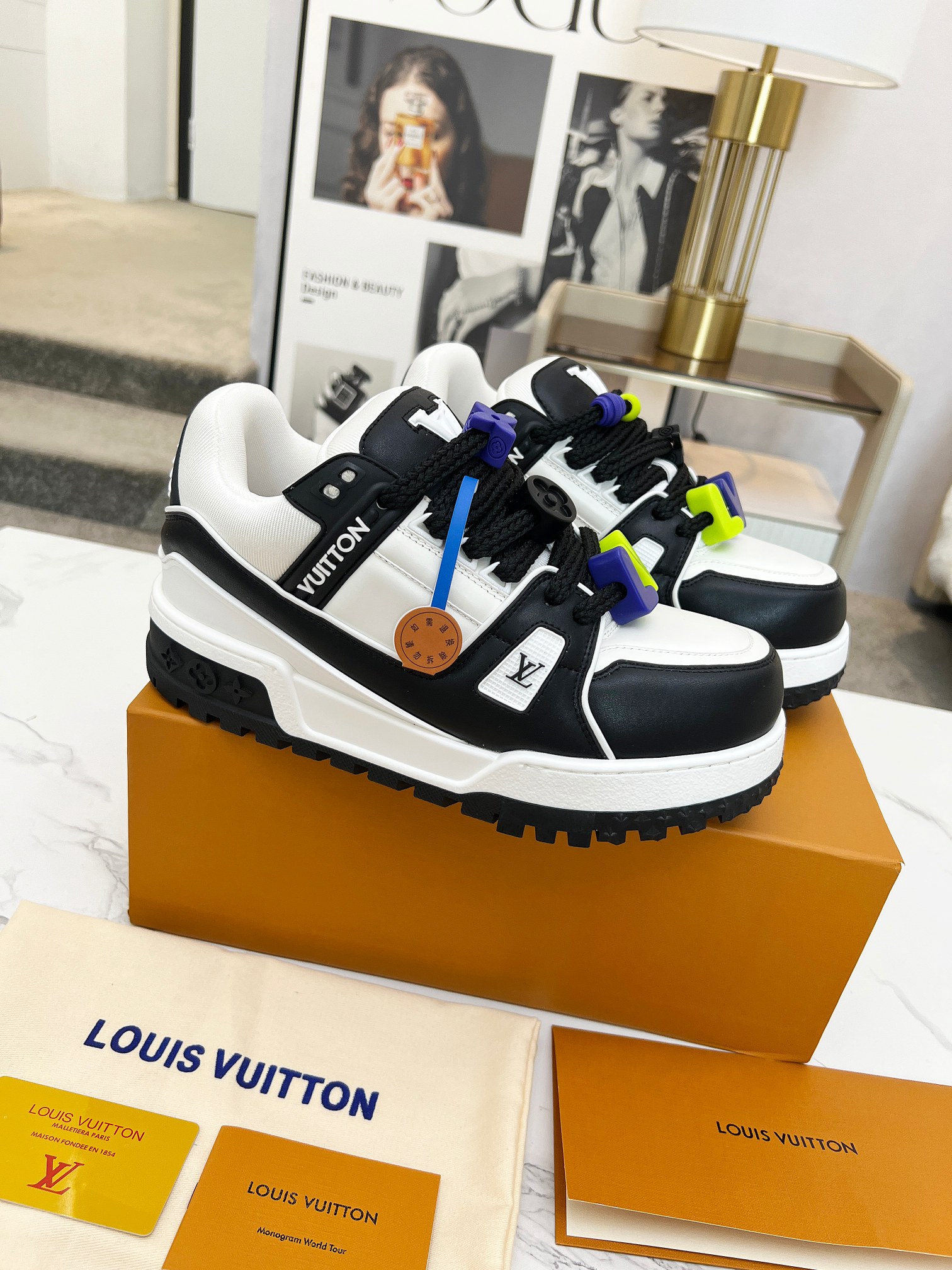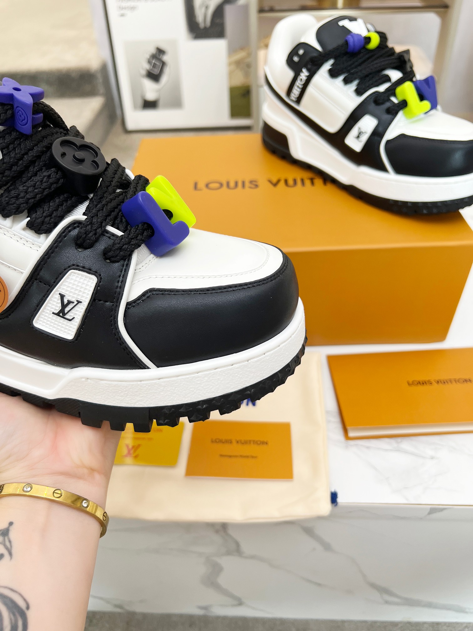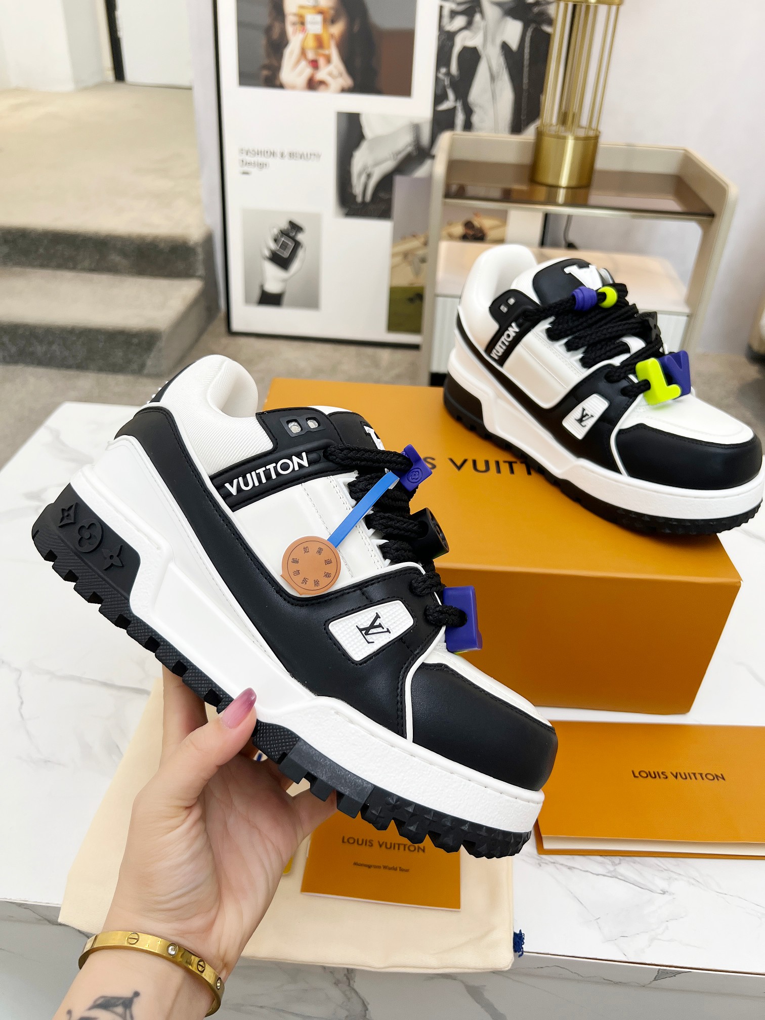 這款鞋子是AAAAA 1:1 質量(非常棒). 使用了和原版一模一樣的材料. 商標部分也保持了和路易威登/Louis Vuitton一樣. 圖片拍攝是實物鞋子拍攝, 您所收到的實物保證和我們圖片一模一樣.