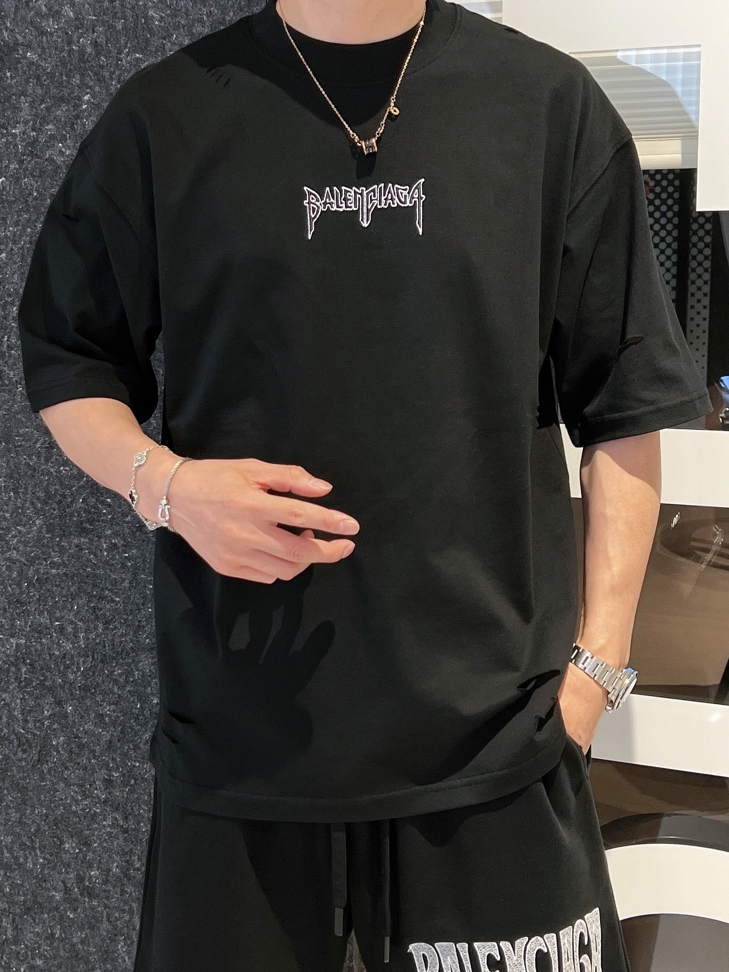 這款衣服是AAAAA 1:1 質量(非常棒). 使用了和原版一模一樣的材料. 商標部分也保持了和巴倫西亞/Balenciaga一樣. 圖片拍攝是實物衣服拍攝, 您所收到的實物保證和我們圖片一模一樣.