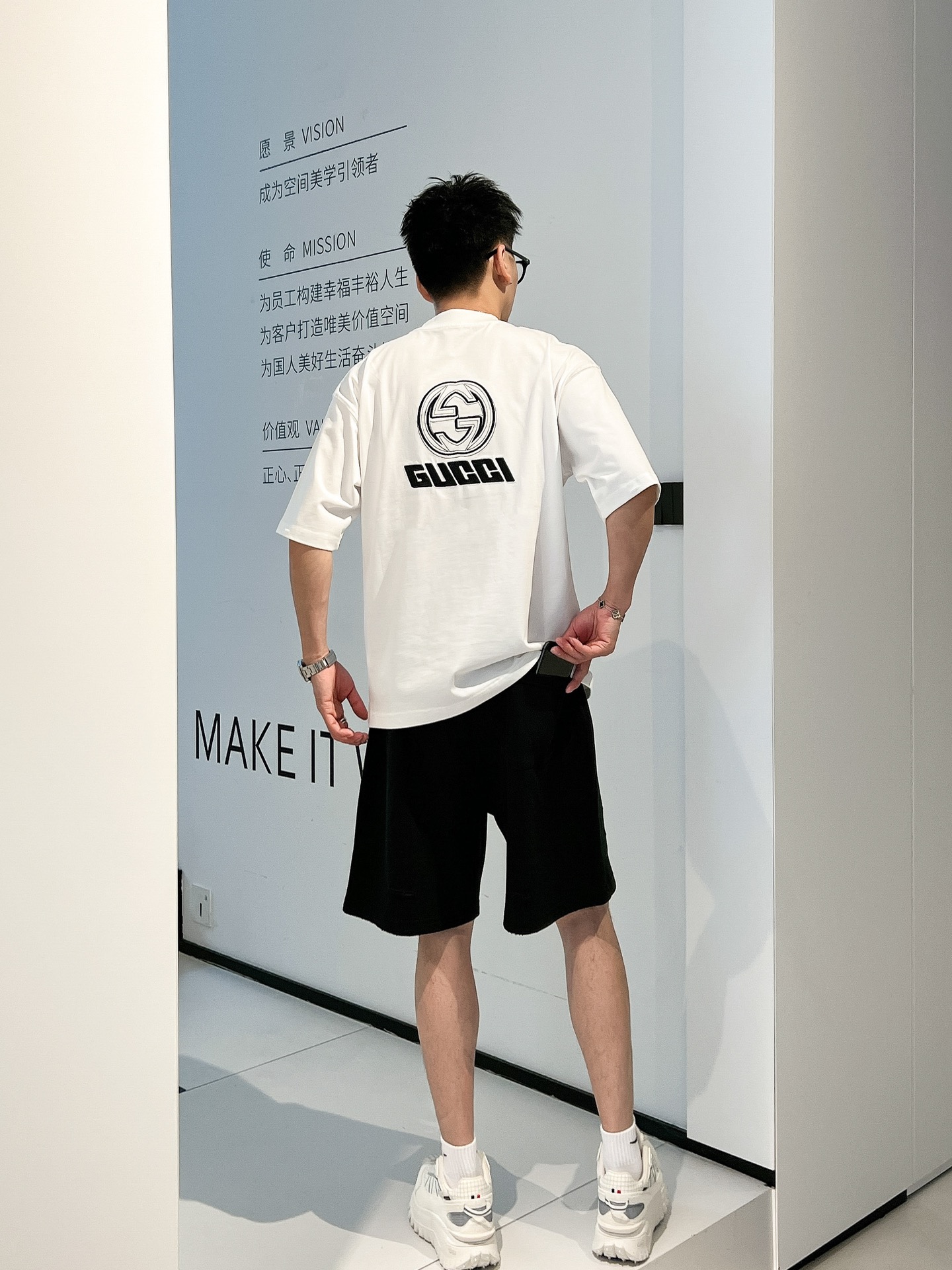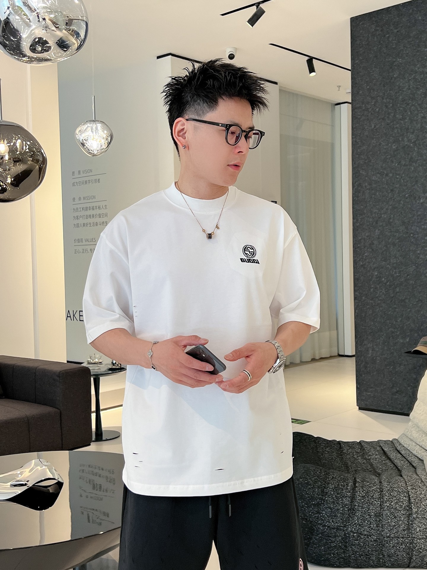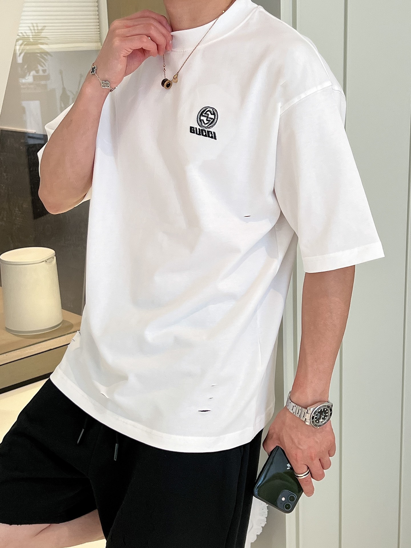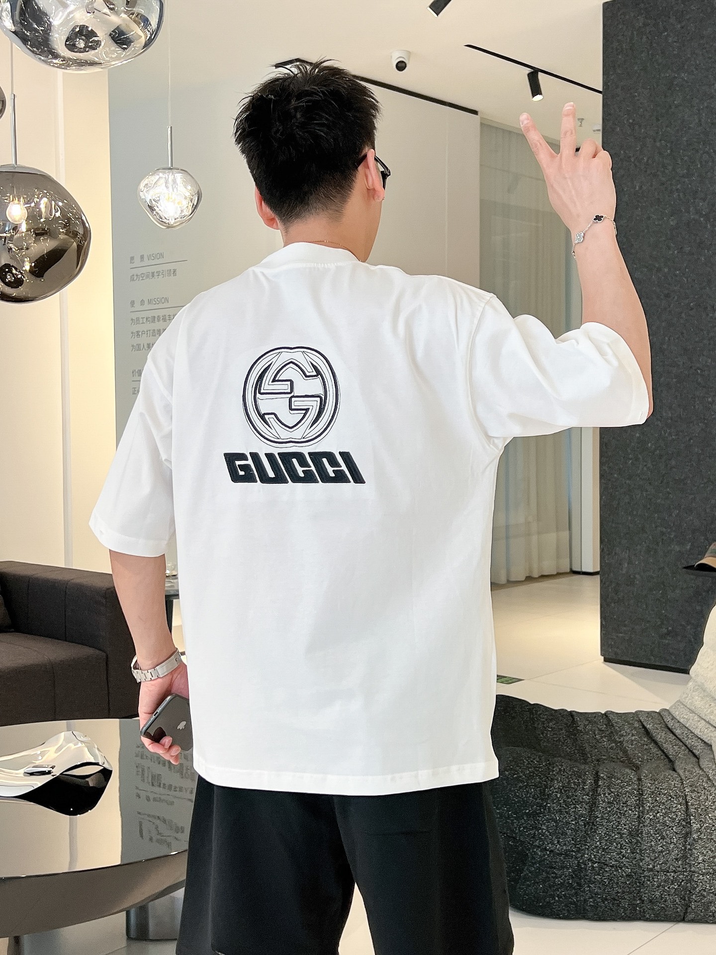 這款衣服是AAAAA 1:1 質量(非常棒). 使用了和原版一模一樣的材料. 商標部分也保持了和古奇/Gucci一樣. 圖片拍攝是實物衣服拍攝, 您所收到的實物保證和我們圖片一模一樣.