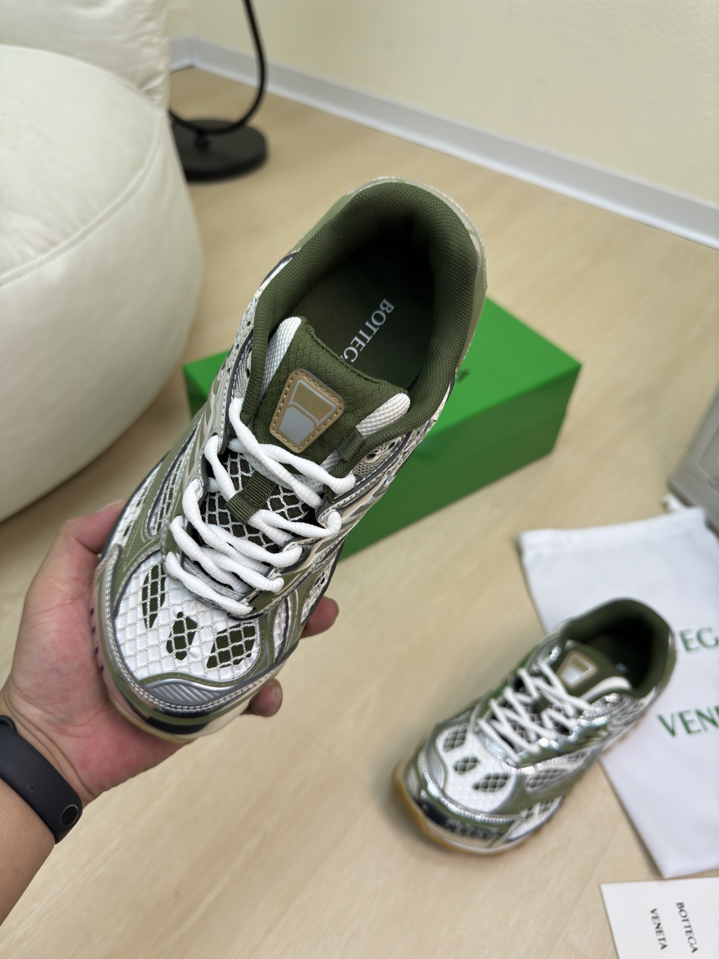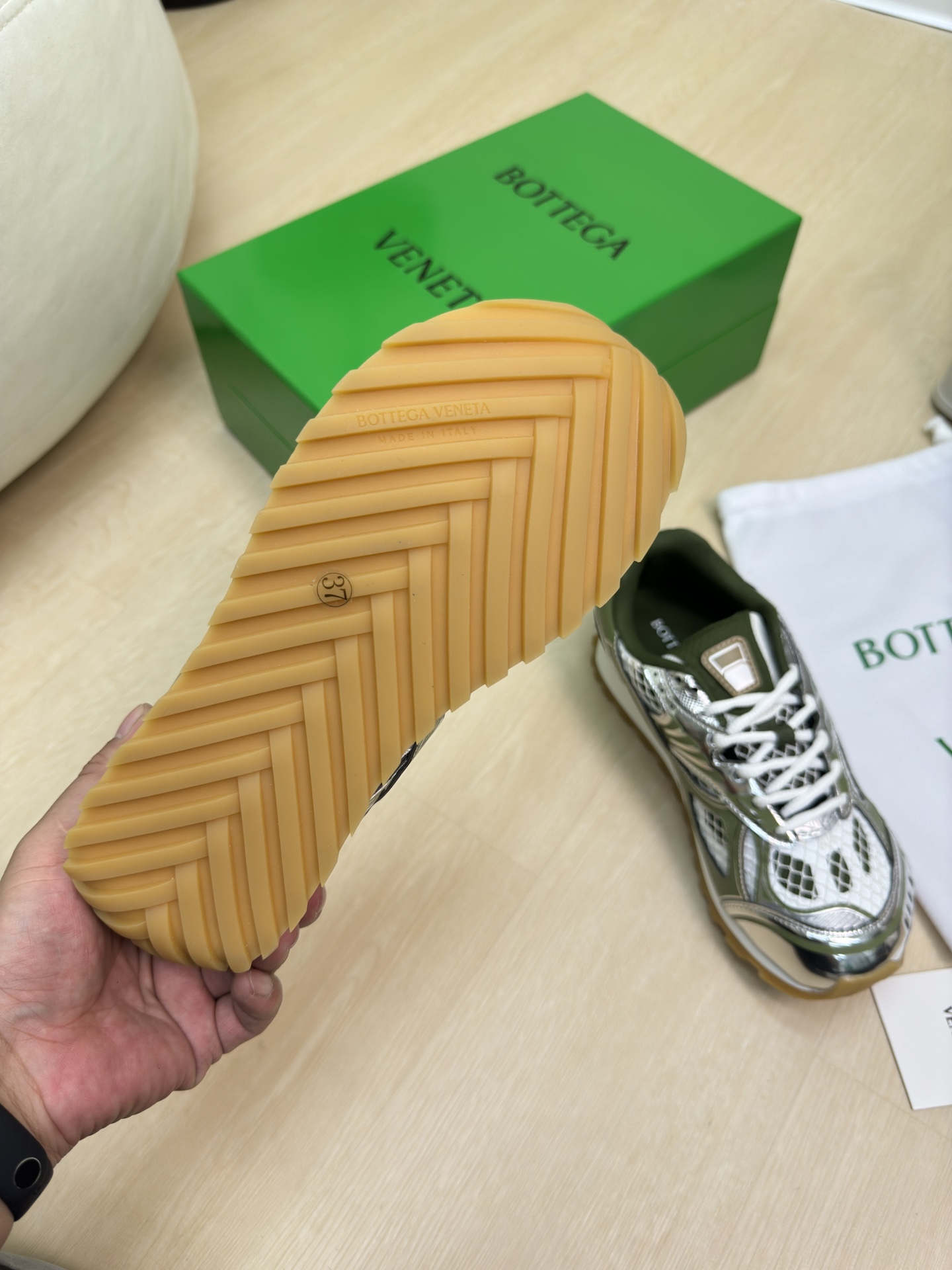 這款鞋子是AAAAA 1:1 質量(非常棒). 使用了和原版一模一樣的材料. 商標部分也保持了和葆蝶家/Bottega Veneta一樣. 圖片拍攝是實物鞋子拍攝, 您所收到的實物保證和我們圖片一模一樣.