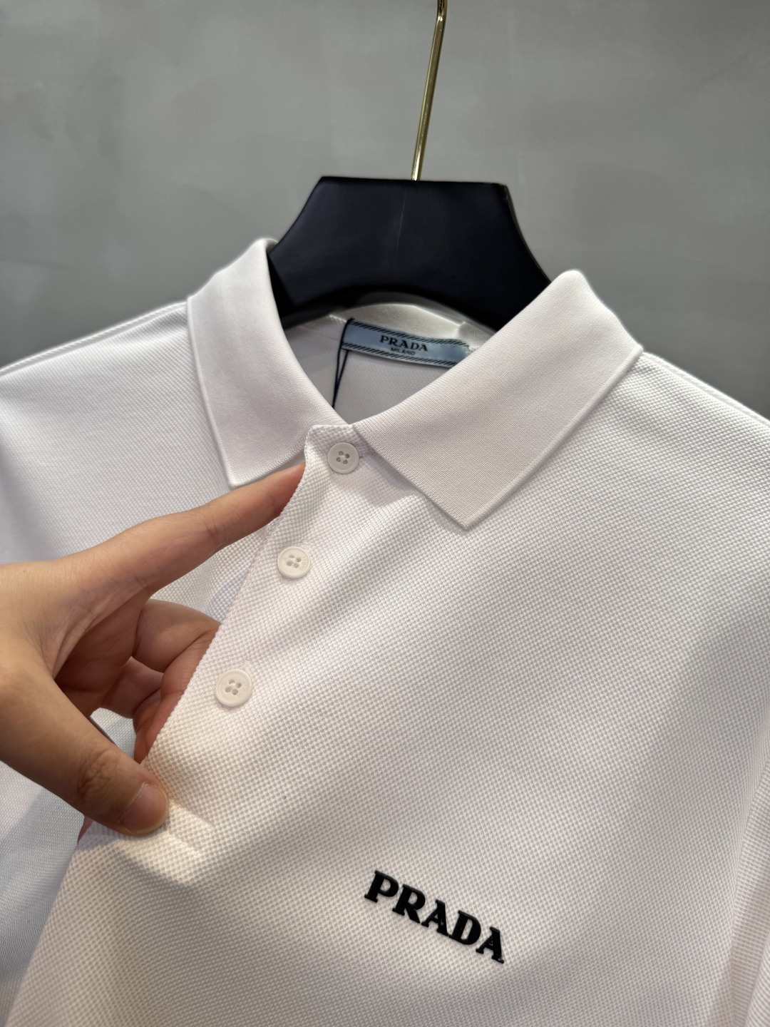 這款衣服是AAAAA 1:1 質量(非常棒). 使用了和原版一模一樣的材料. 商標部分也保持了和普拉達/Prada一樣. 圖片拍攝是實物衣服拍攝, 您所收到的實物保證和我們圖片一模一樣.
