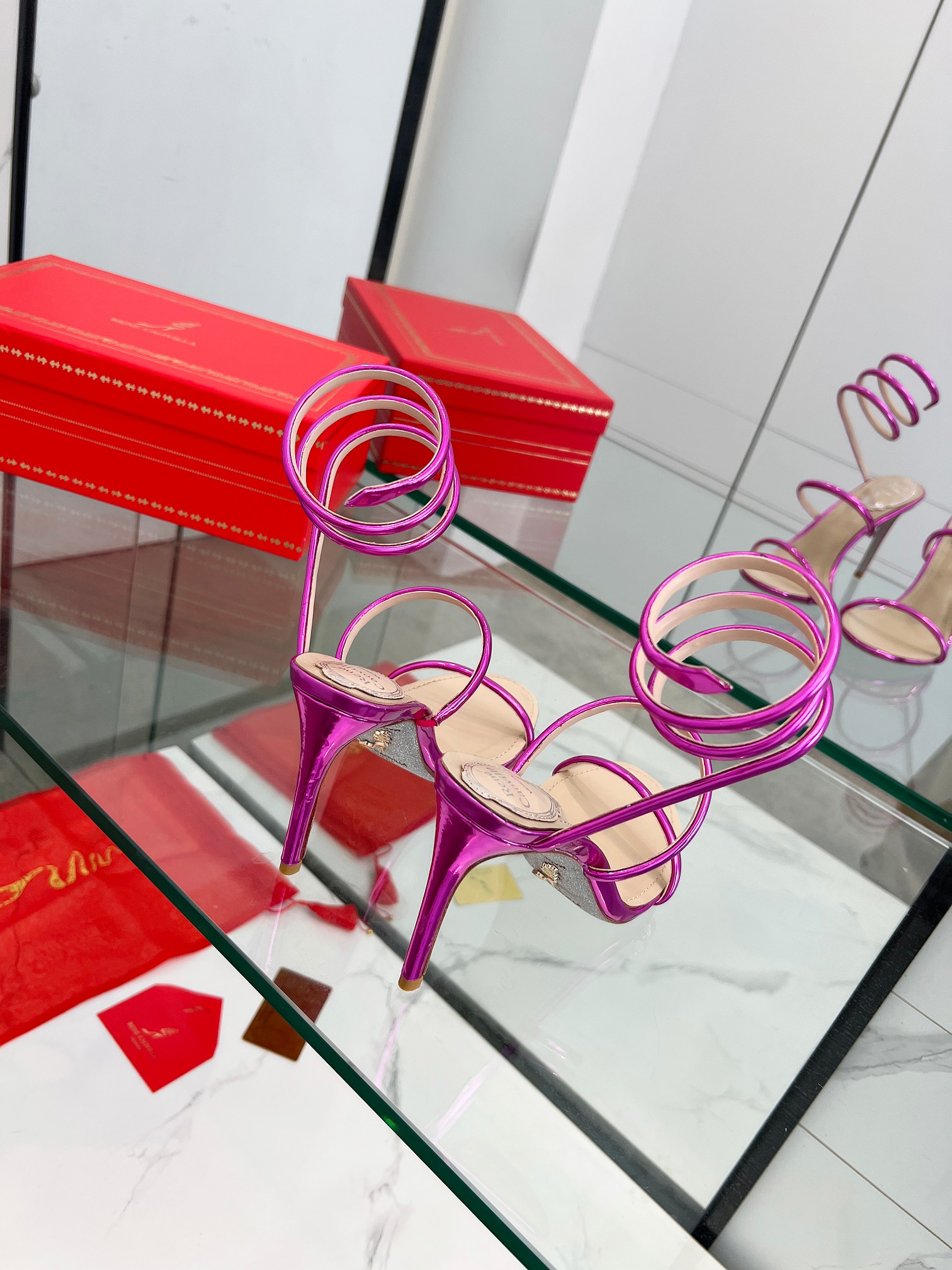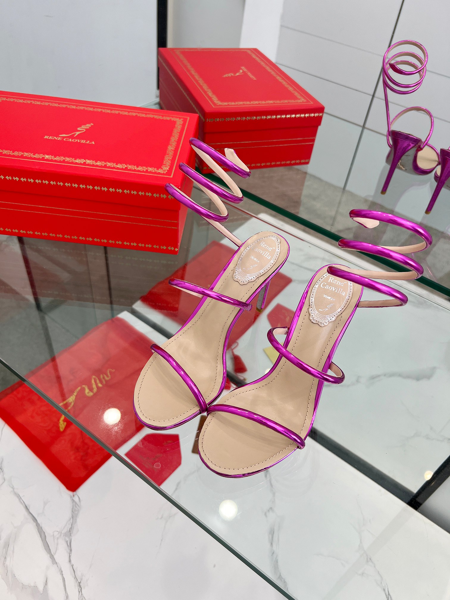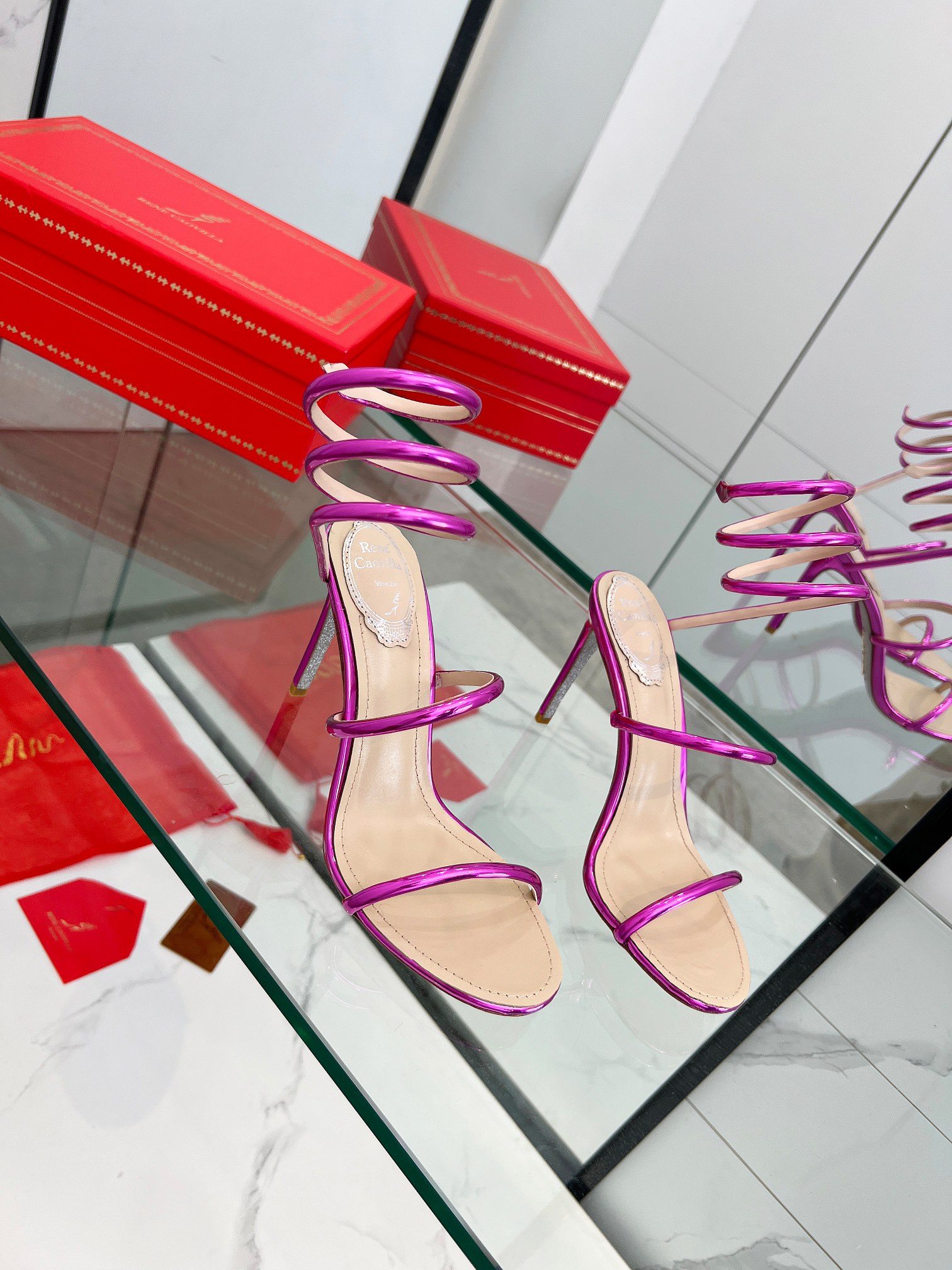 這款鞋子是AAAAA 1:1 質量(非常棒). 使用了和原版一模一樣的材料. 商標部分也保持了和Rene Caovilla一樣. 圖片拍攝是實物鞋子拍攝, 您所收到的實物保證和我們圖片一模一樣.