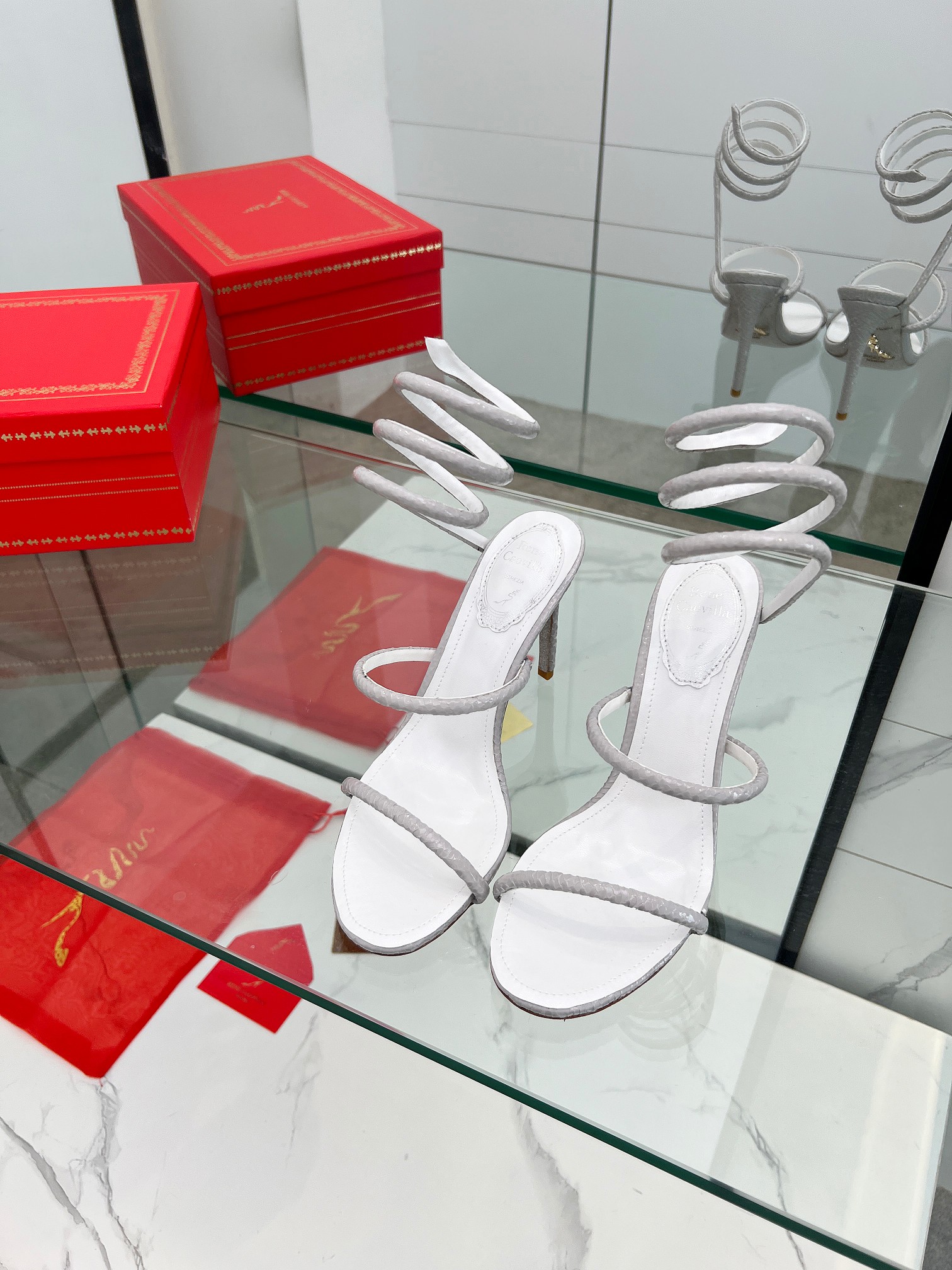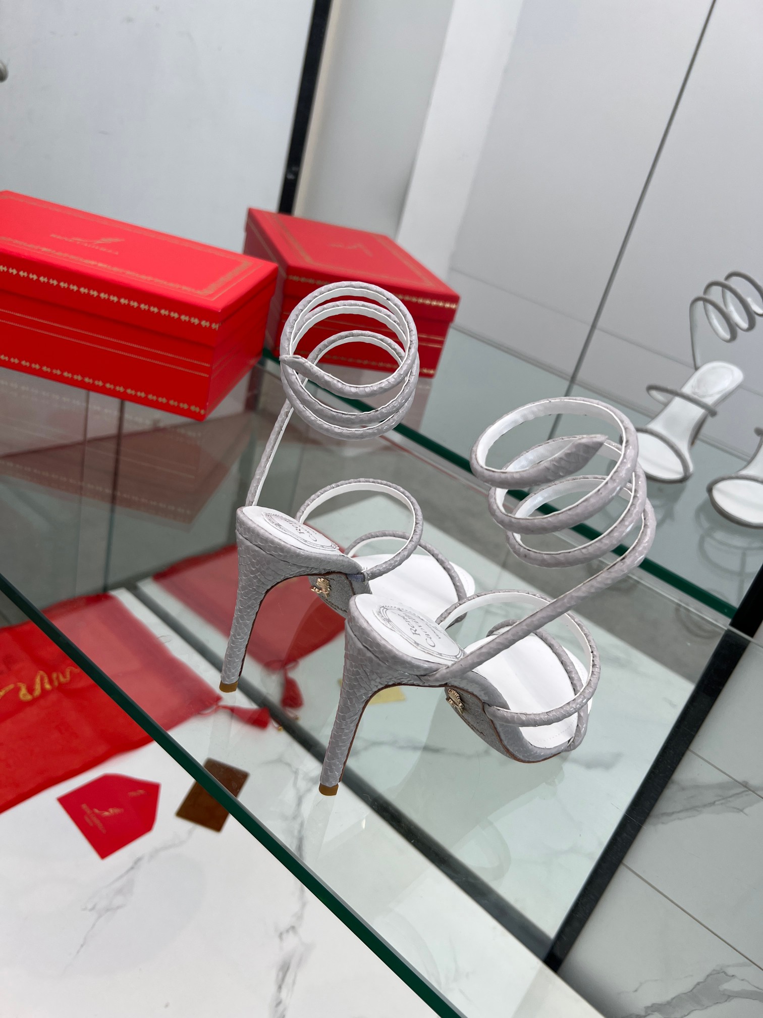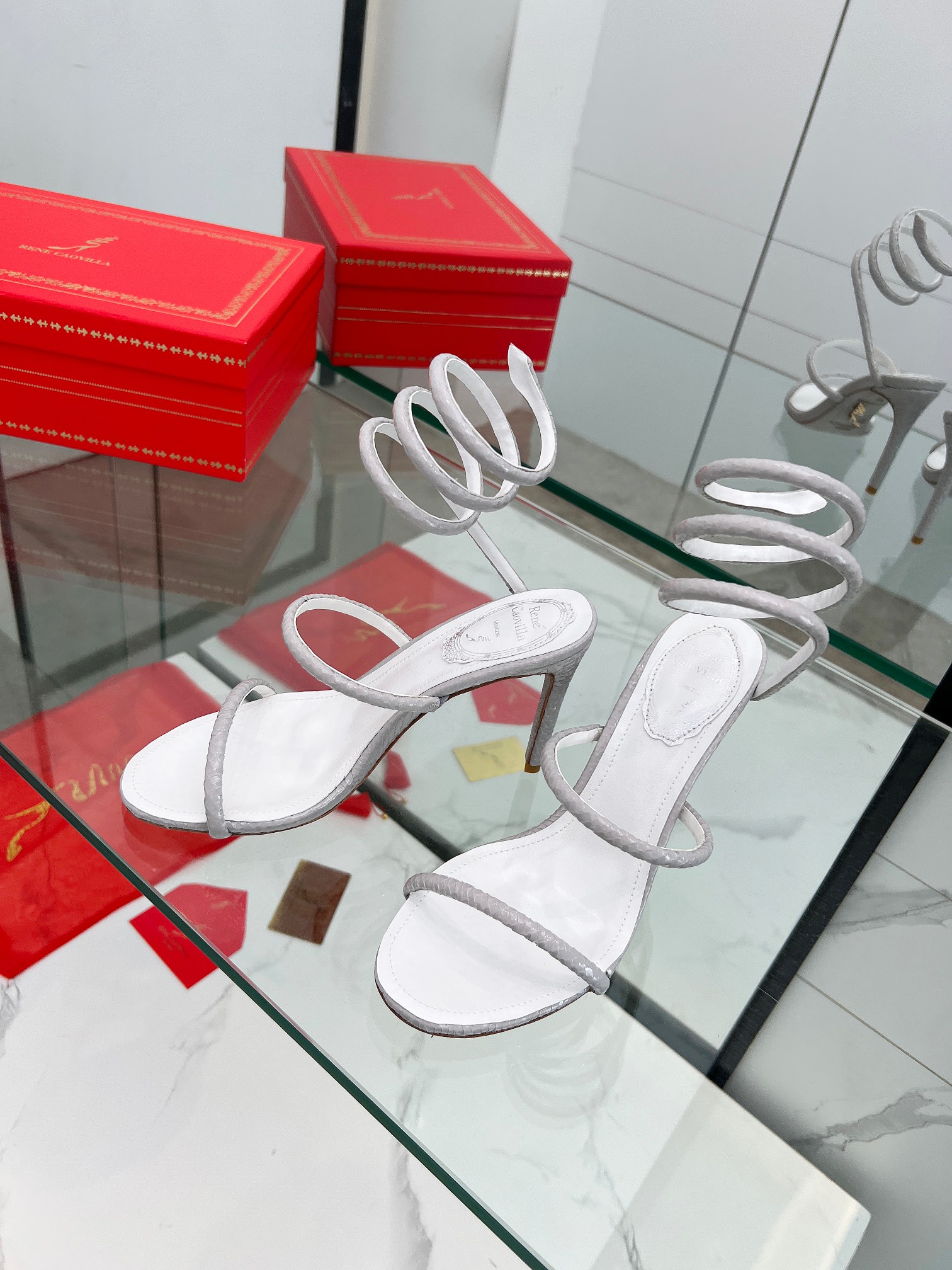 這款鞋子是AAAAA 1:1 質量(非常棒). 使用了和原版一模一樣的材料. 商標部分也保持了和Rene Caovilla一樣. 圖片拍攝是實物鞋子拍攝, 您所收到的實物保證和我們圖片一模一樣.