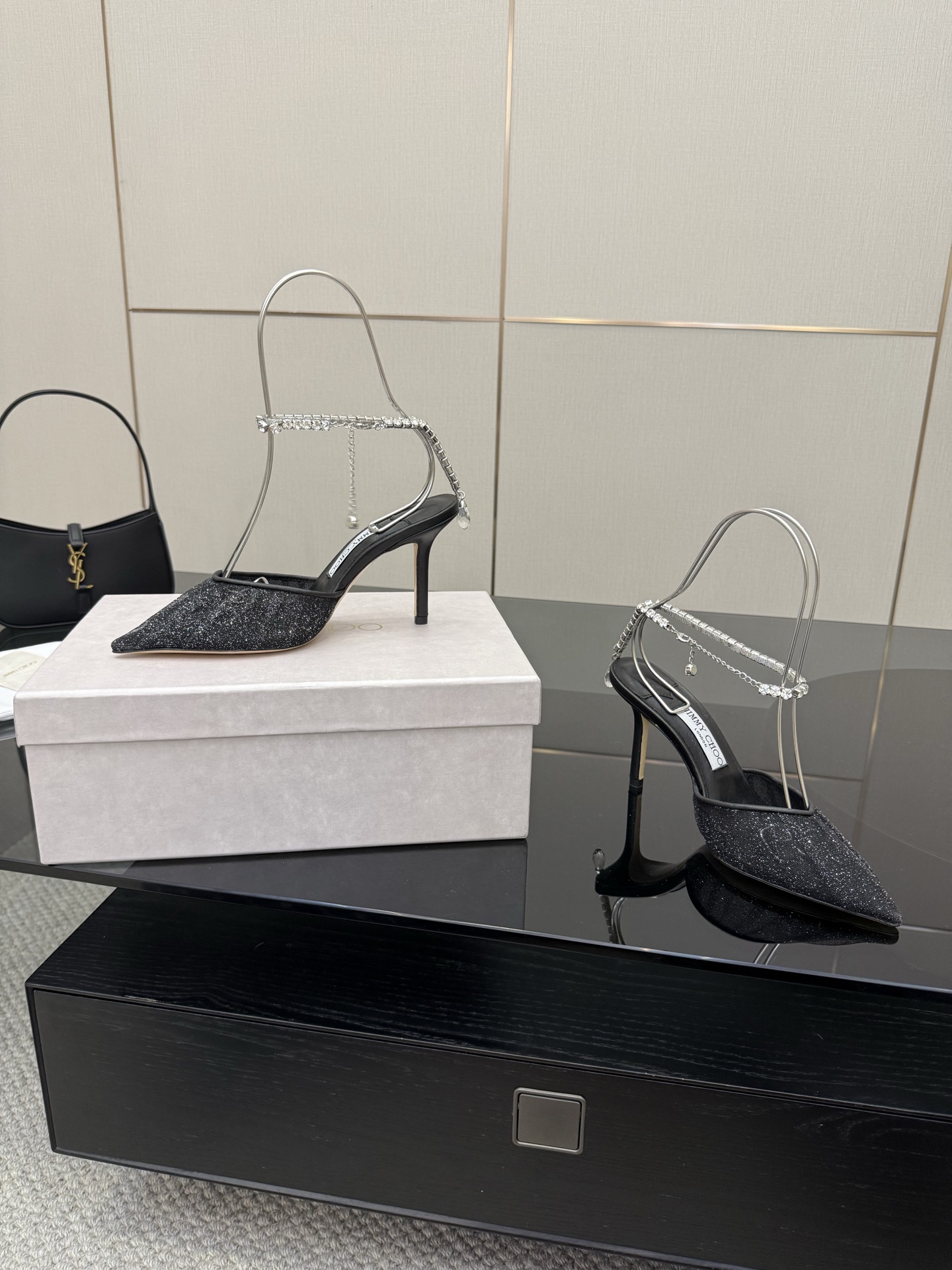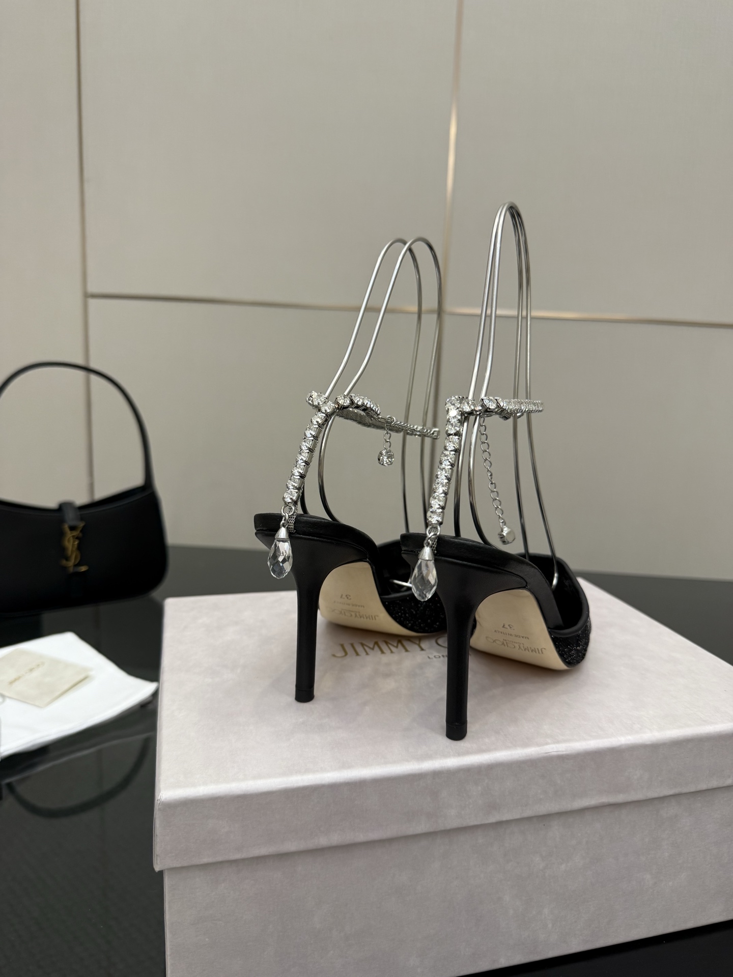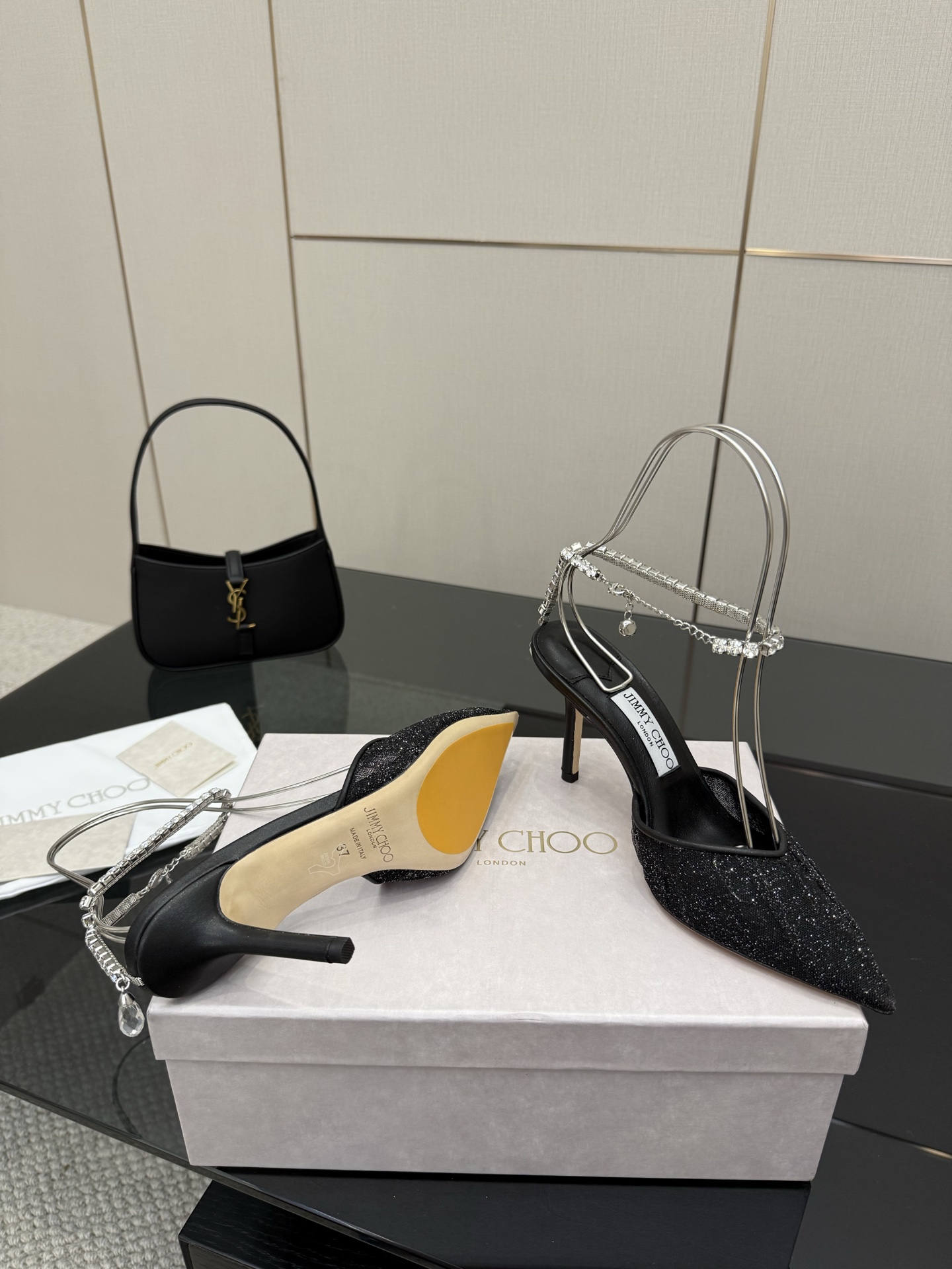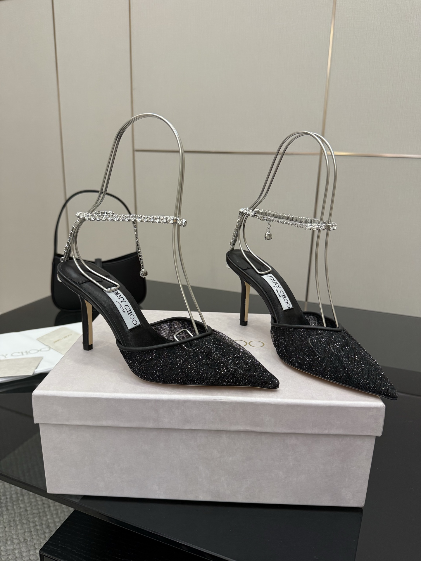 這款鞋子是AAAAA 1:1 質量(非常棒). 使用了和原版一模一樣的材料. 商標部分也保持了和吉米喬/JIMMY CHOO一樣. 圖片拍攝是實物鞋子拍攝, 您所收到的實物保證和我們圖片一模一樣.