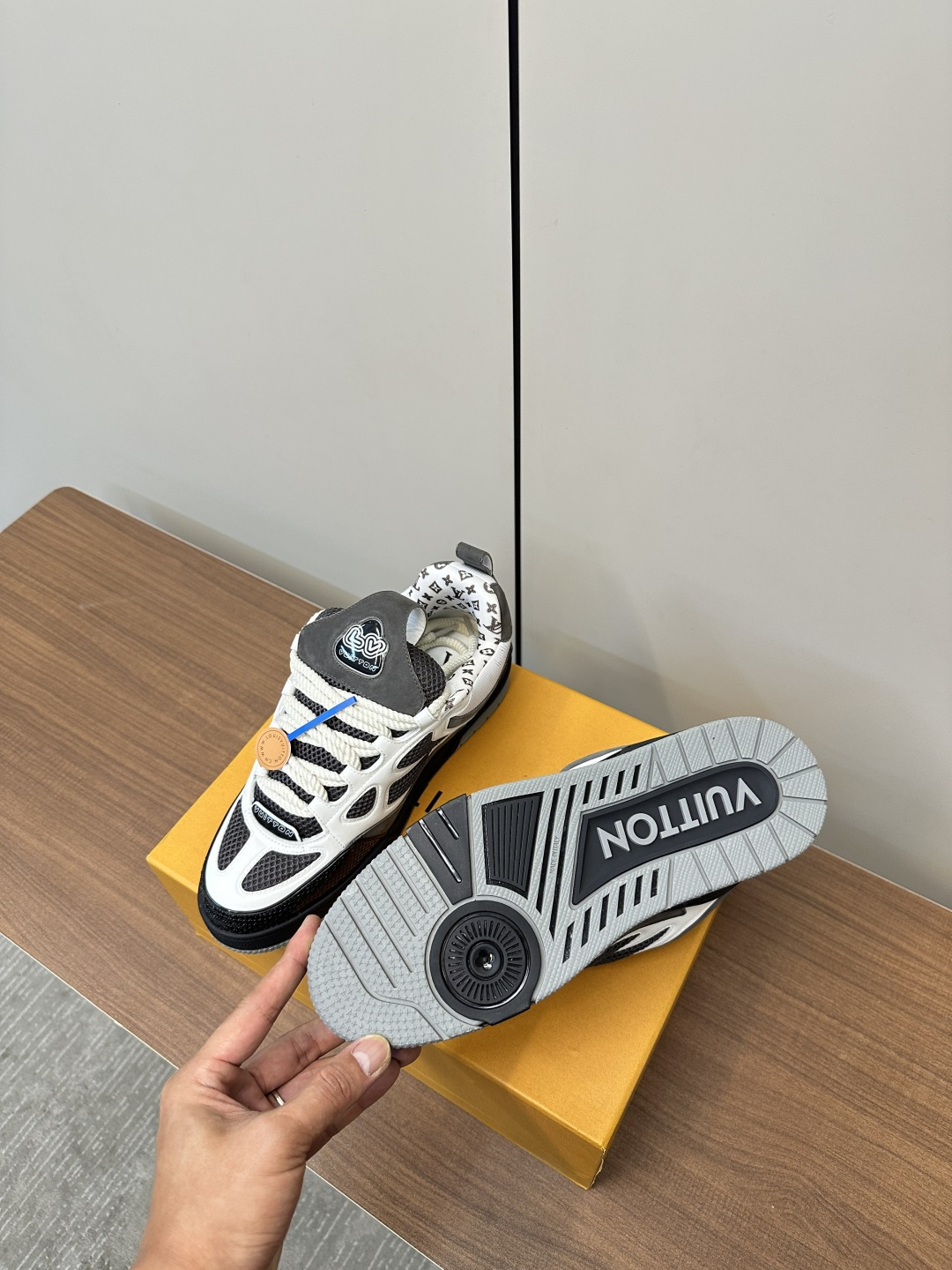 這款鞋子是AAAAA 1:1 質量(非常棒). 使用了和原版一模一樣的材料. 商標部分也保持了和路易威登/Louis Vuitton一樣. 圖片拍攝是實物鞋子拍攝, 您所收到的實物保證和我們圖片一模一樣.