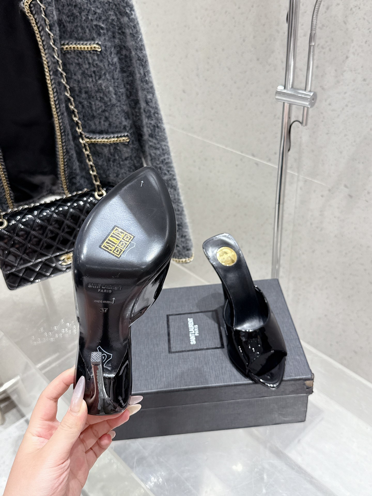 這款鞋子是AAAAA 1:1 質量(非常棒). 使用了和原版一模一樣的材料. 商標部分也保持了和聖羅蘭/Saint Laurent一樣. 圖片拍攝是實物鞋子拍攝, 您所收到的實物保證和我們圖片一模一樣.