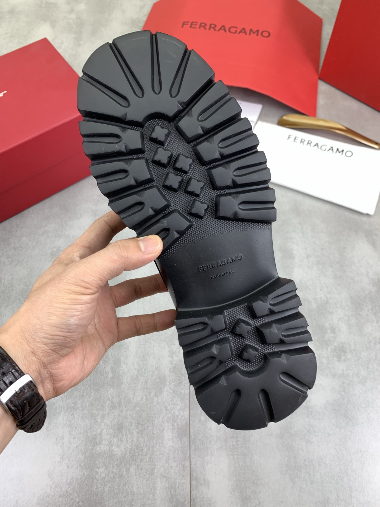 這款鞋子是AAAAA 1:1 質量(非常棒). 使用了和原版一模一樣的材料. 商標部分也保持了和菲拉格慕/Salvatore Ferragamo一樣. 圖片拍攝是實物鞋子拍攝, 您所收到的實物保證和我們圖片一模一樣.