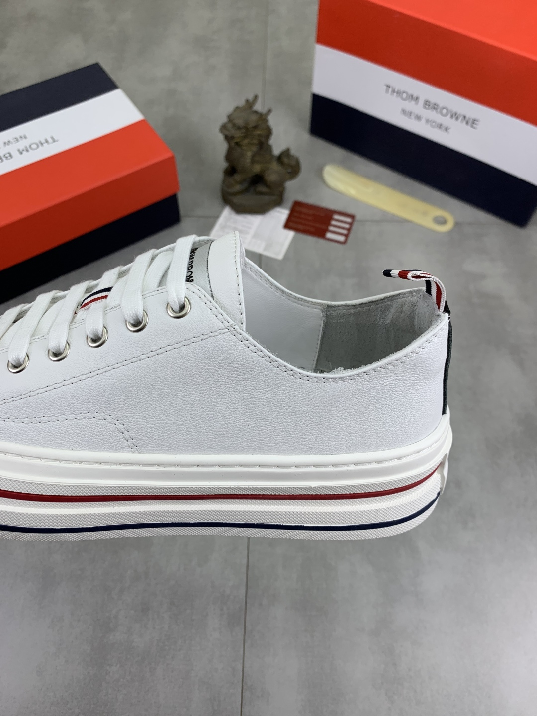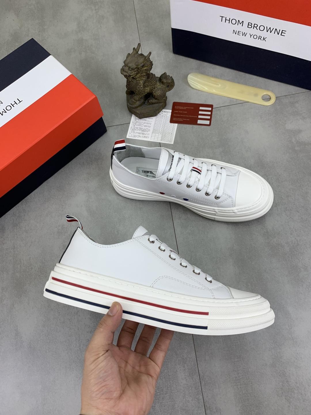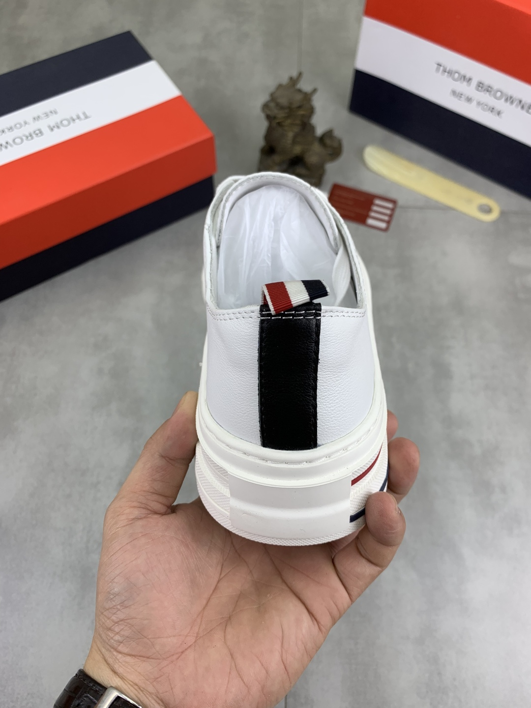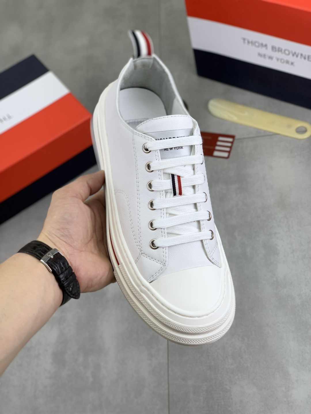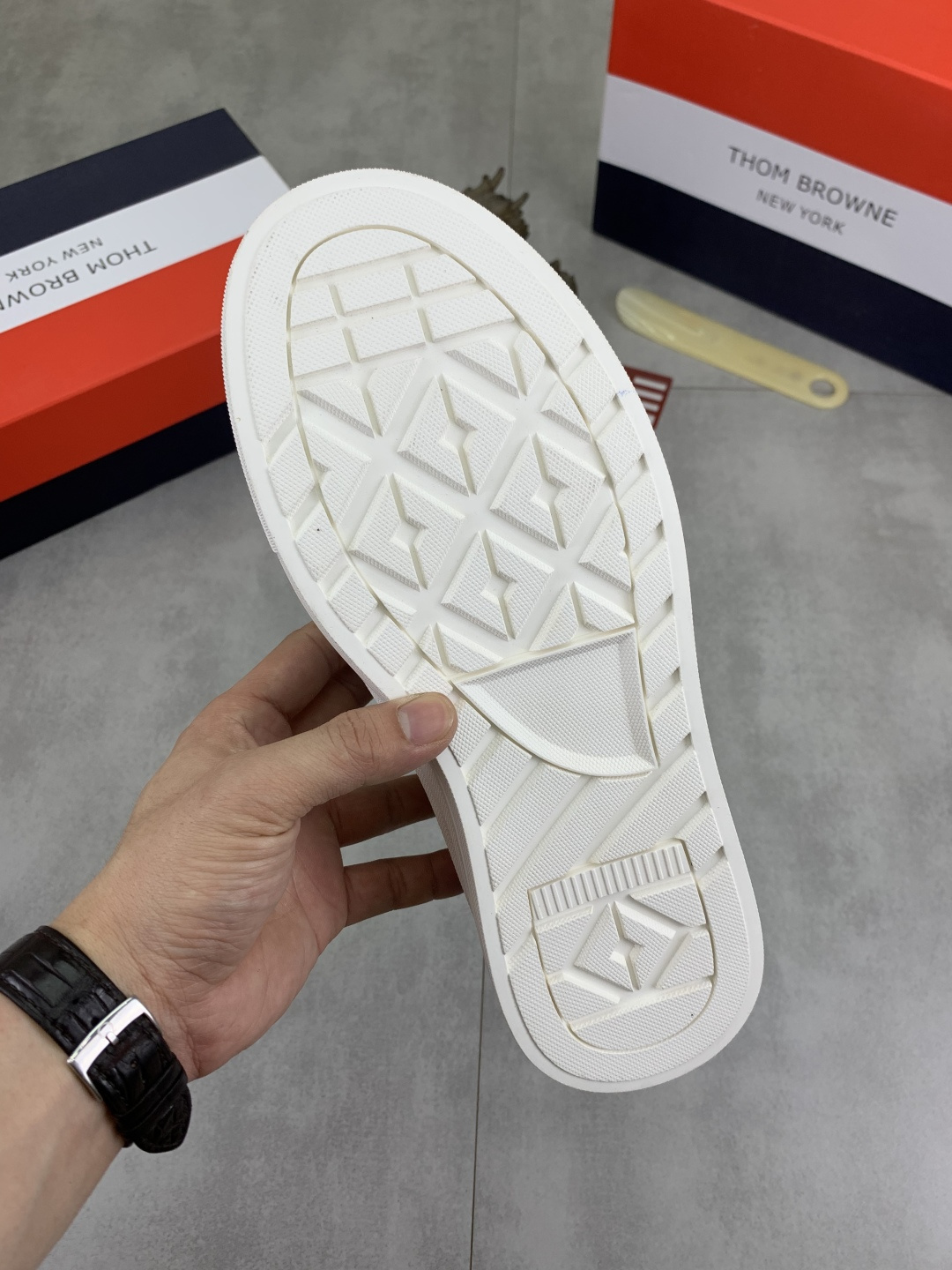 這款鞋子是AAAAA 1:1 質量(非常棒). 使用了和原版一模一樣的材料. 商標部分也保持了和湯姆布朗/Thom Browne一樣. 圖片拍攝是實物鞋子拍攝, 您所收到的實物保證和我們圖片一模一樣.