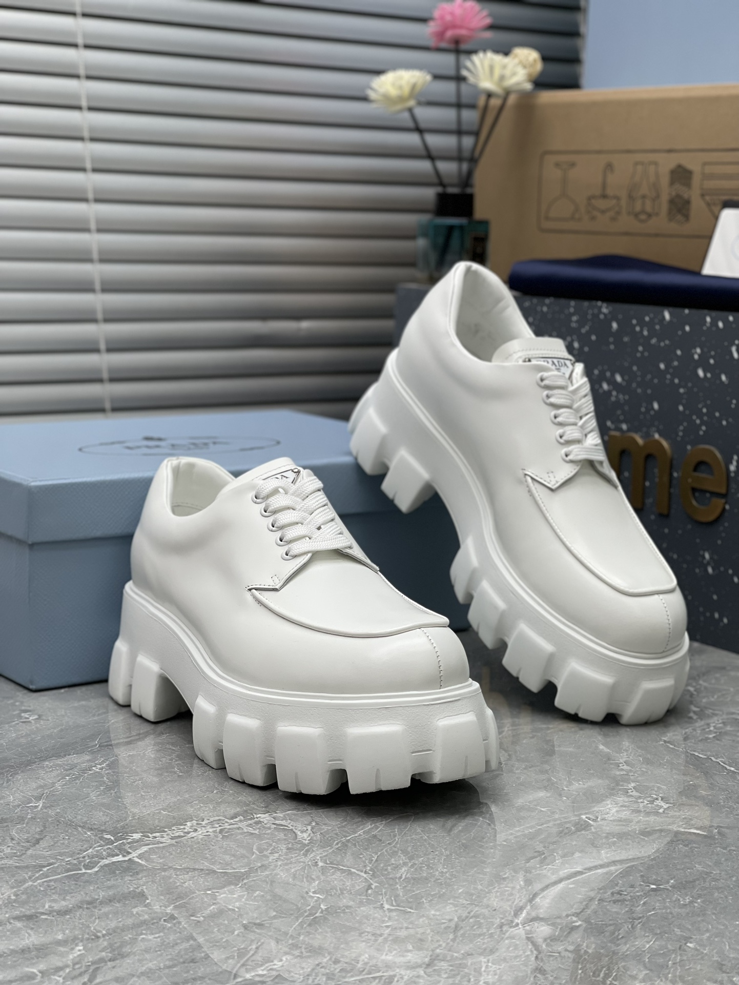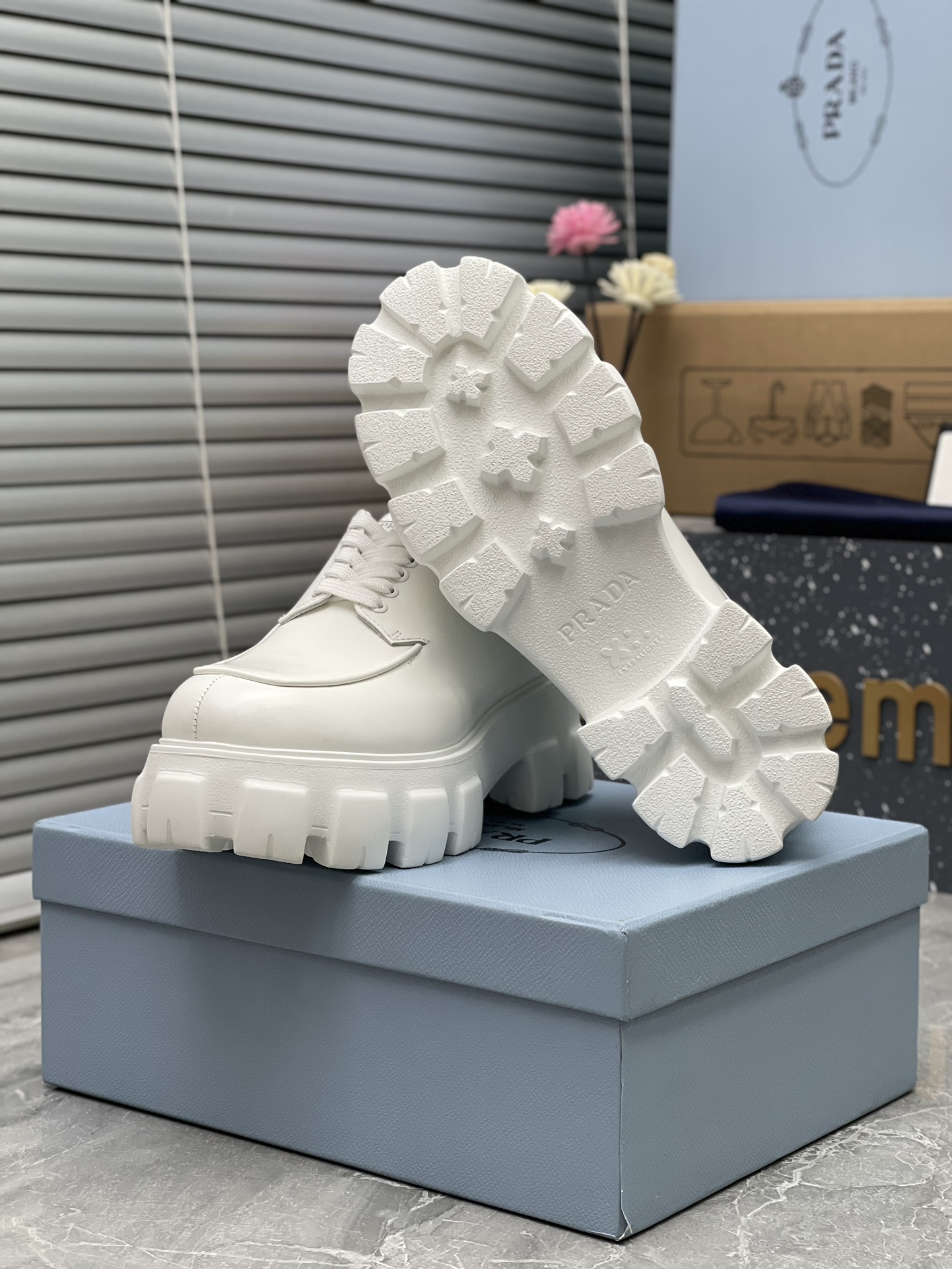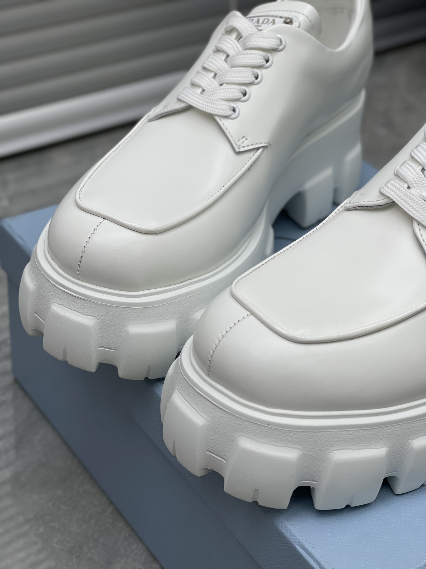 這款鞋子是AAAAA 1:1 質量(非常棒). 使用了和原版一模一樣的材料. 商標部分也保持了和普拉達/Prada一樣. 圖片拍攝是實物鞋子拍攝, 您所收到的實物保證和我們圖片一模一樣.