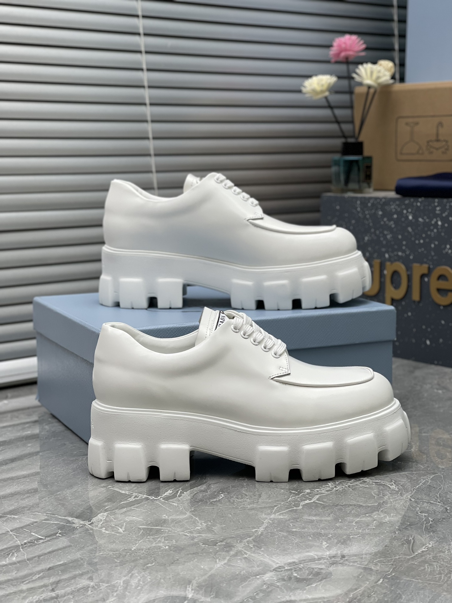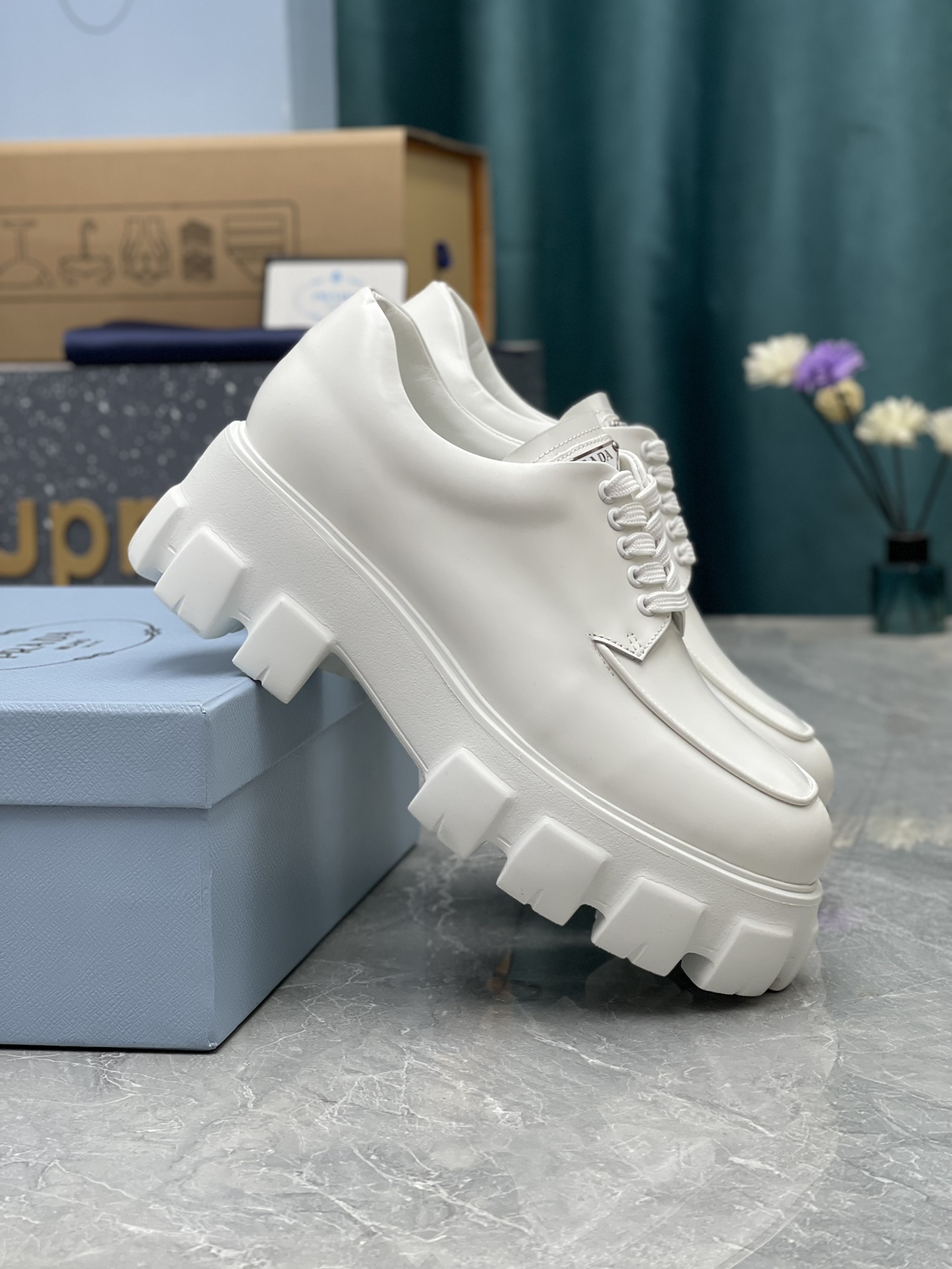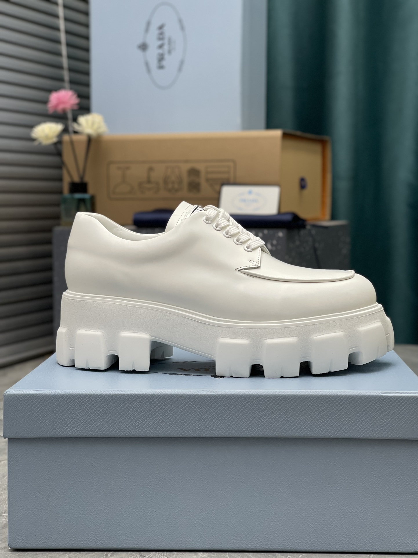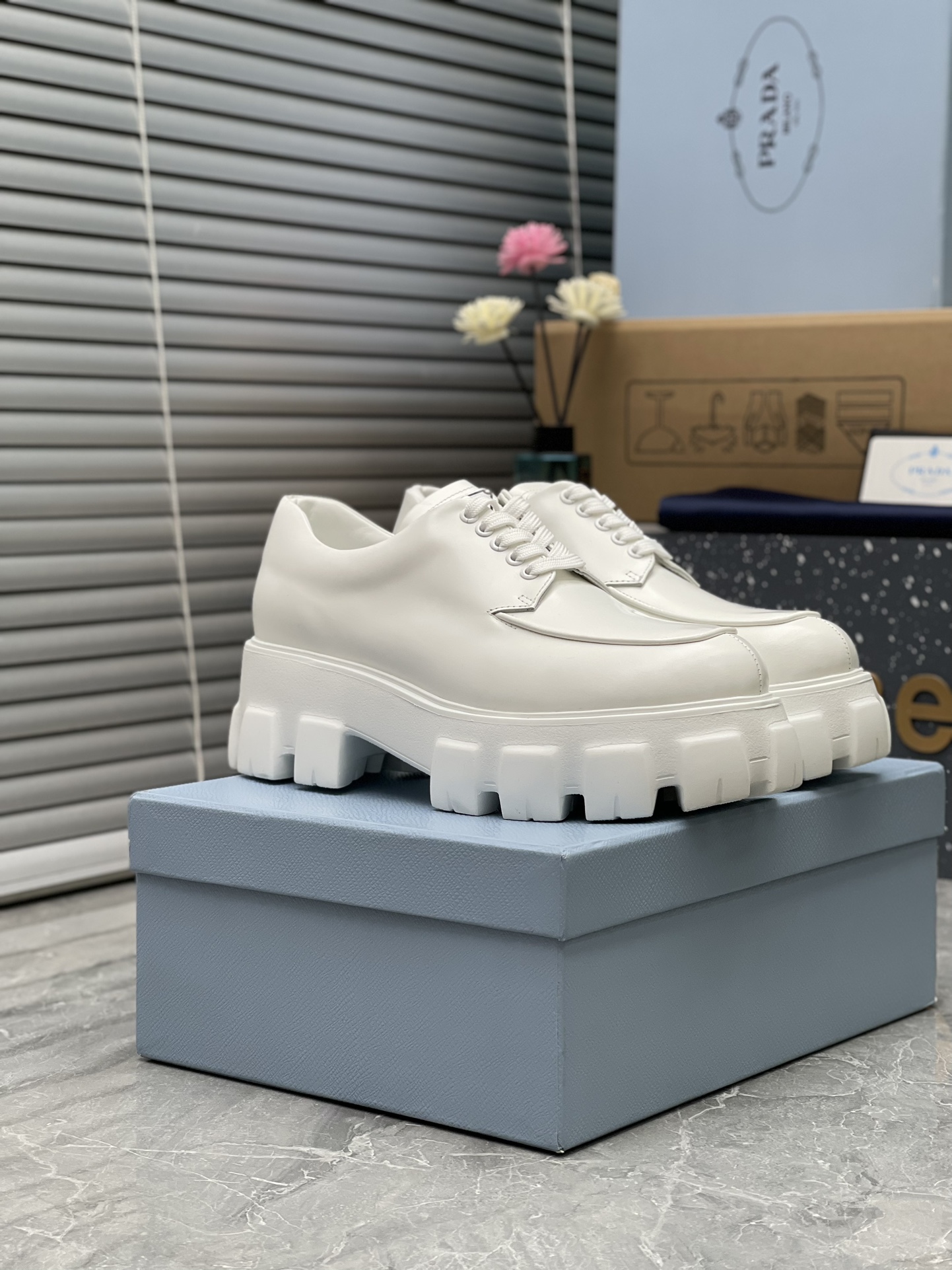 這款鞋子是AAAAA 1:1 質量(非常棒). 使用了和原版一模一樣的材料. 商標部分也保持了和普拉達/Prada一樣. 圖片拍攝是實物鞋子拍攝, 您所收到的實物保證和我們圖片一模一樣.