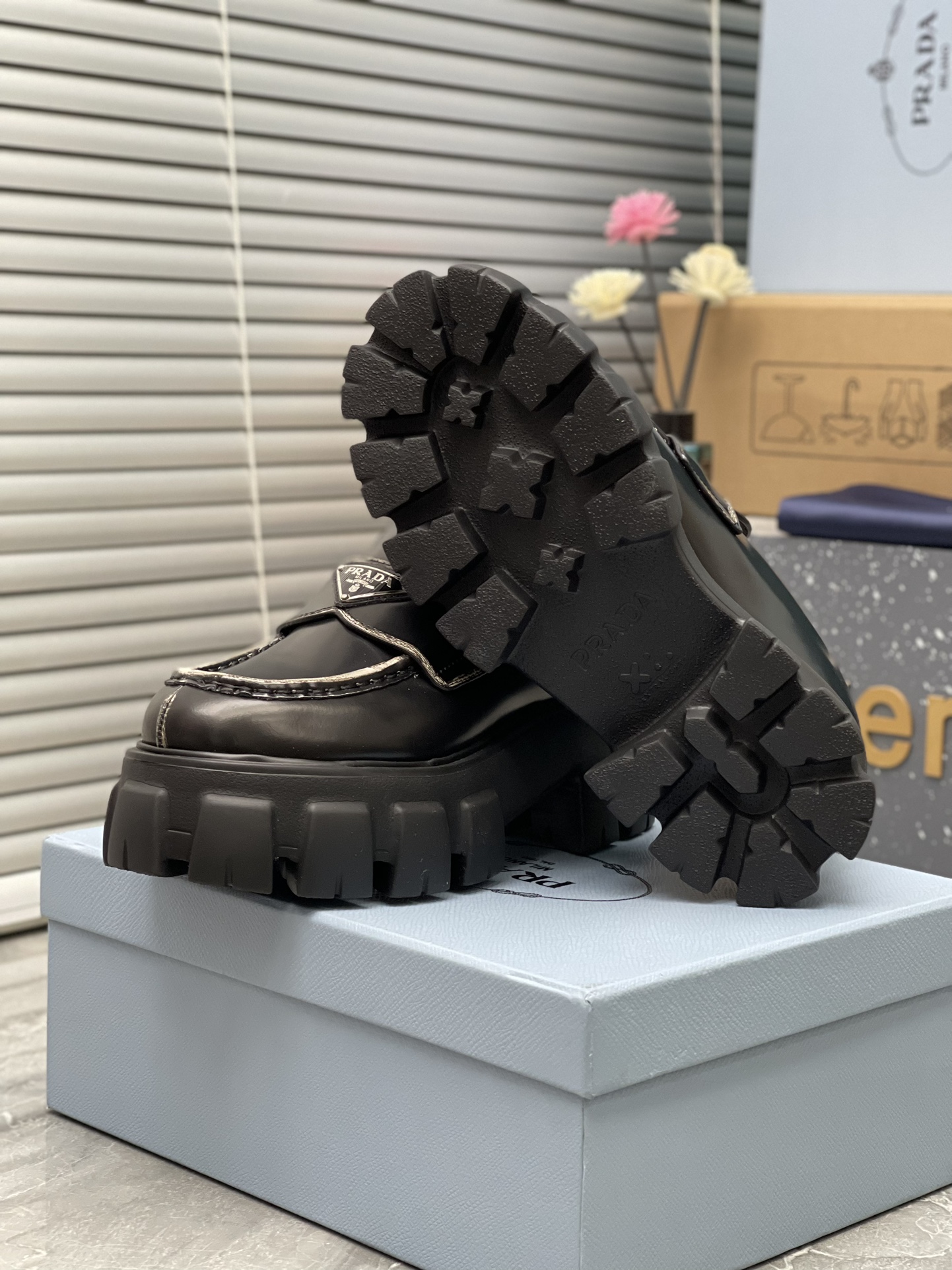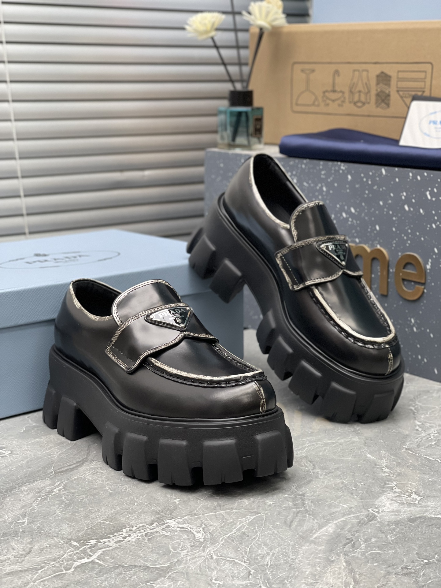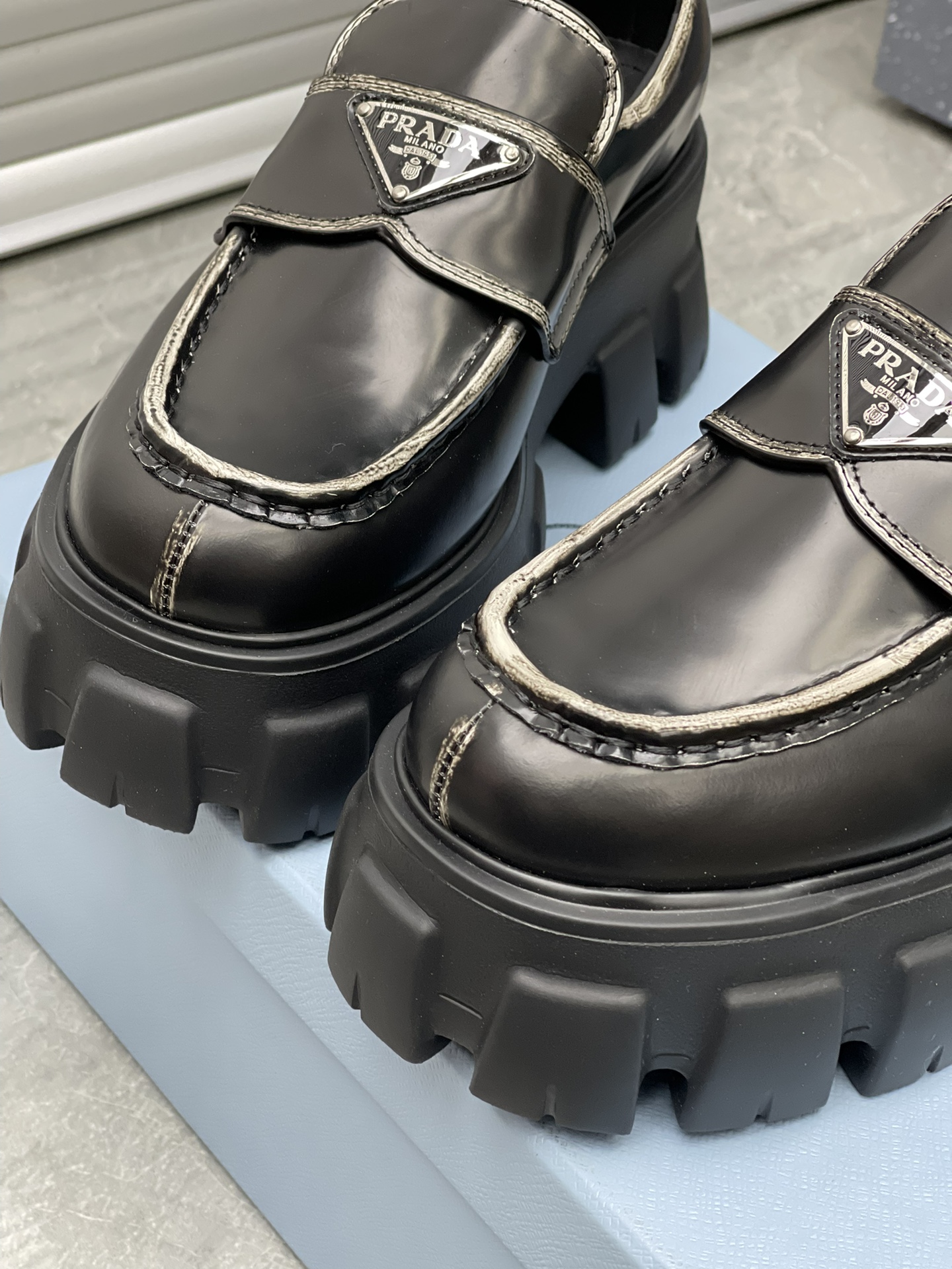 這款鞋子是AAAAA 1:1 質量(非常棒). 使用了和原版一模一樣的材料. 商標部分也保持了和普拉達/Prada一樣. 圖片拍攝是實物鞋子拍攝, 您所收到的實物保證和我們圖片一模一樣.